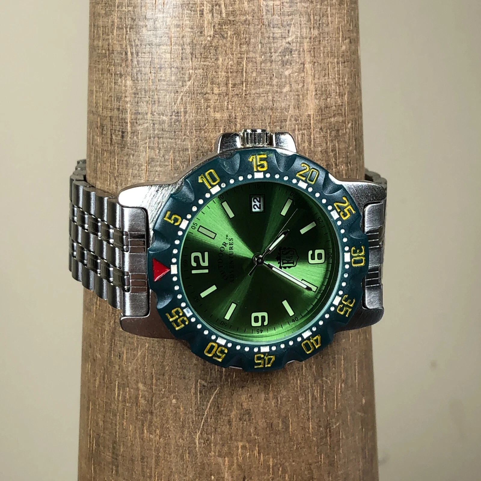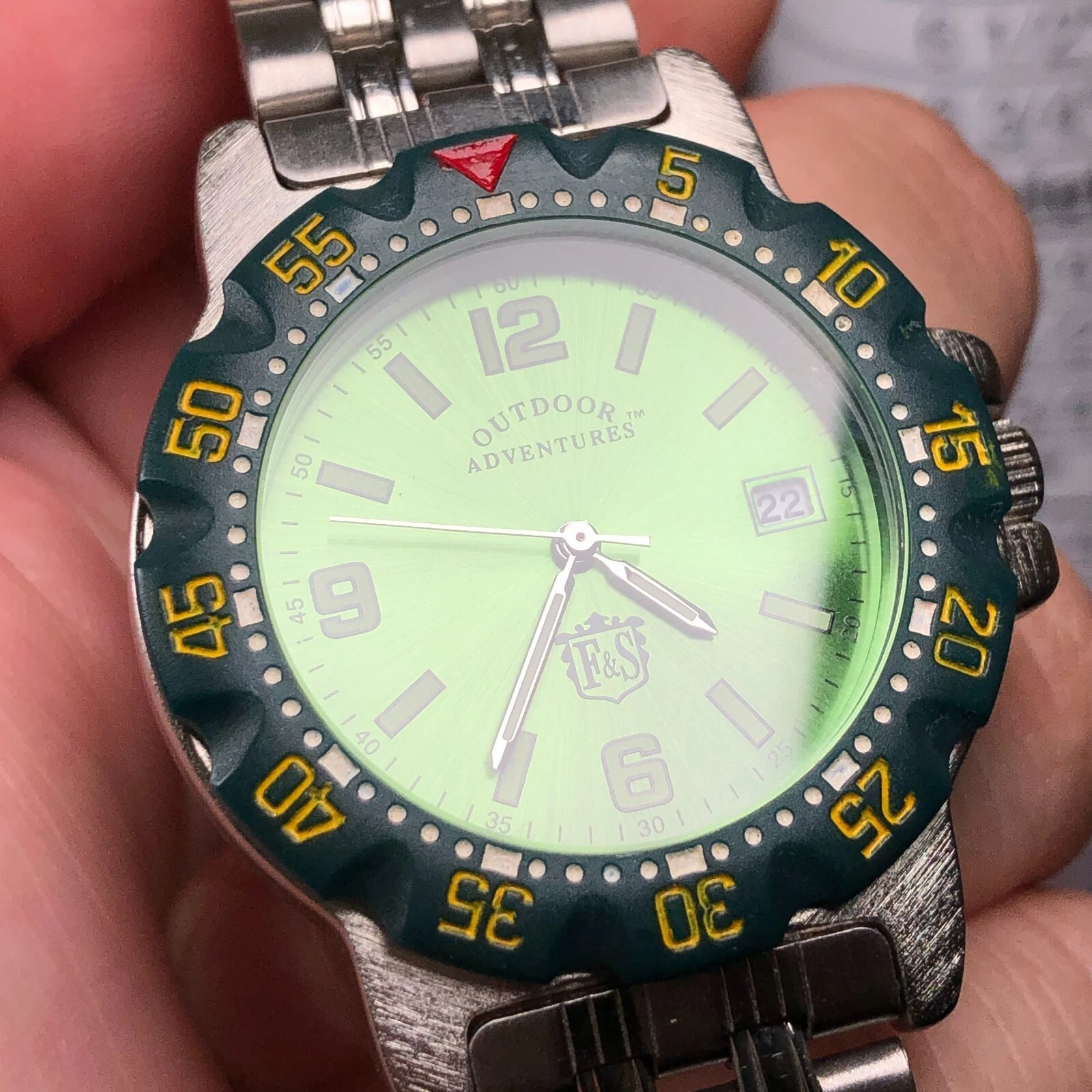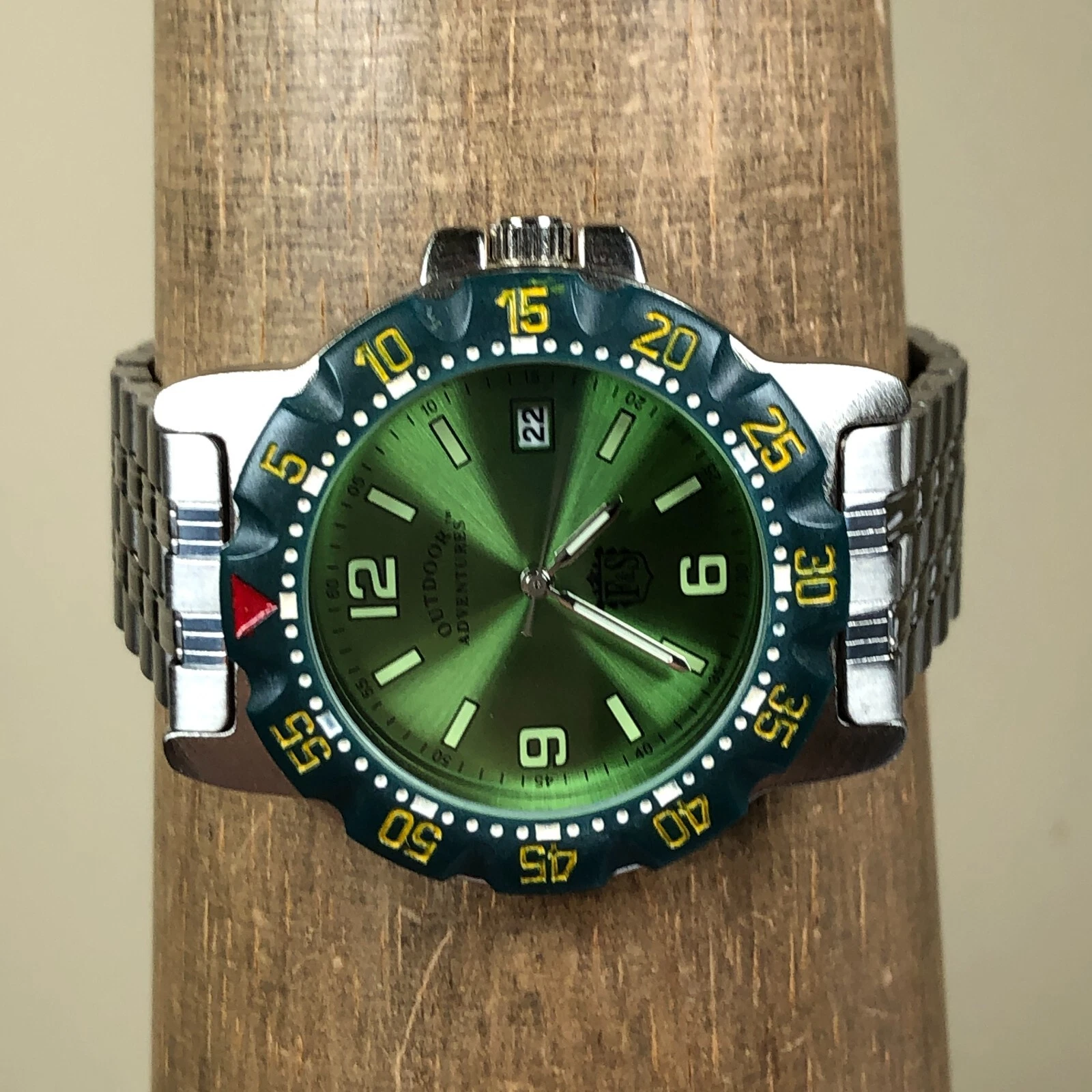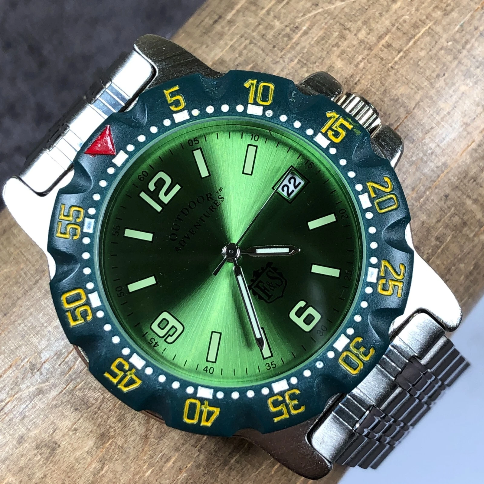 Field & Steam Outdoor Adventures Men Green Dial Date 38mm Quartz Watch 7 1/2"