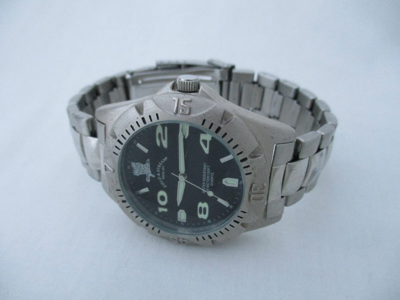 Field & Stream Men's Silver Toned Link Band Analog Watch Quartz Water Resistant