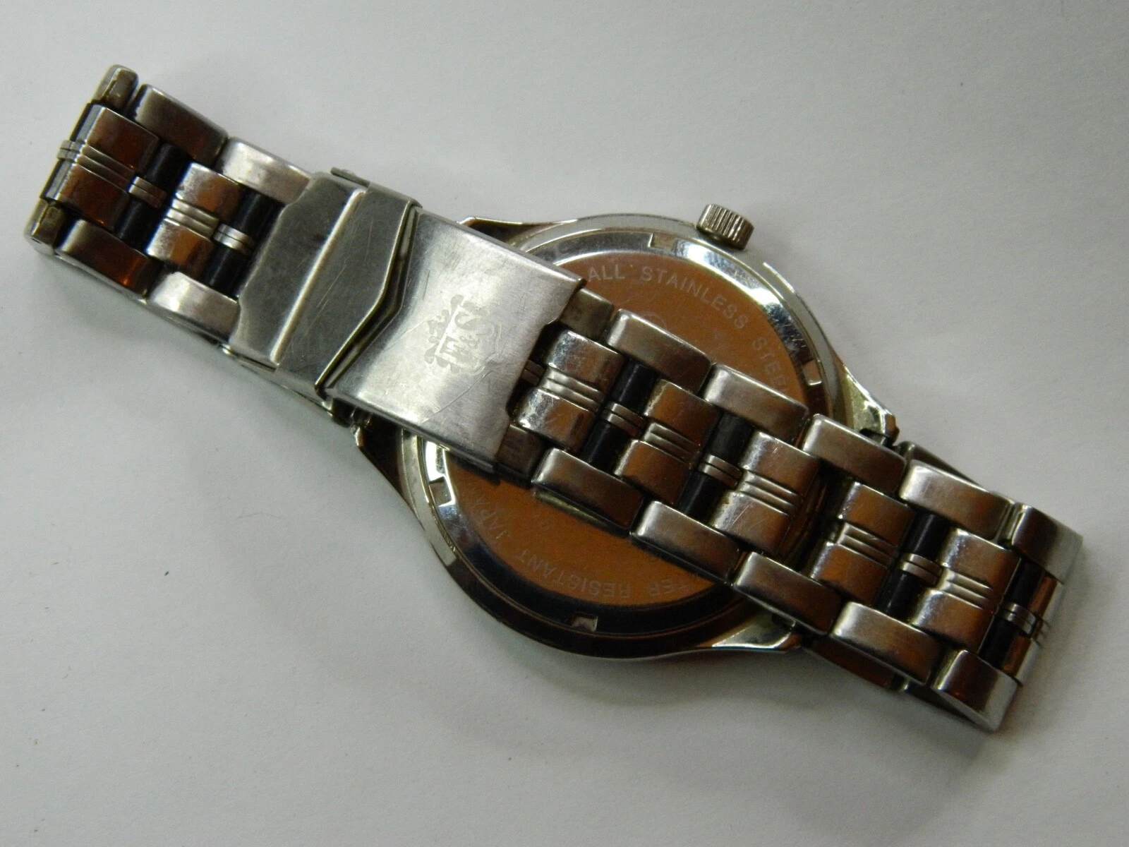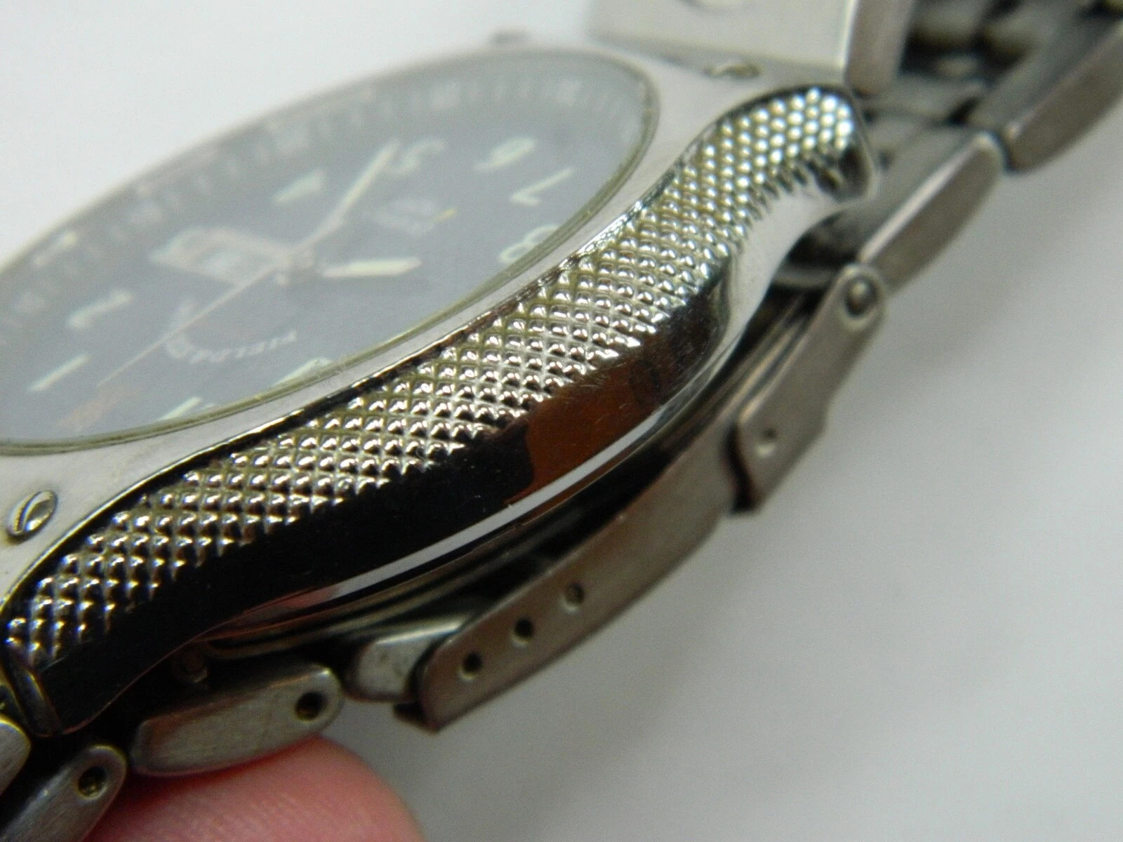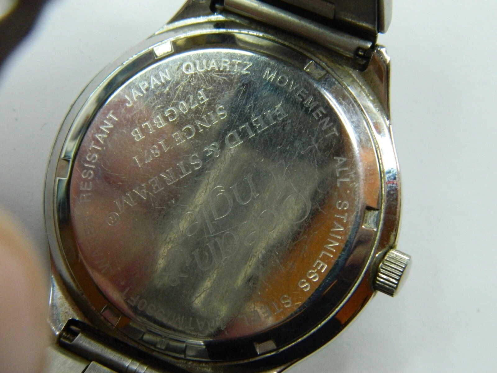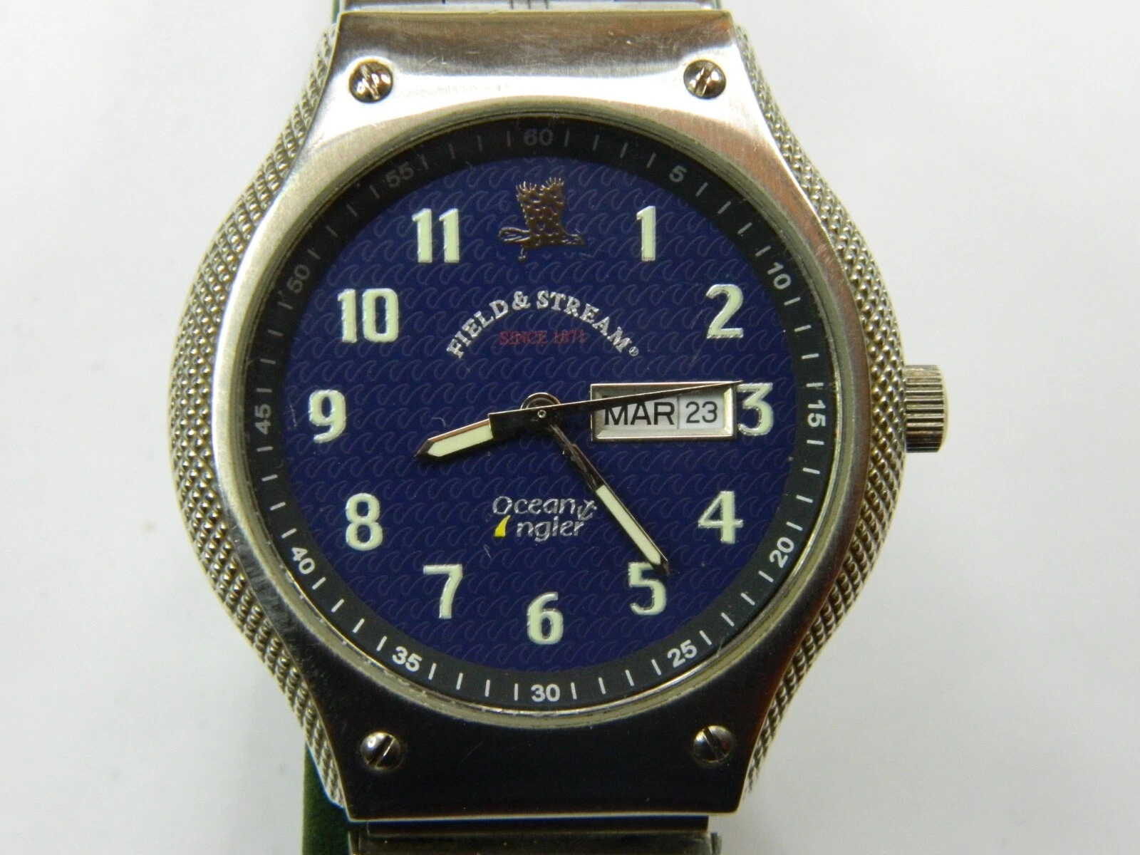 NICE FIELD & STREAM OCEAN ANGLER STAINLESS STEEL MENS WATCH - NEW BATTERY - RUNS