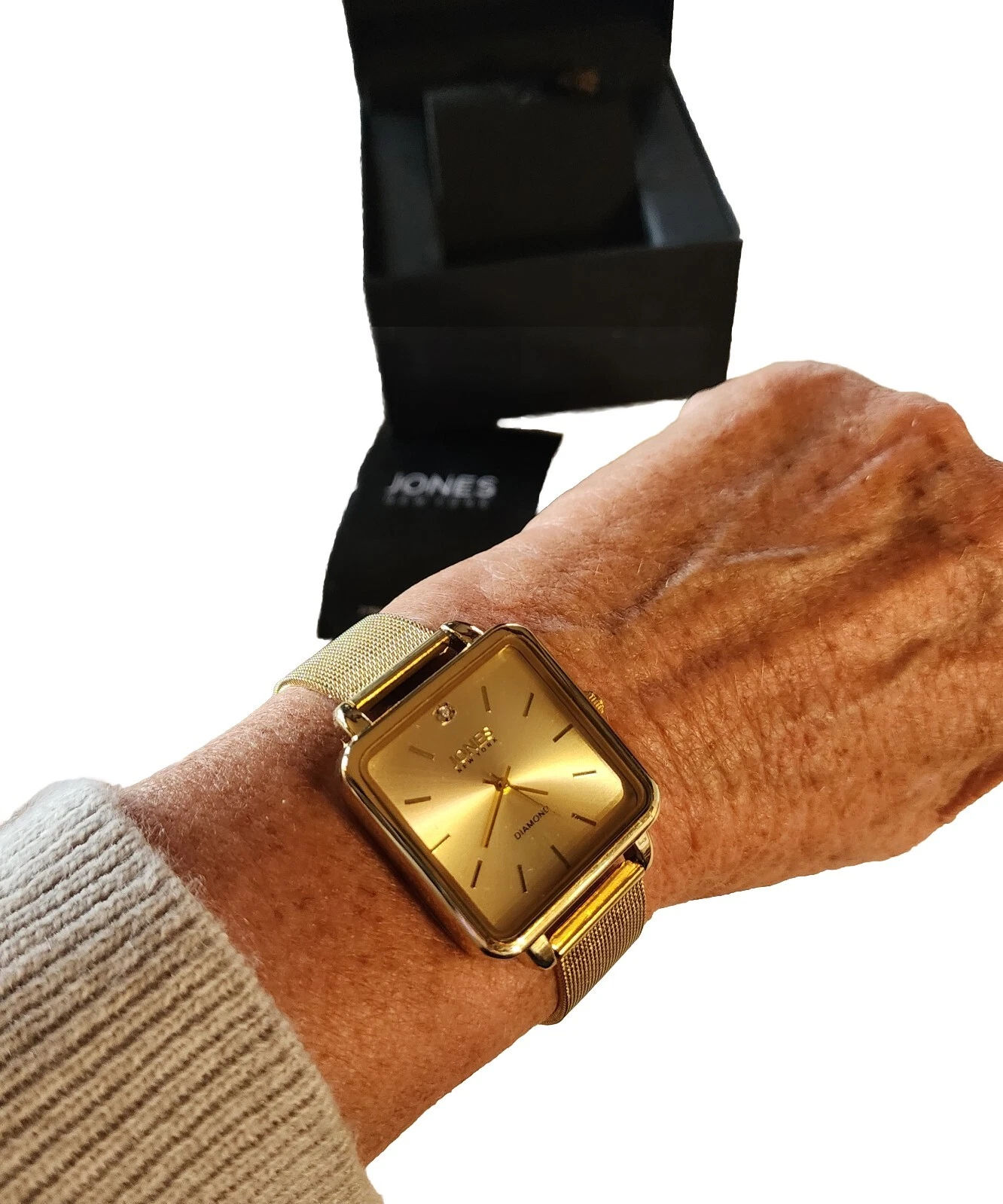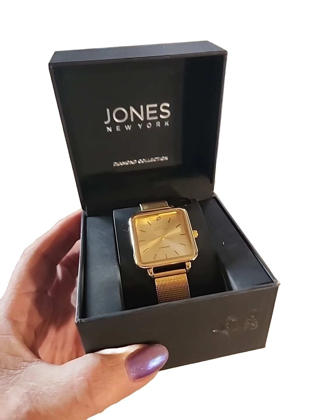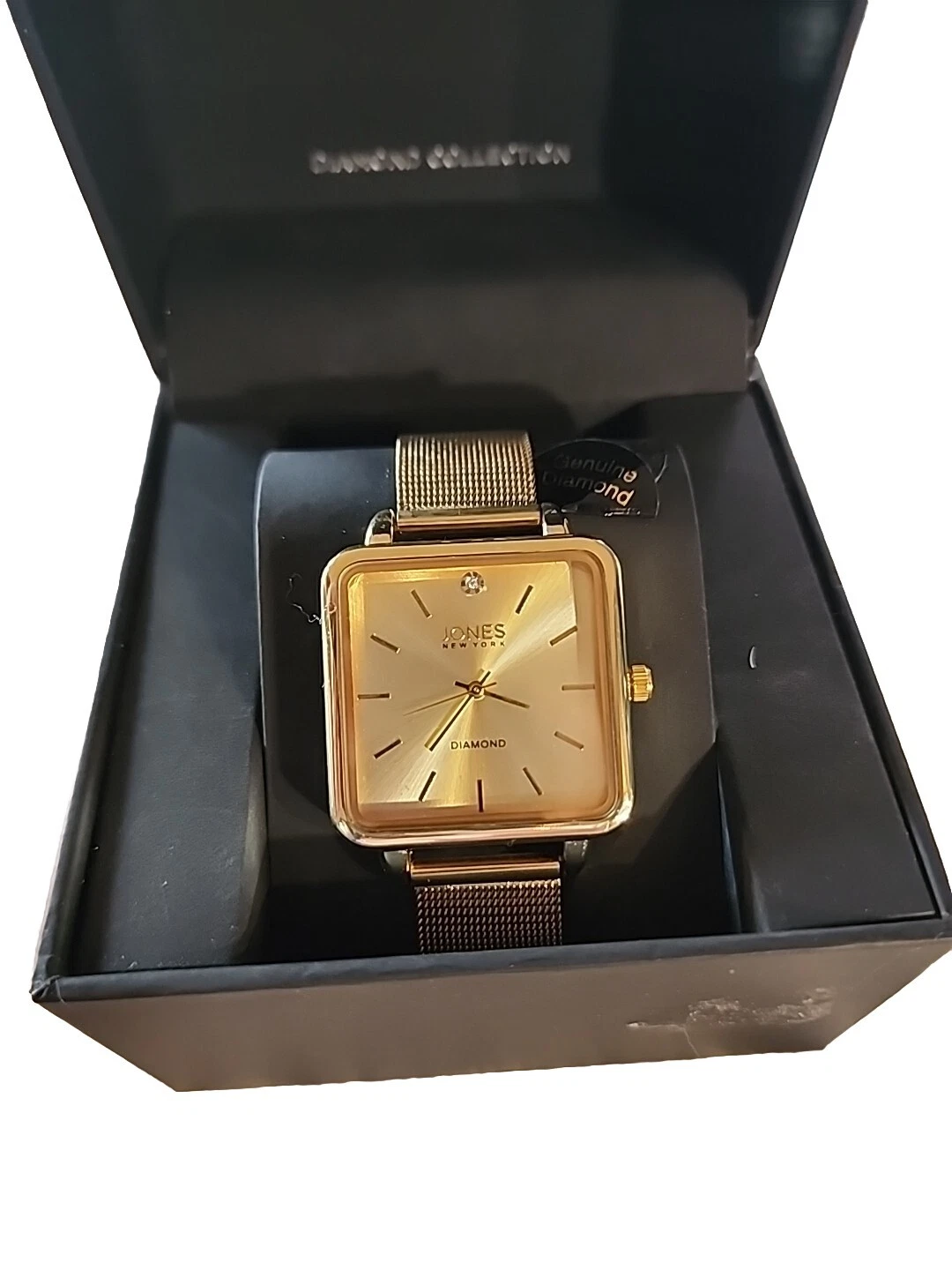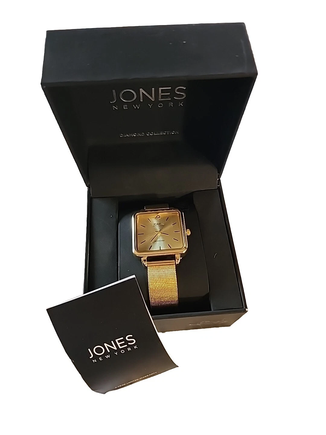 Jones New York Ladies Diamond Collection Mesh Gold Quartz Square Face