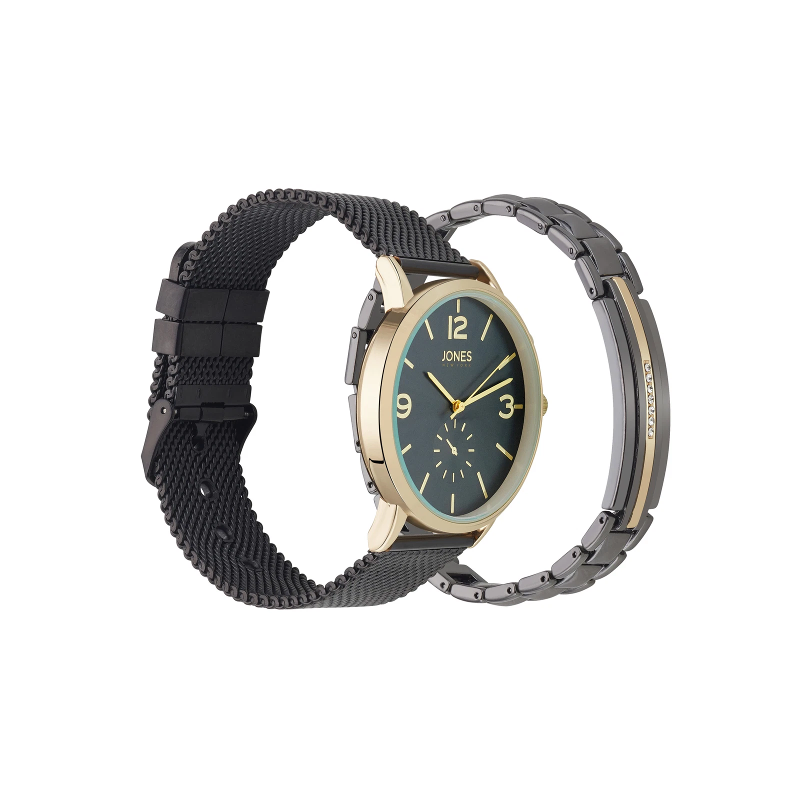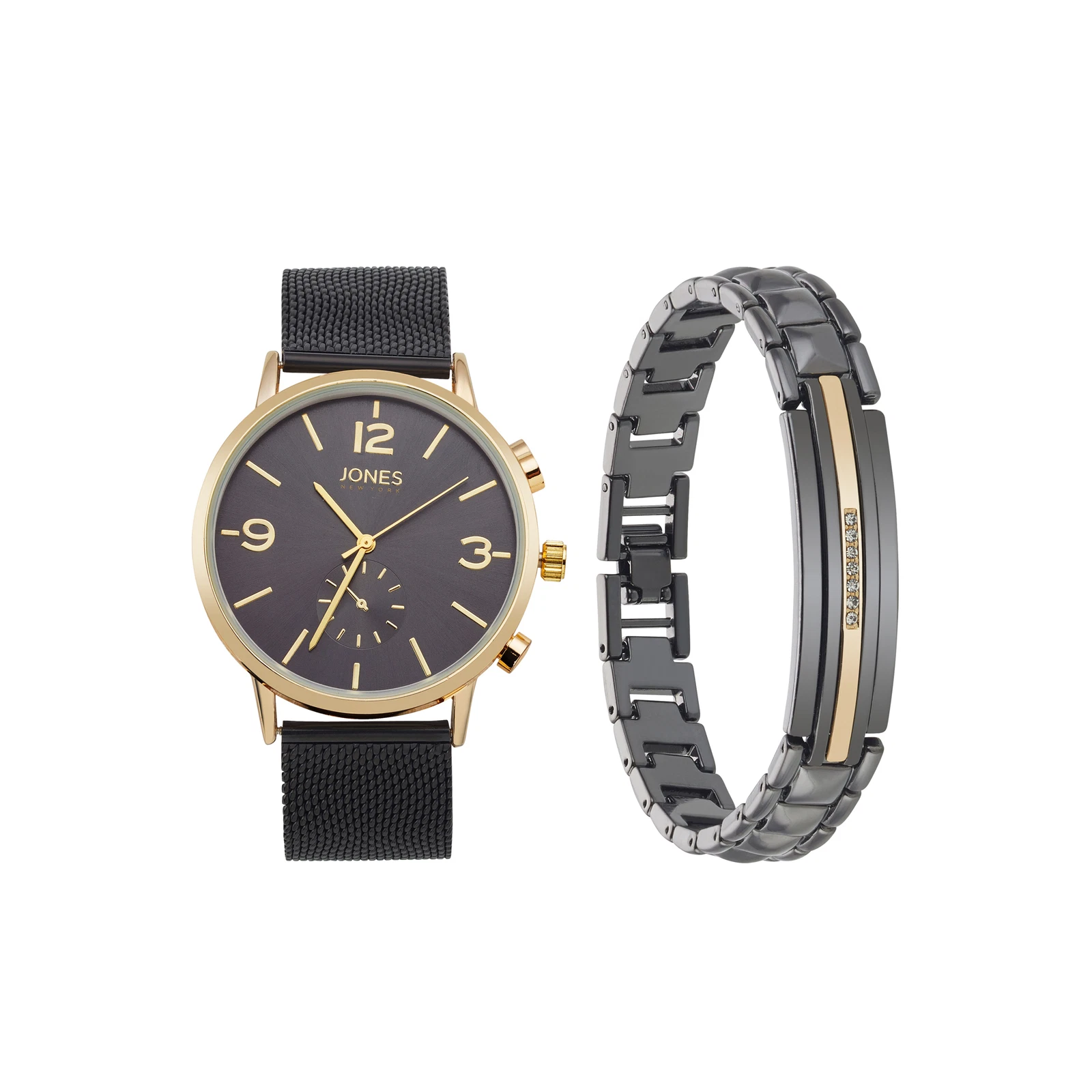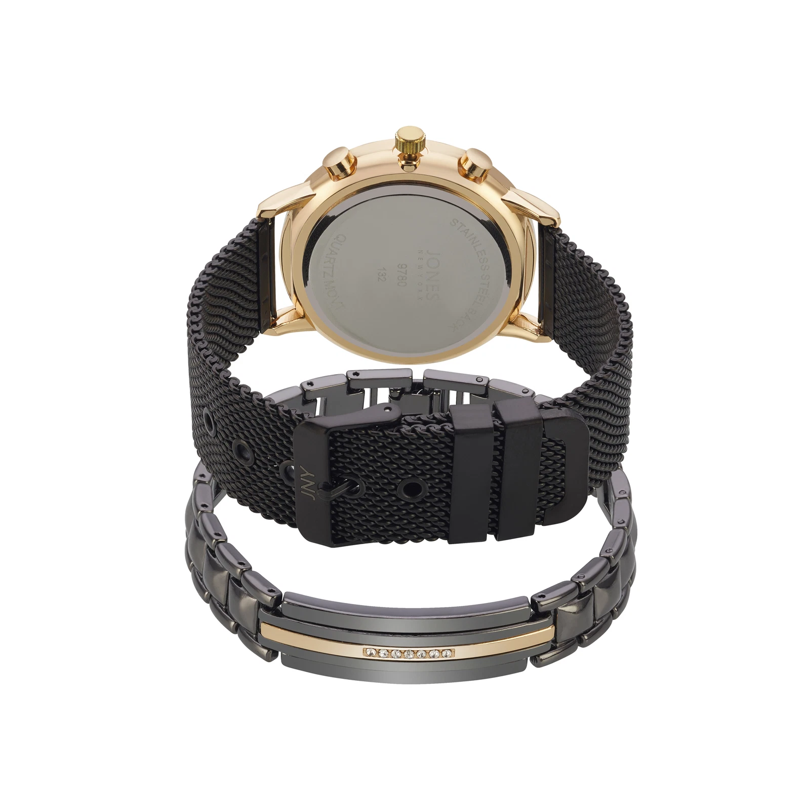 Jones New York Men's Analog Black Watch and Bracelet Set 42mm