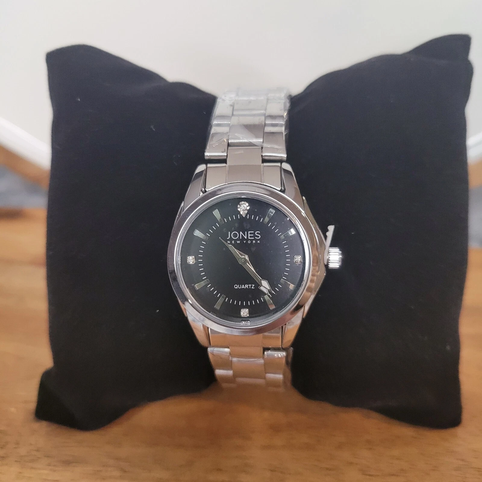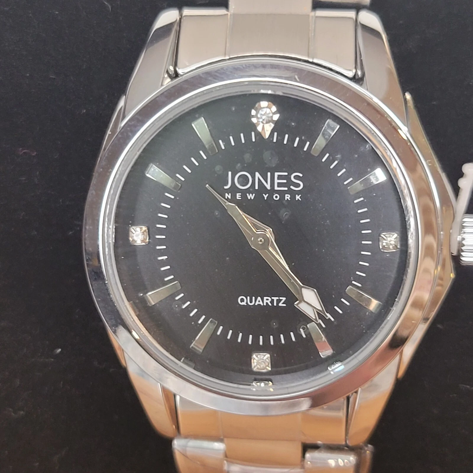 Jones New York Black Dial Silver Tone Stainless Steel Band Watch NEW 7.5 Inch