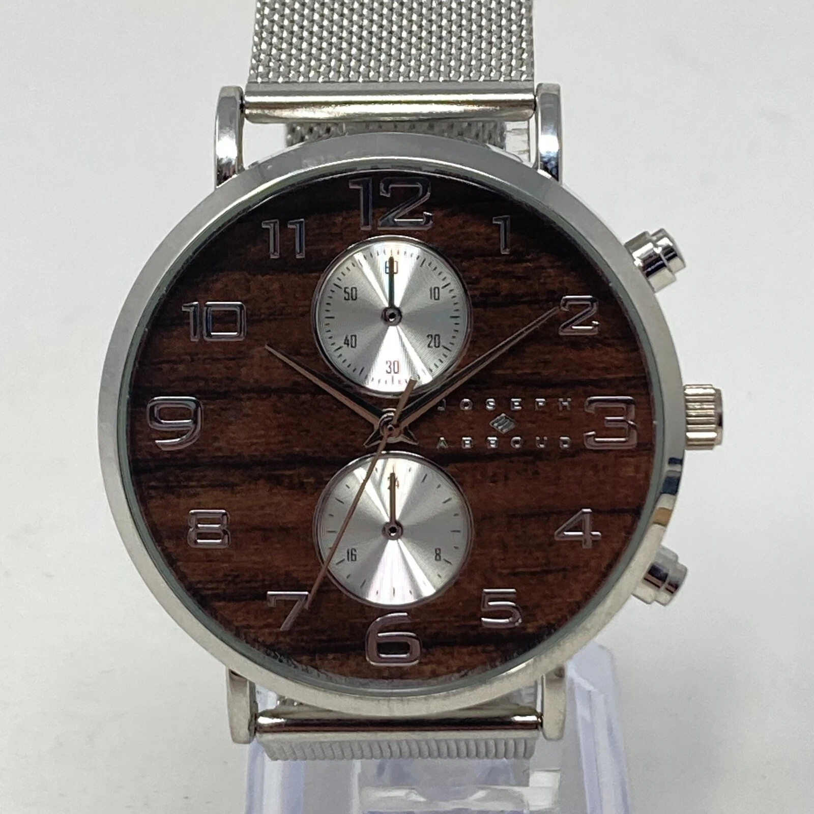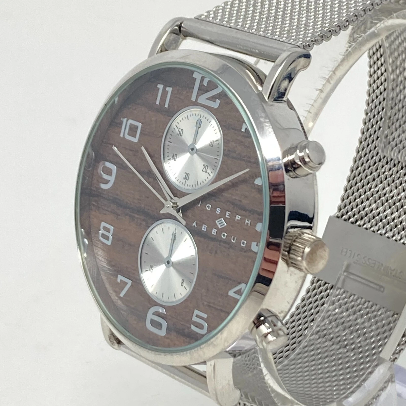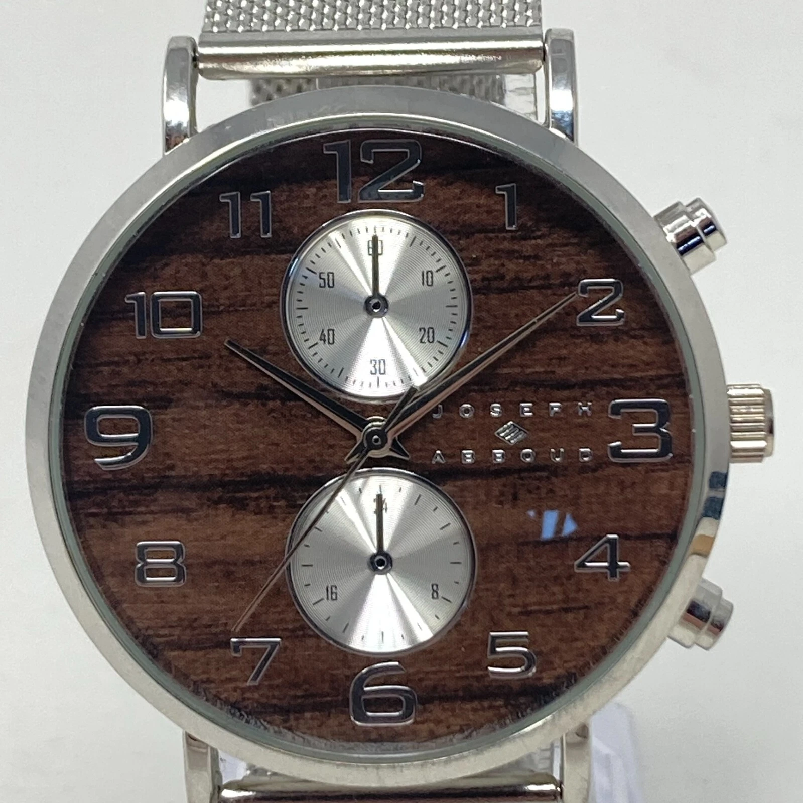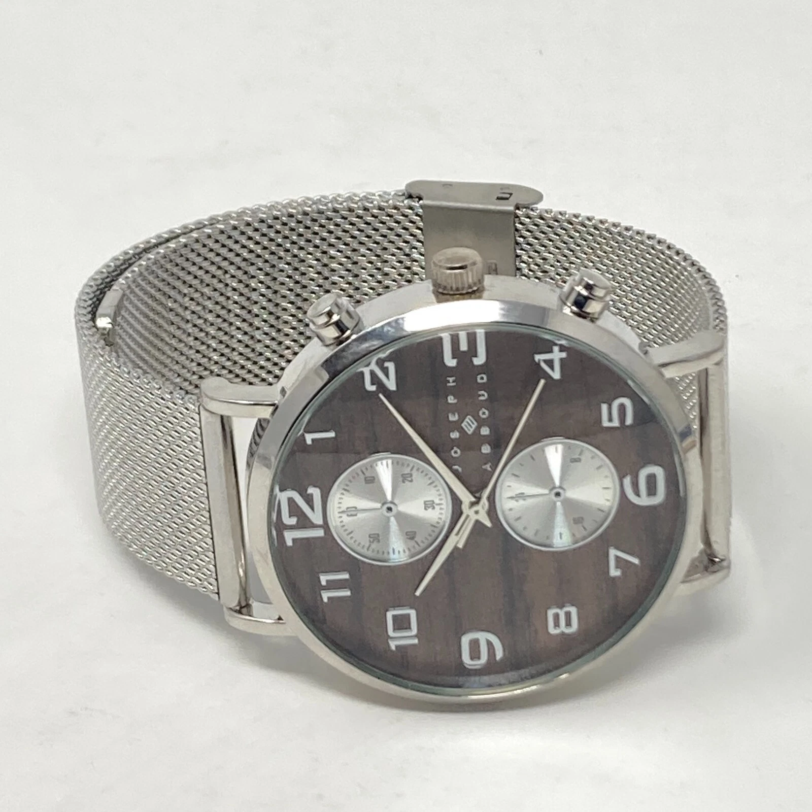 Joseph Abboud Watch Men 45mm Silver Tone Wood Look Dial Mesh Band New Battery