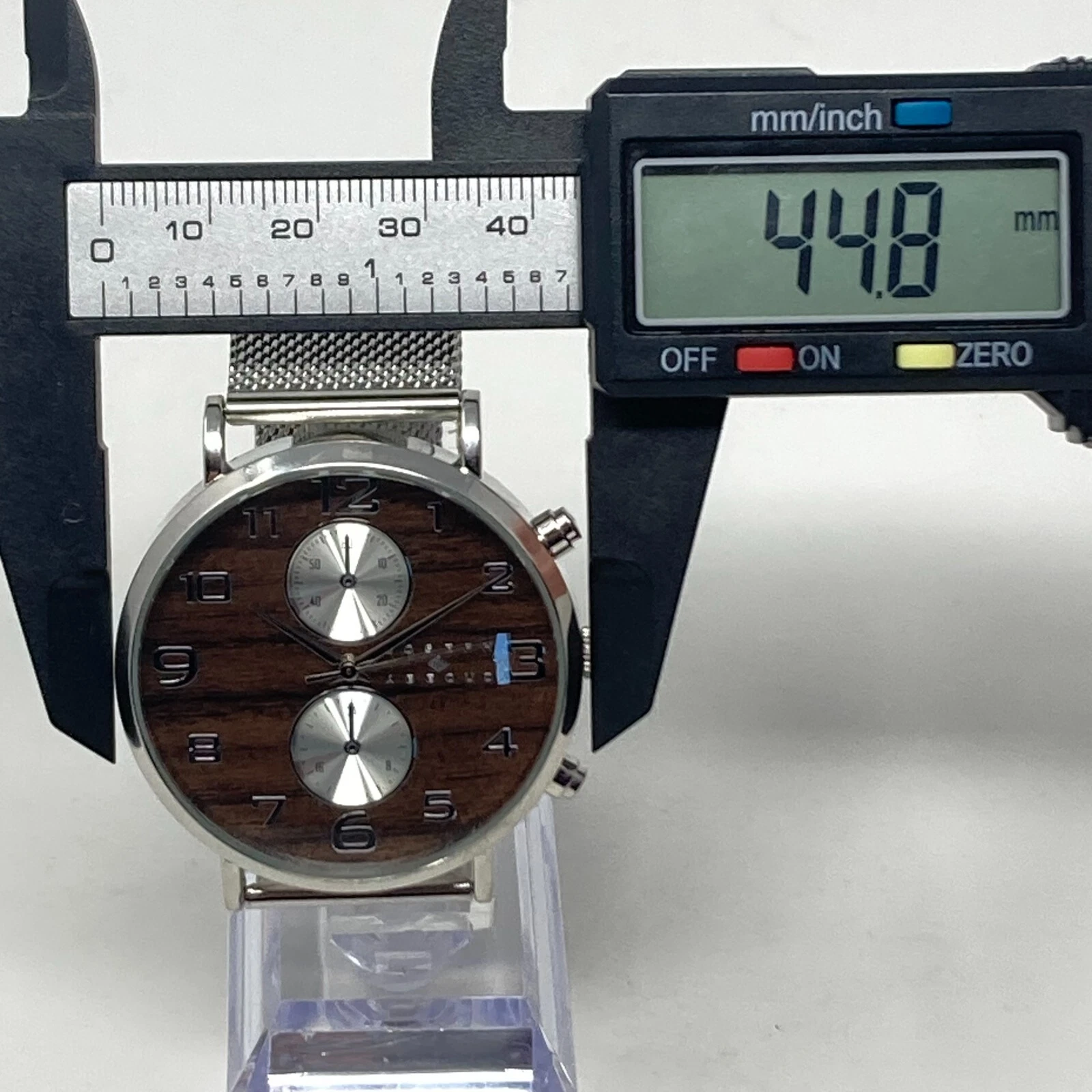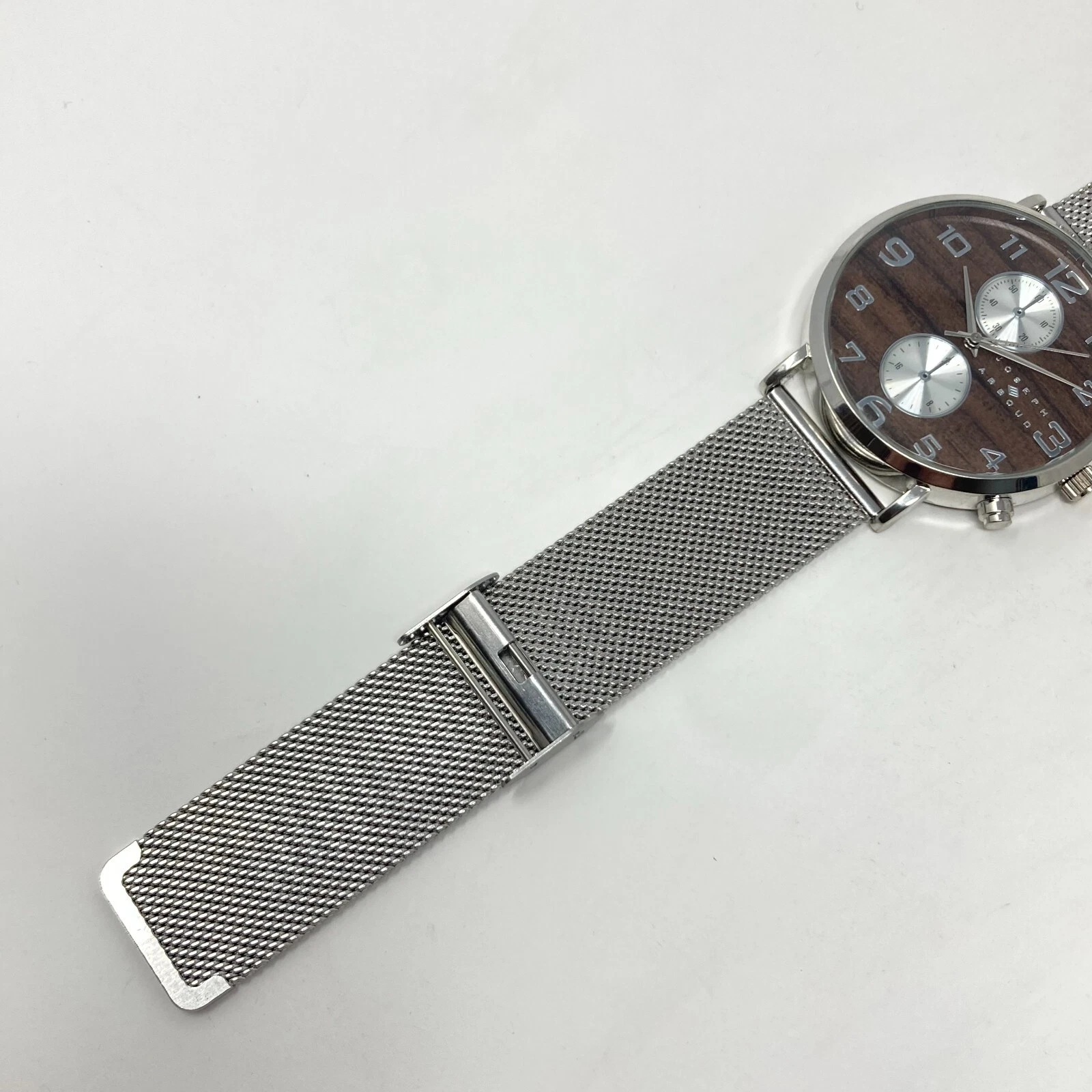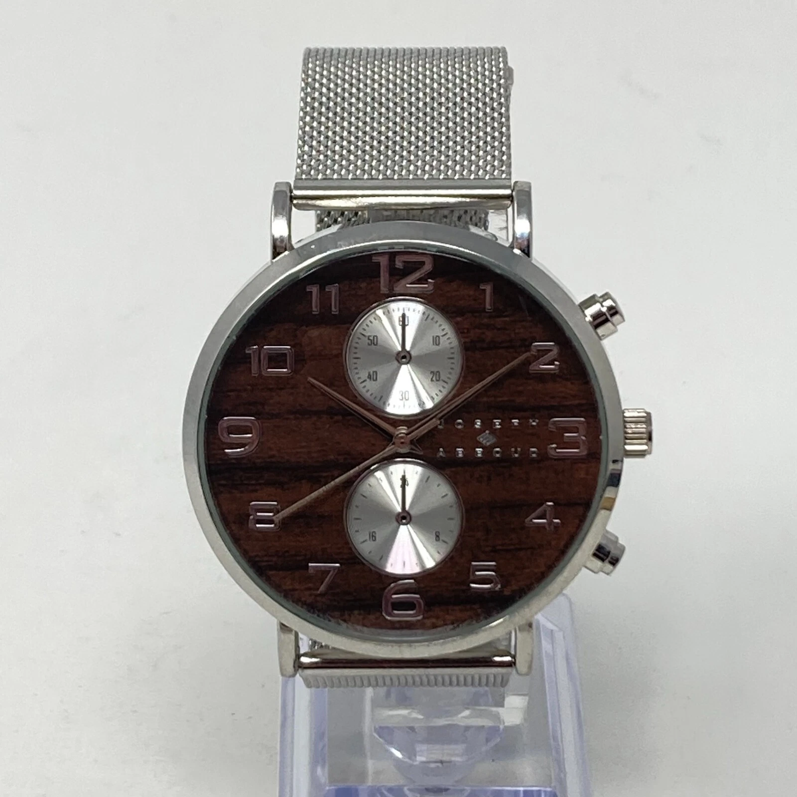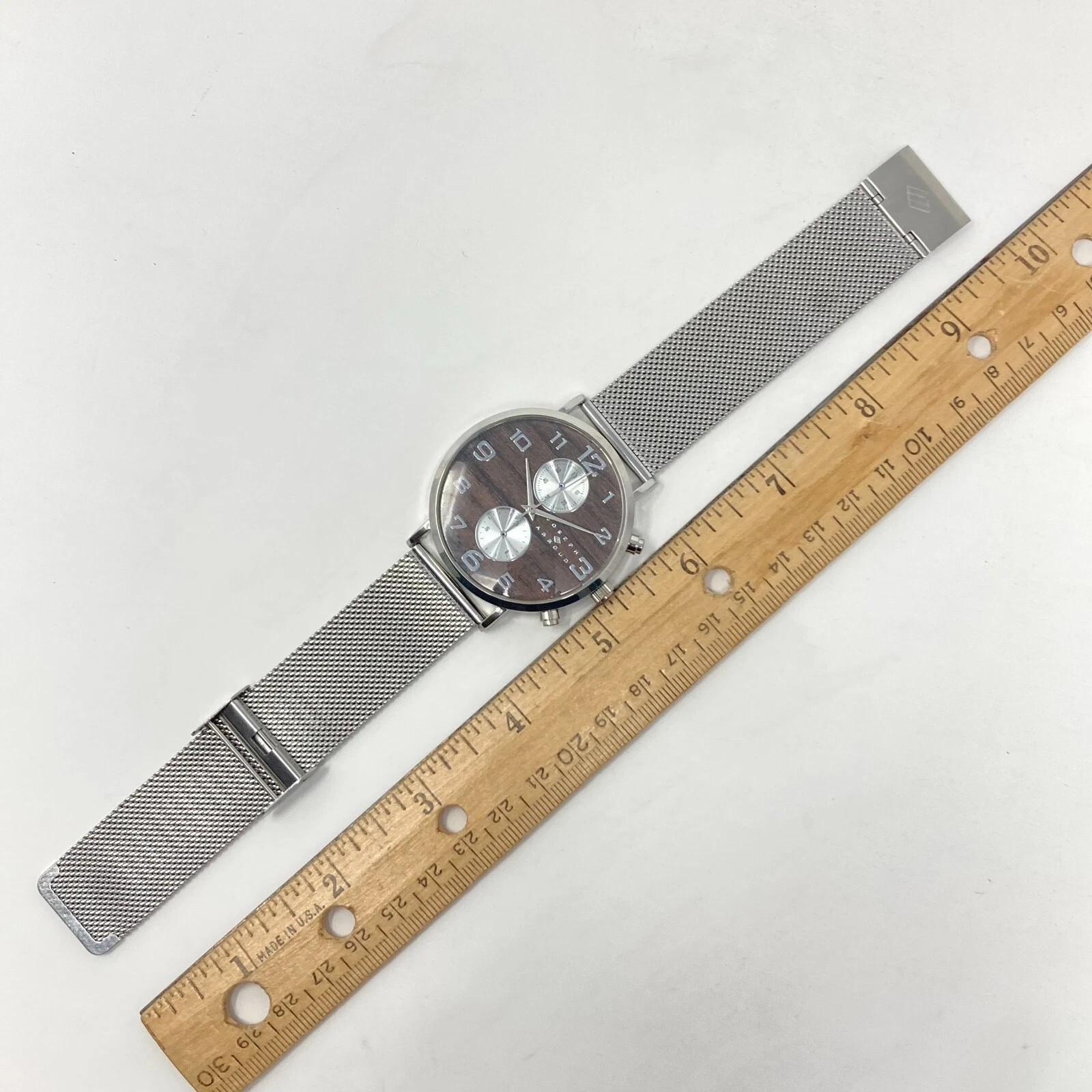 Joseph Abboud Watch Men 45mm Silver Tone Wood Look Dial Mesh Band New Battery