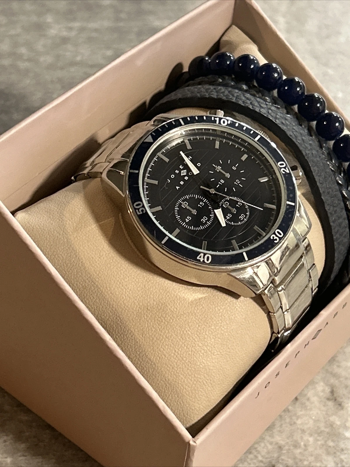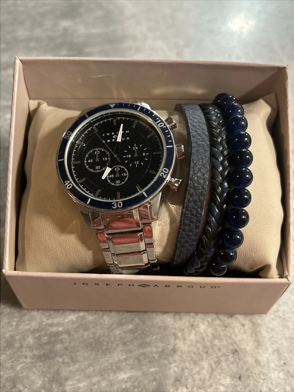 NIB - Joseph Abboud Mens Wristwatch (Navy) And Matching Bracelet Set