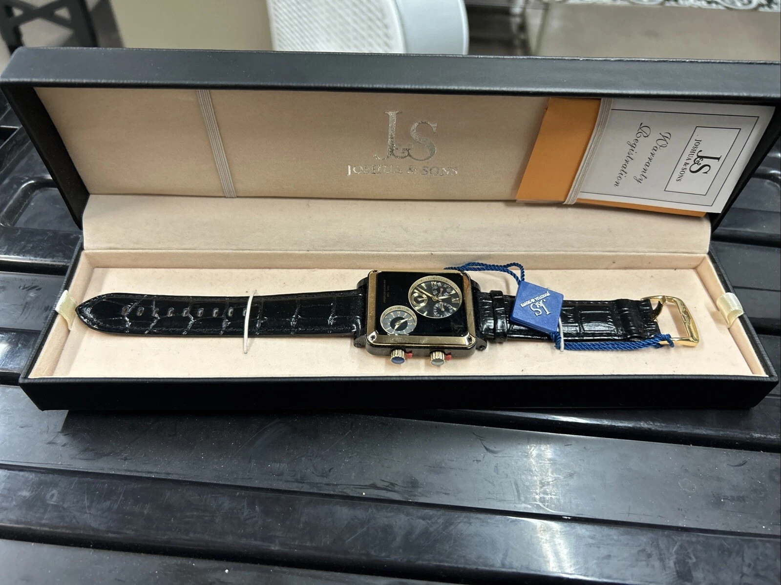 Joshua And Sons Navigator Square Case Dual Time Leather JS-30
