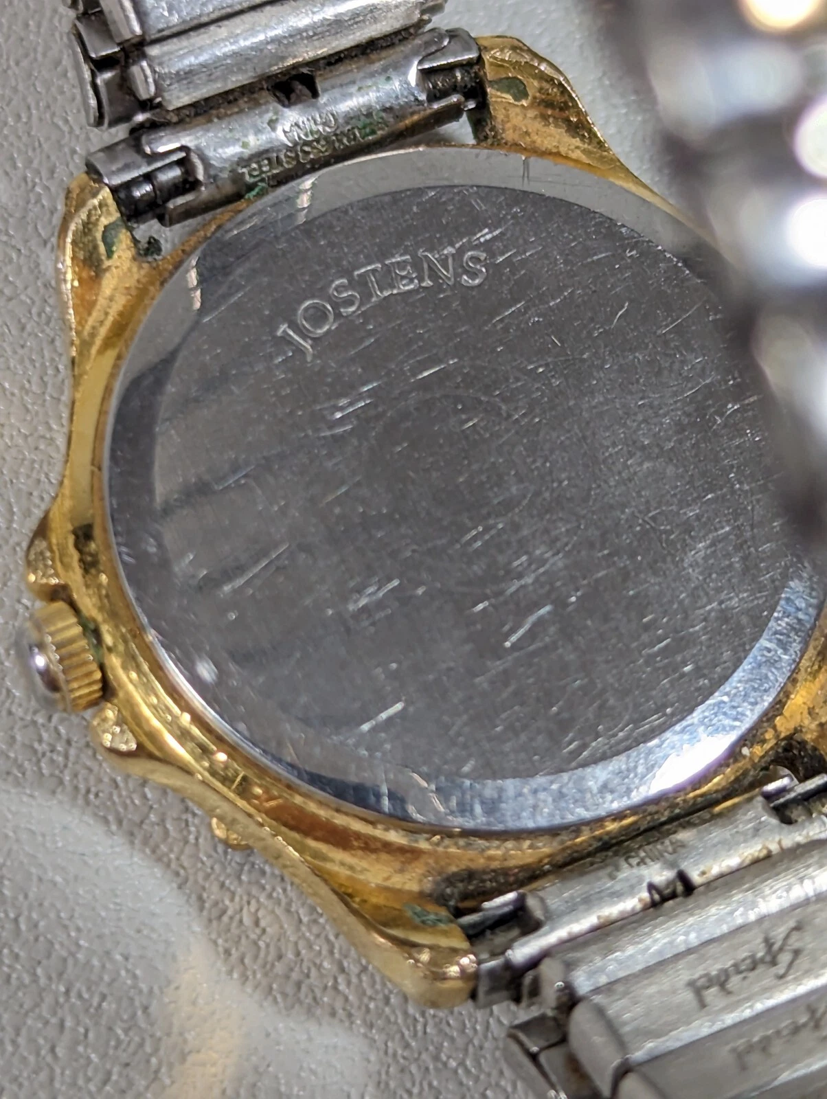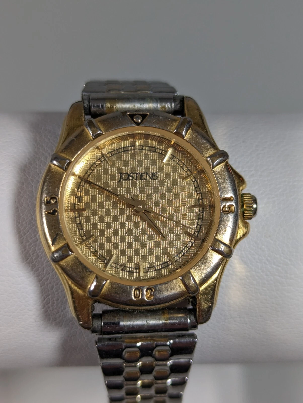 Jostens Gold Tone Dial Round Case Silver Tone Stainless Steel Stretch Band Watch