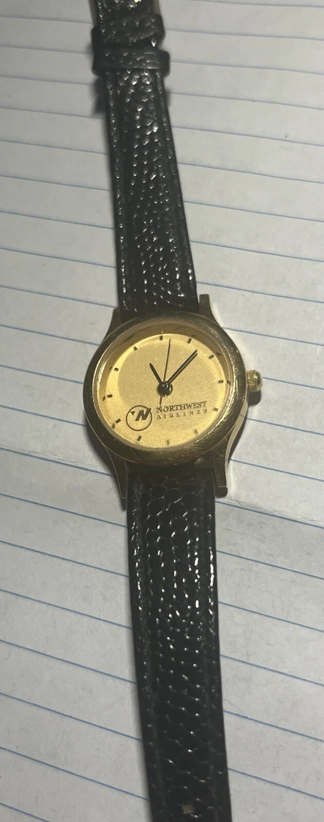 Rare Mens Jostens Swiss Quartz Gold Tone Watch Northwest Airlines Logo 34MM