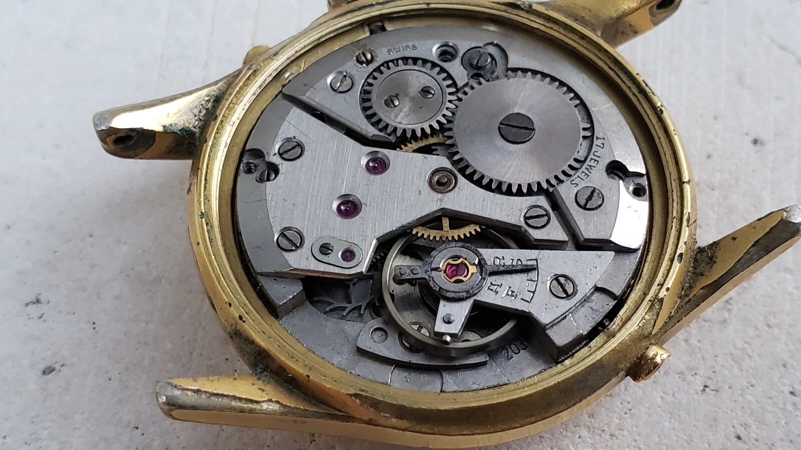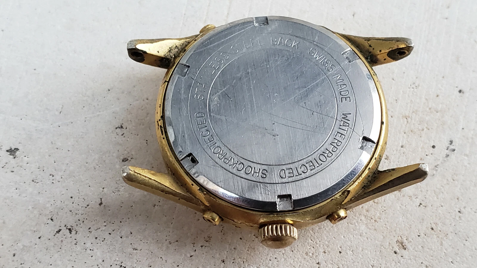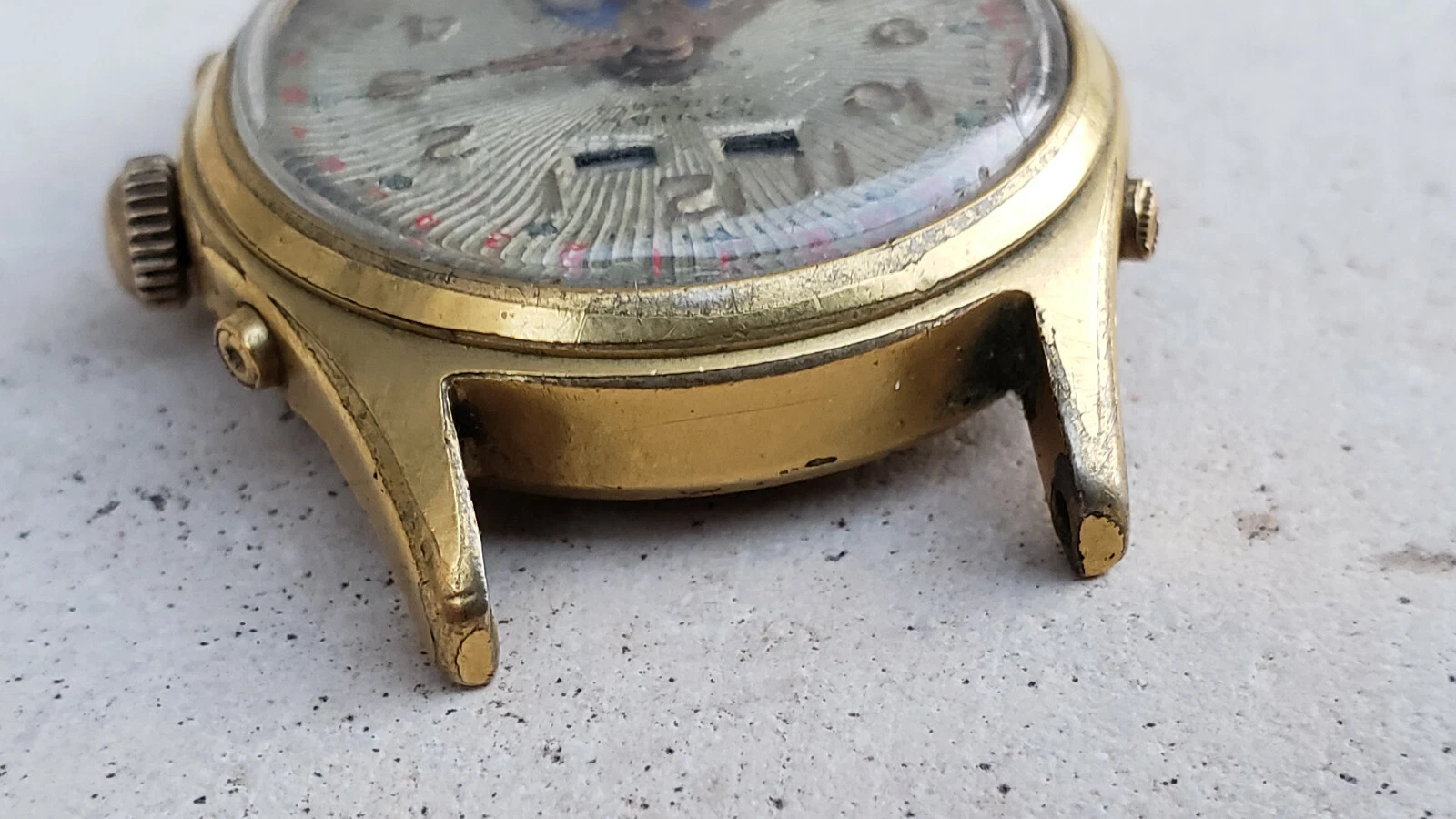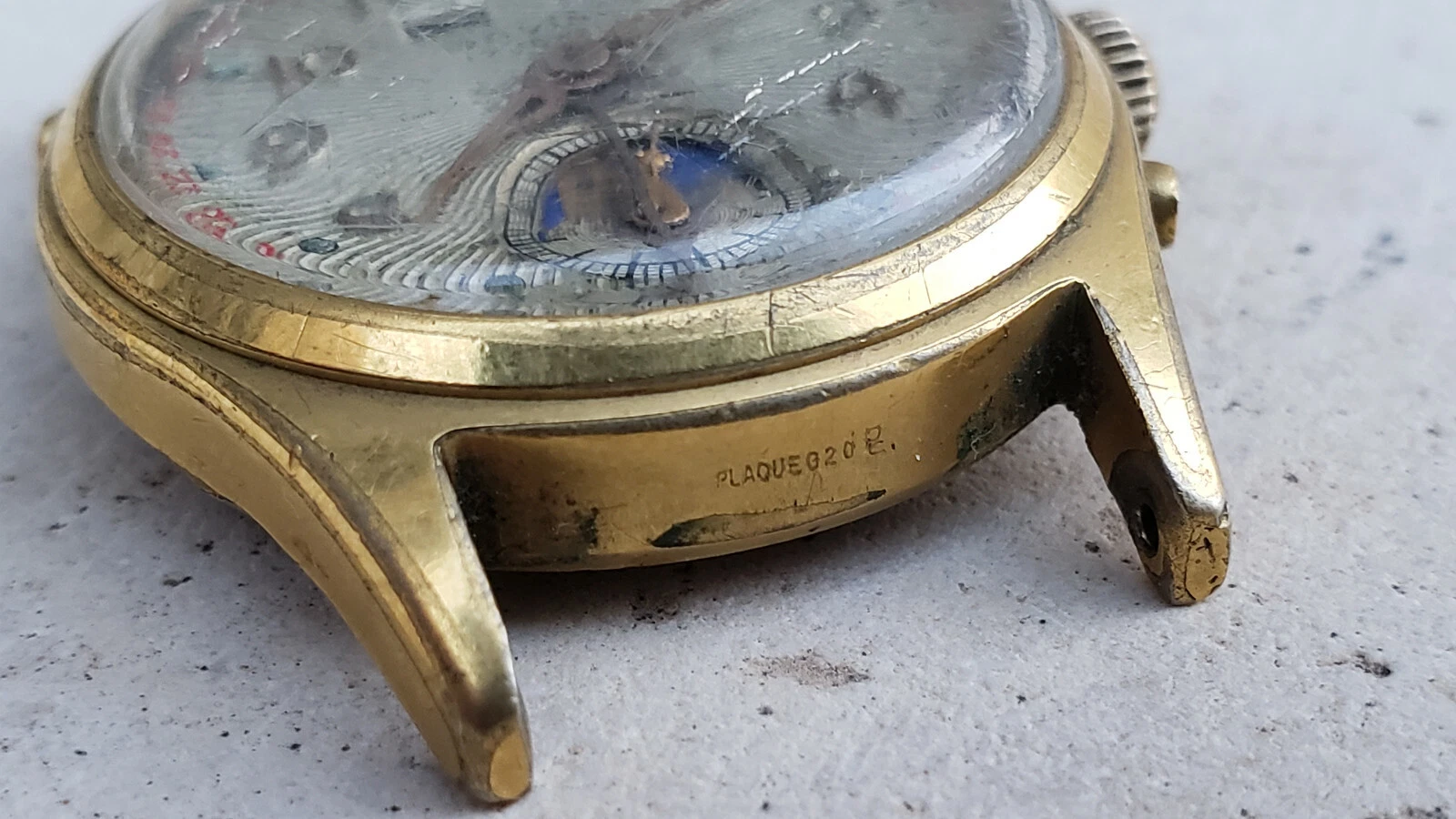 VINTAGE JOVIAL TRIPLE DATE MOONPHASE GOLD PLATED 32MM MENS WATCH