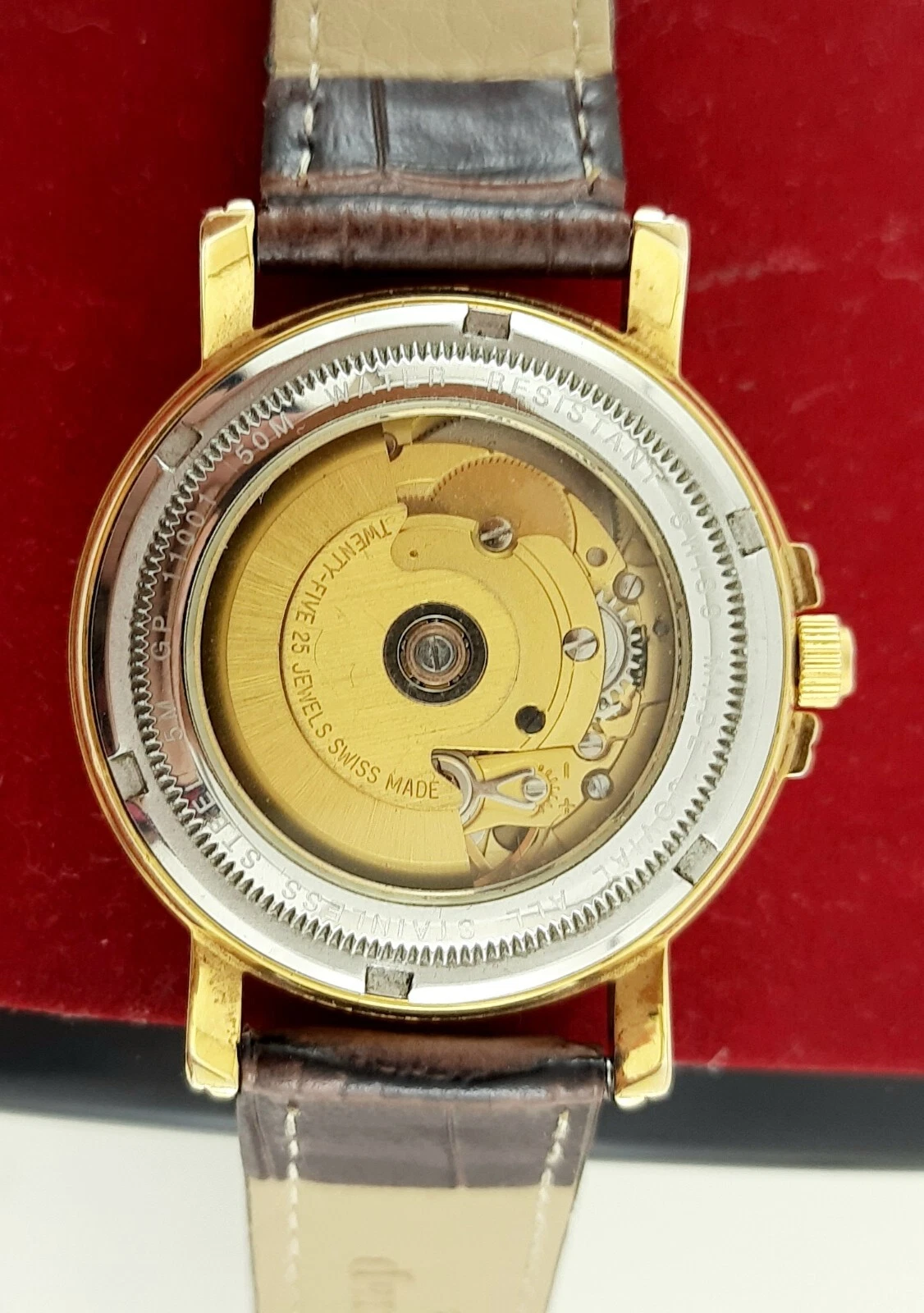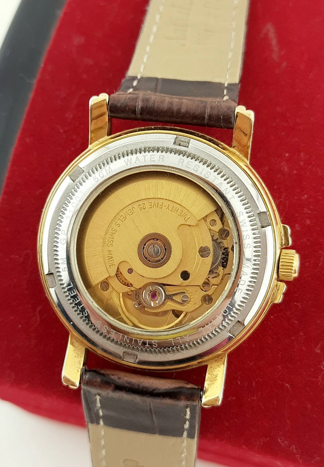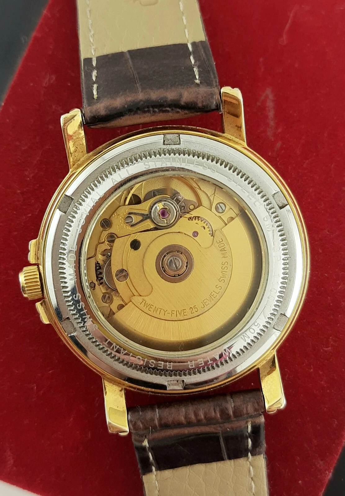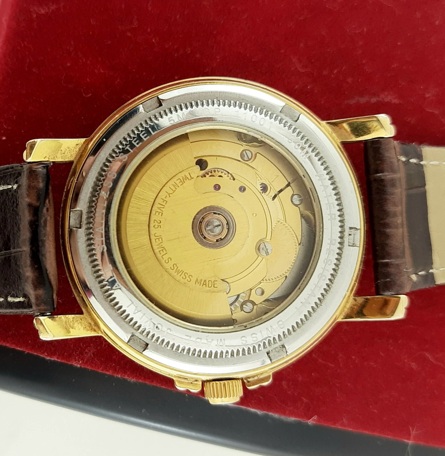 RARE jOVIAL AUTOMATIC 25JEWELS DAY-DATE SWISS MADE SS GOLDEN MEN’S WRIST WATCH