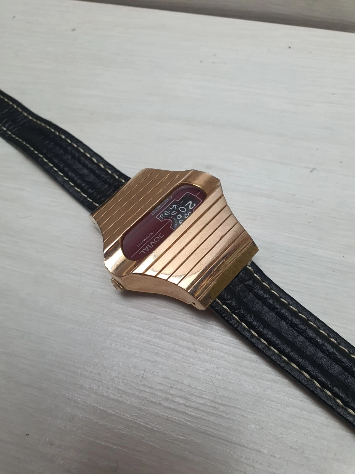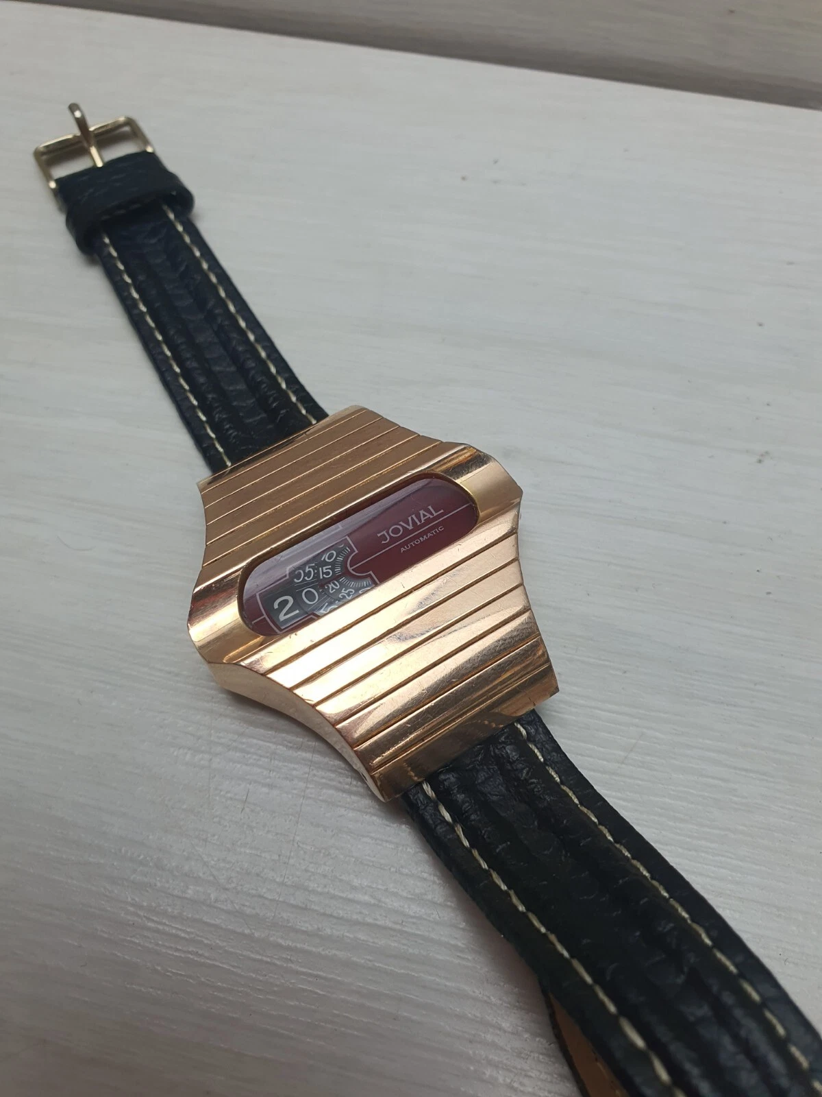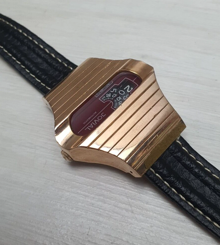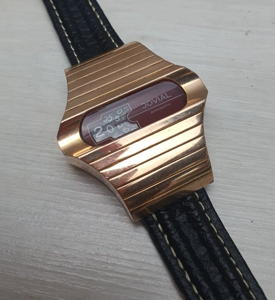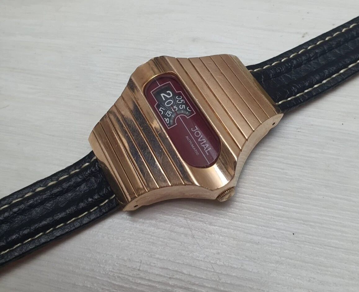 Vintage Space Age Jovial Jump Hour Automatic Wristwatch Watch Gold Plated Unique