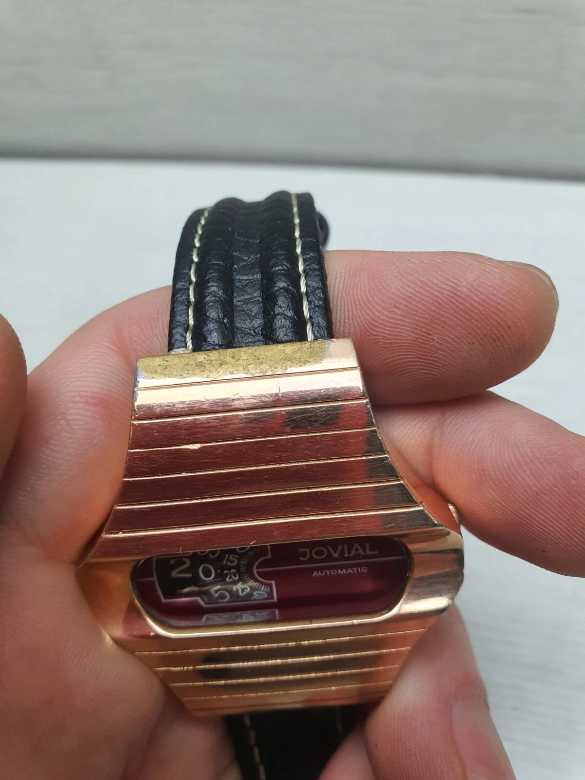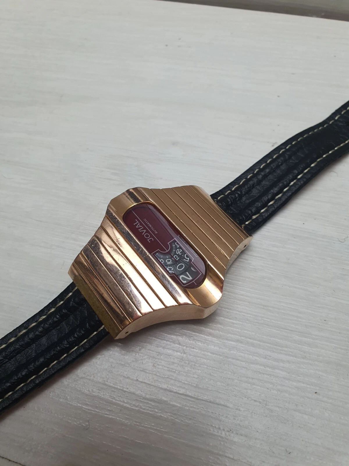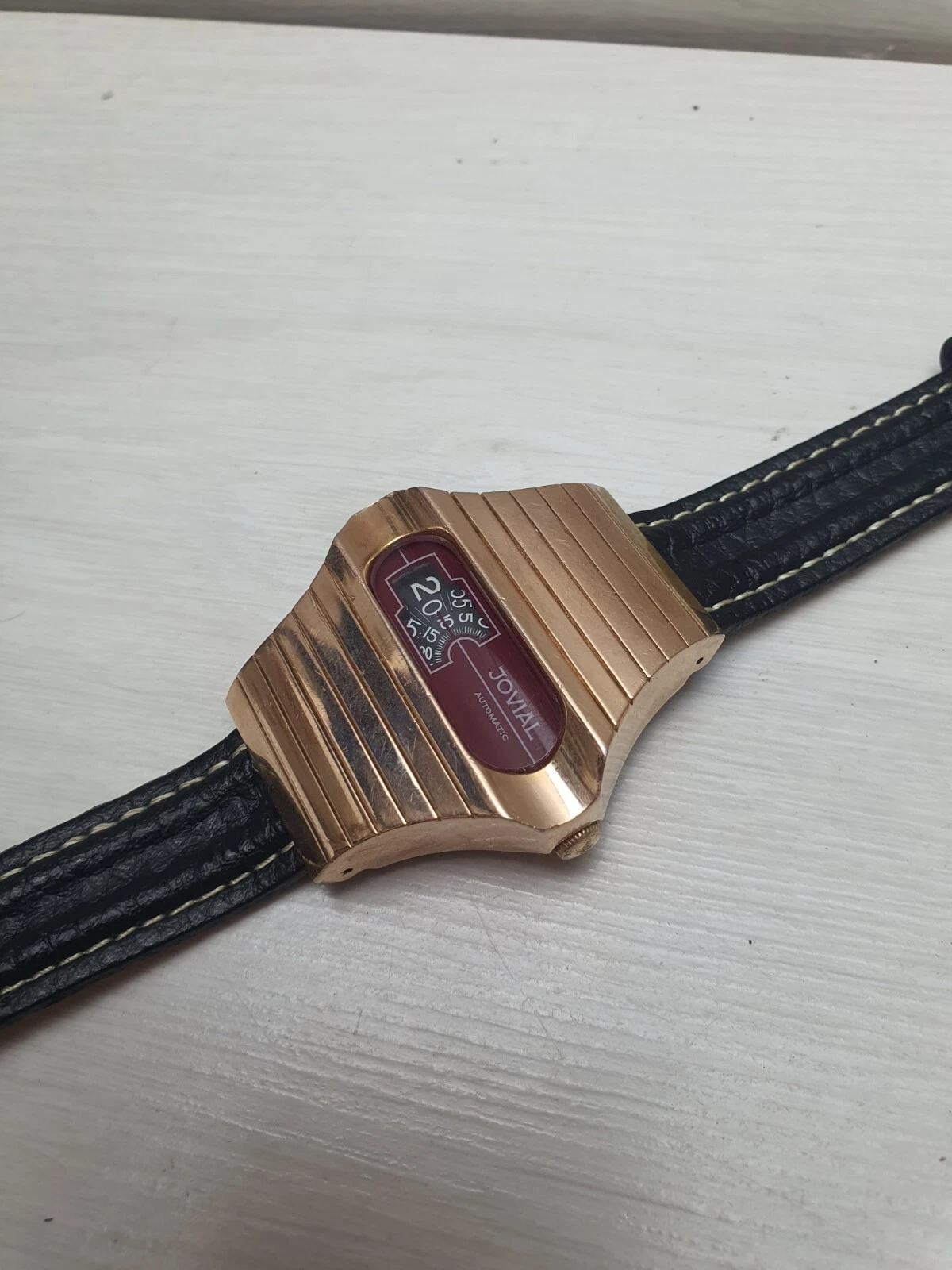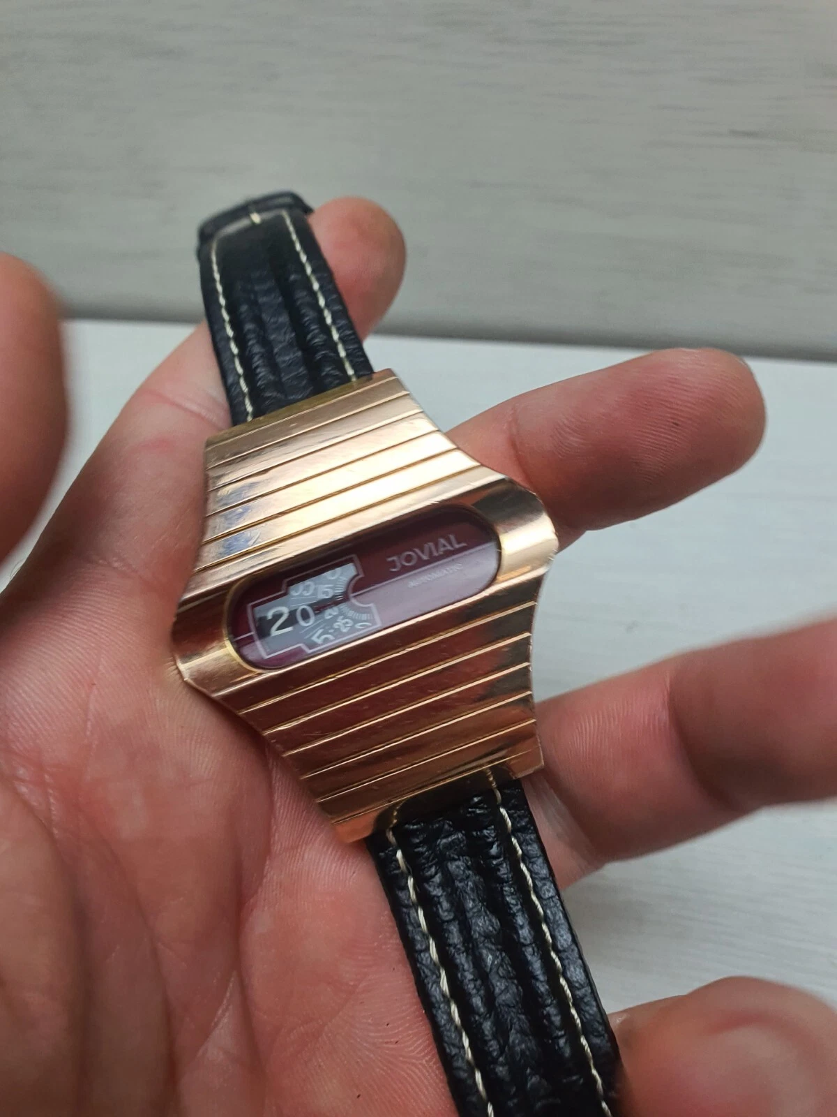 Vintage Space Age Jovial Jump Hour Automatic Wristwatch Watch Gold Plated Unique