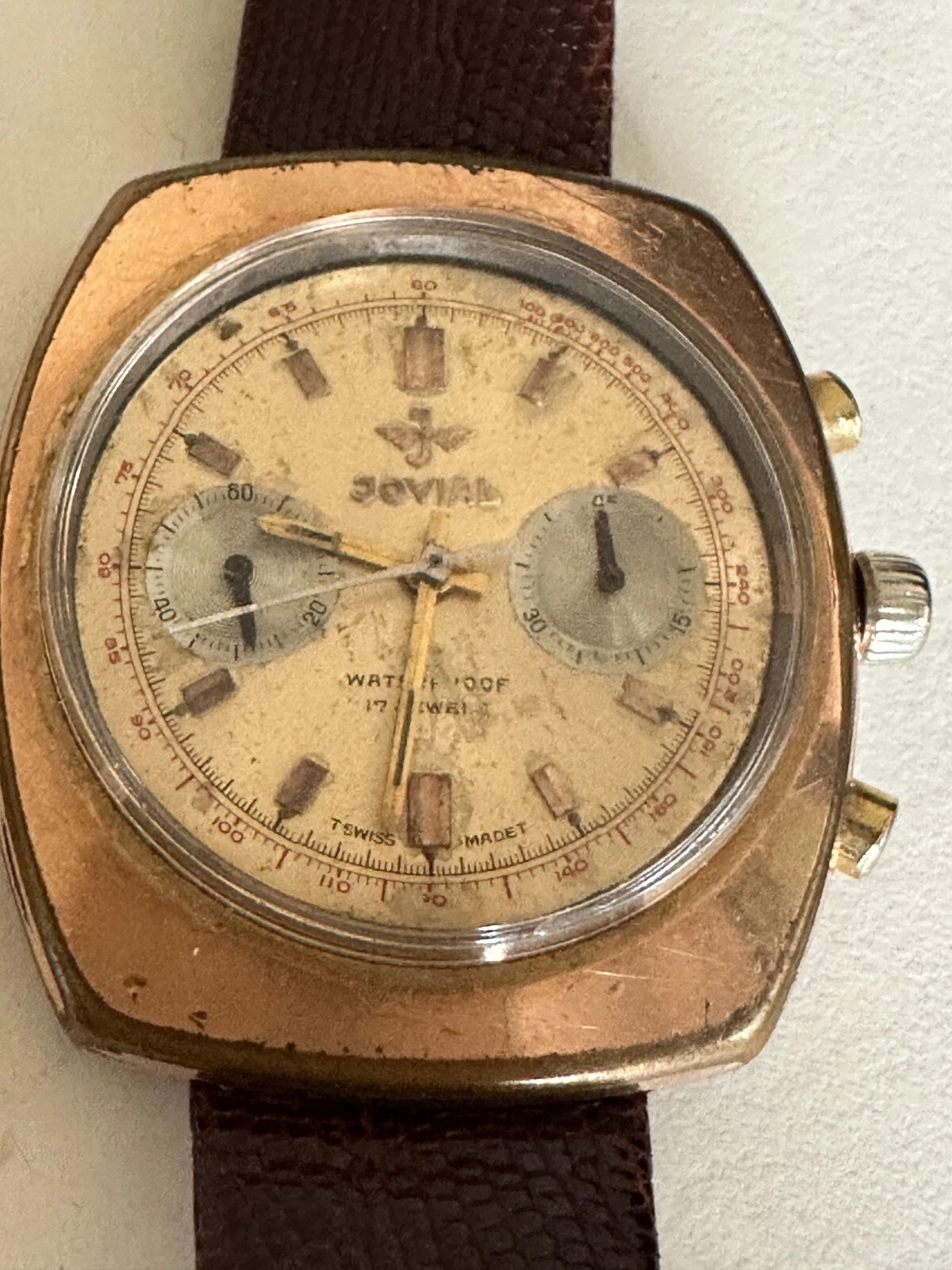 RARE SWISS MADE MECHANICAL DIVER WRISTWATCH JOVIAL WATERPROOF 17 JEWELS RUNNING.