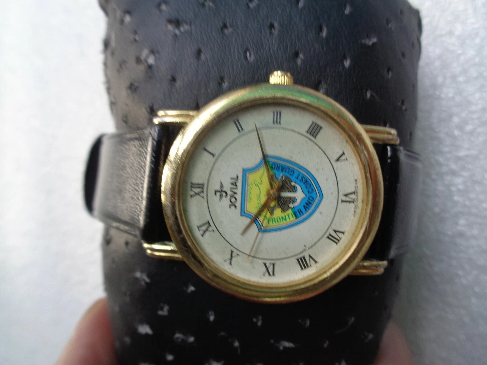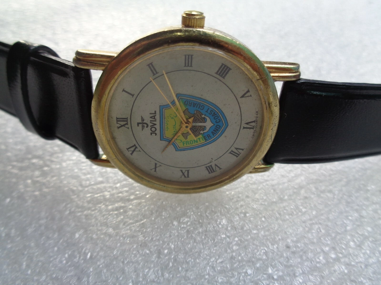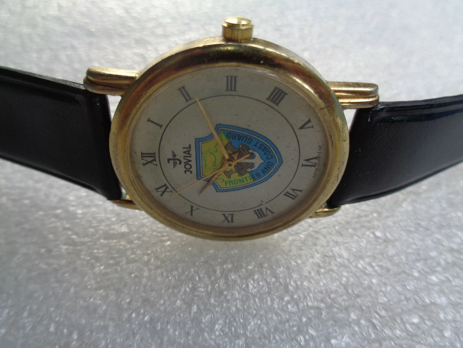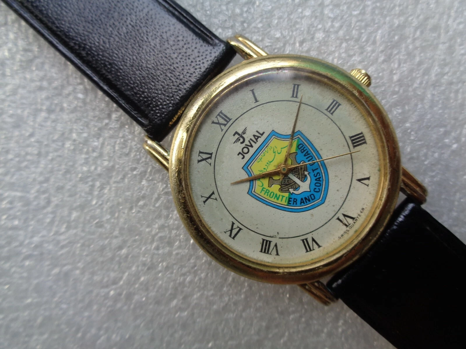 COLLECTIBLE VTG SWISS JOVIAL ARABIC OMAN FRONTIER & COAST GUARD LOGO MEN'S WATCH