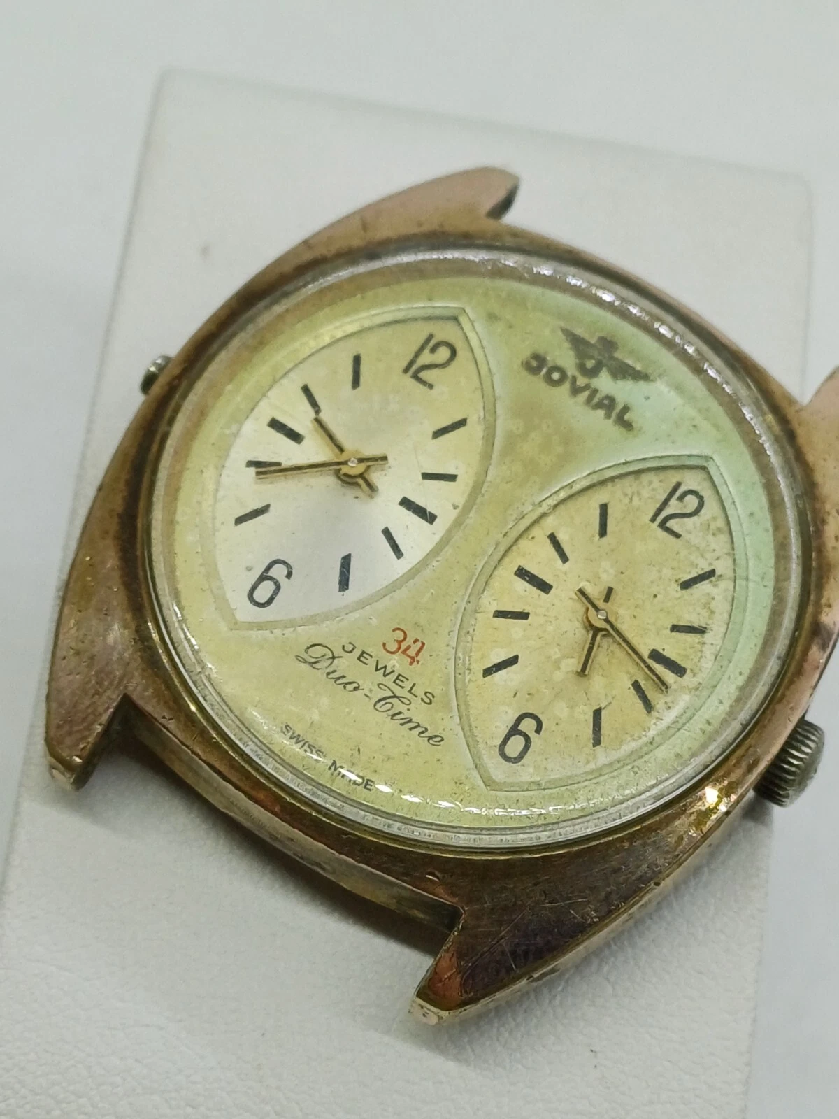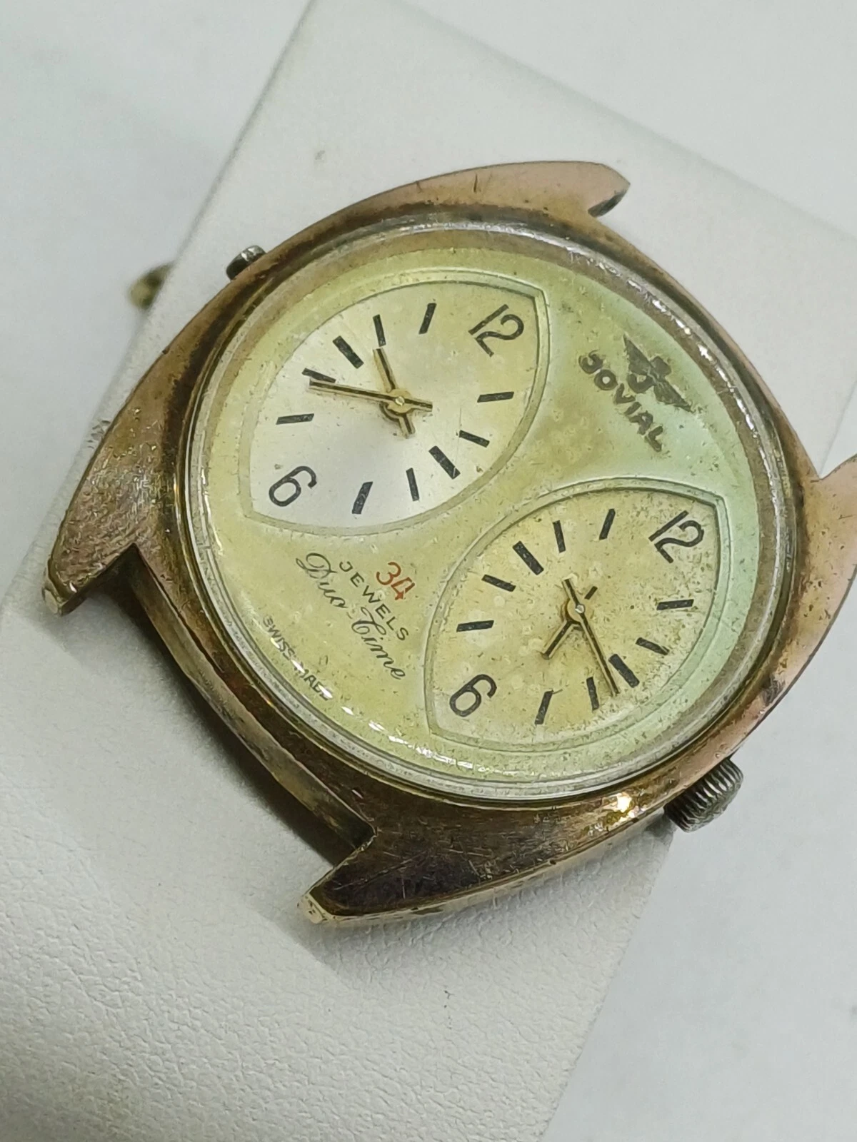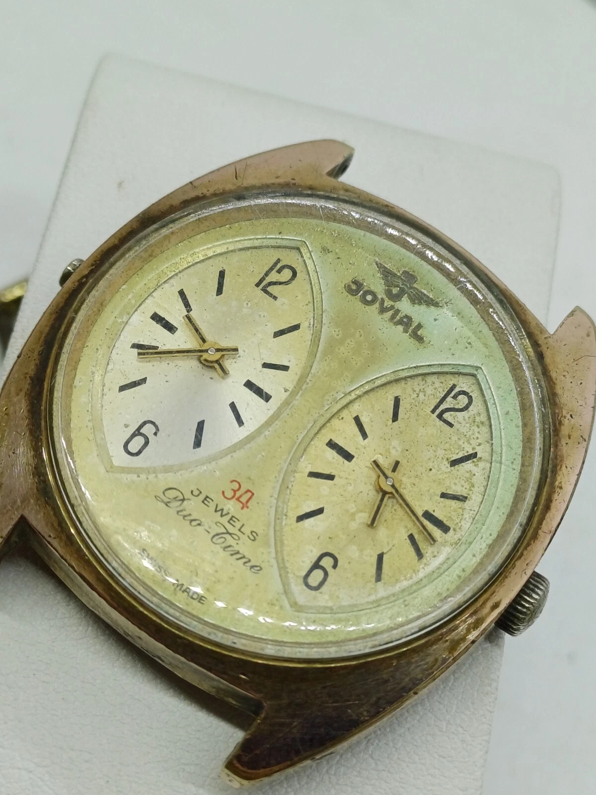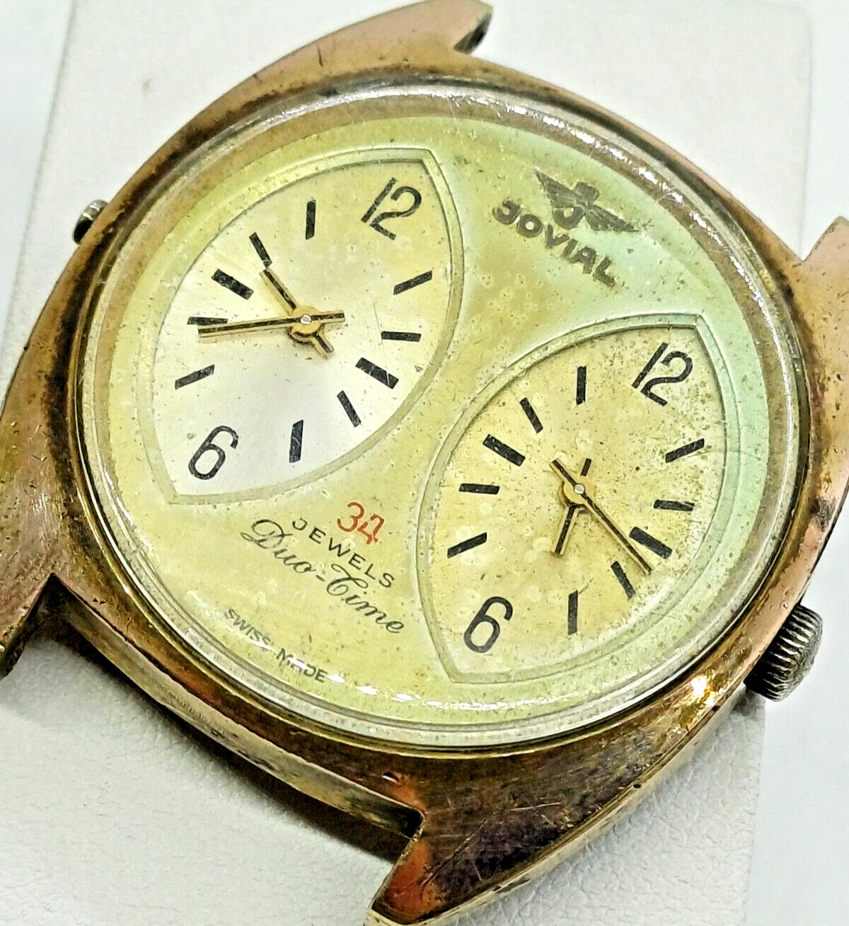 RARE VINT JOVIAL DUAL-TIME 34 JEWELS MANUAL WATCH MENS G .P FOR PARTS OR REPAIR