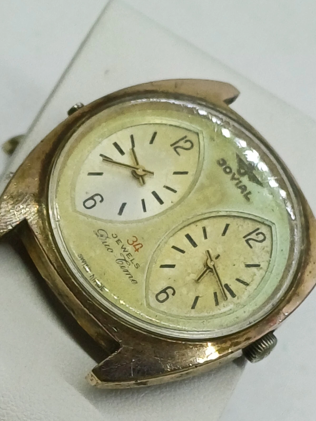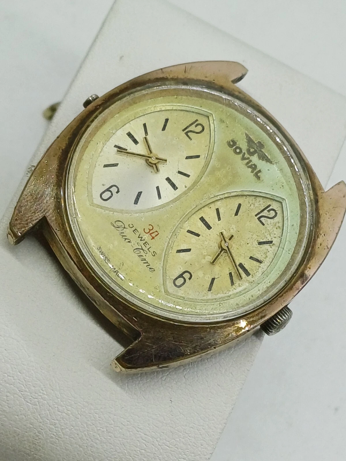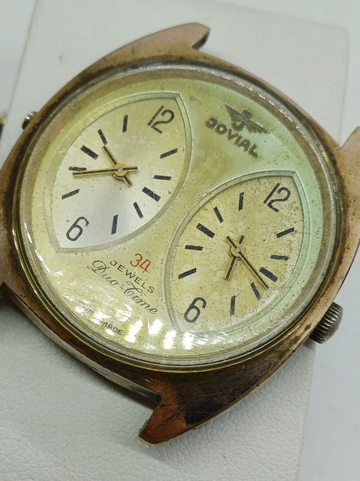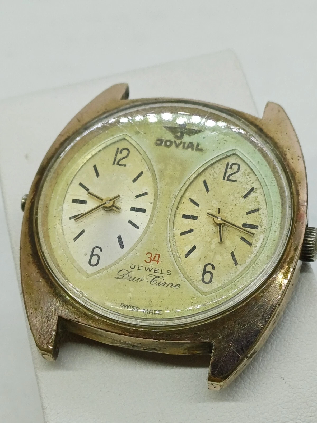 RARE VINT JOVIAL DUAL-TIME 34 JEWELS MANUAL WATCH MENS G .P FOR PARTS OR REPAIR