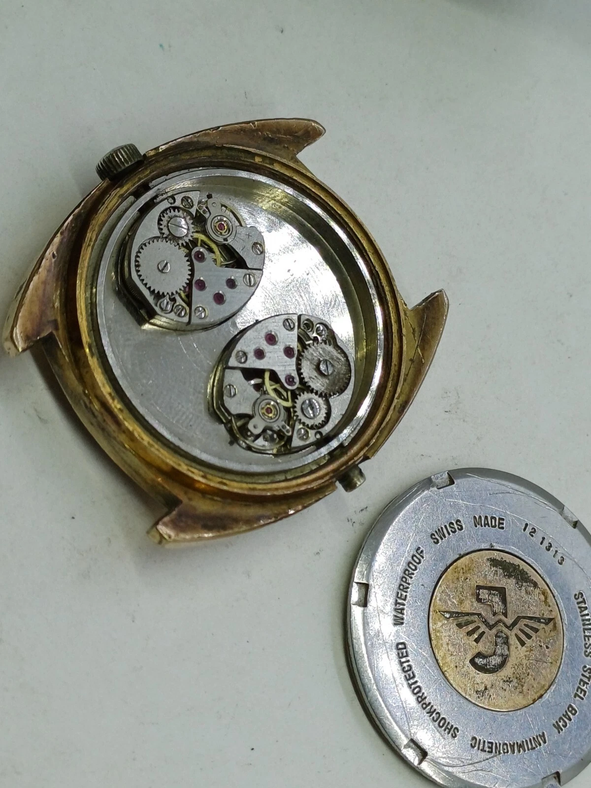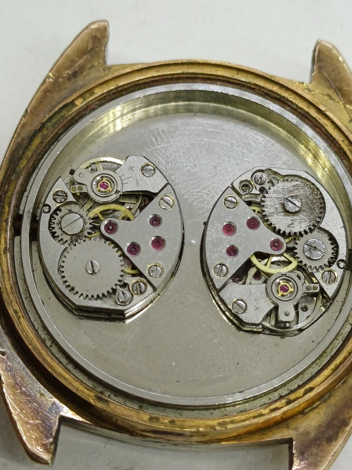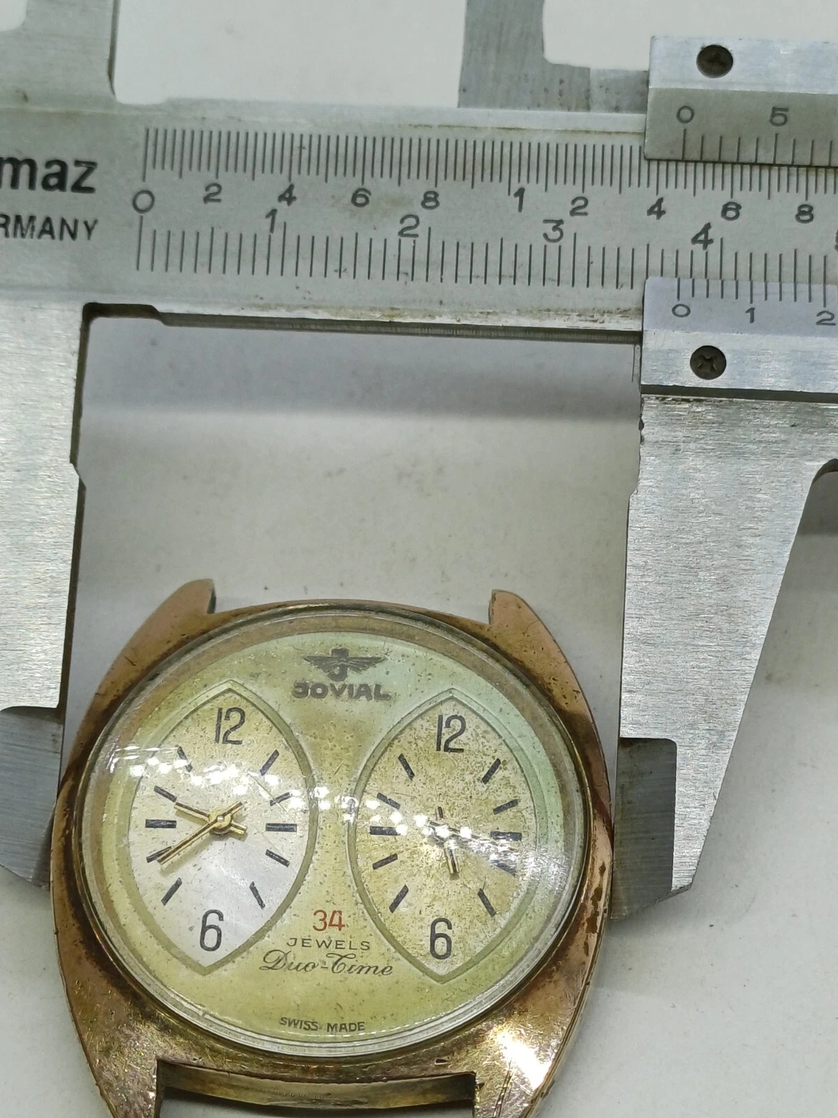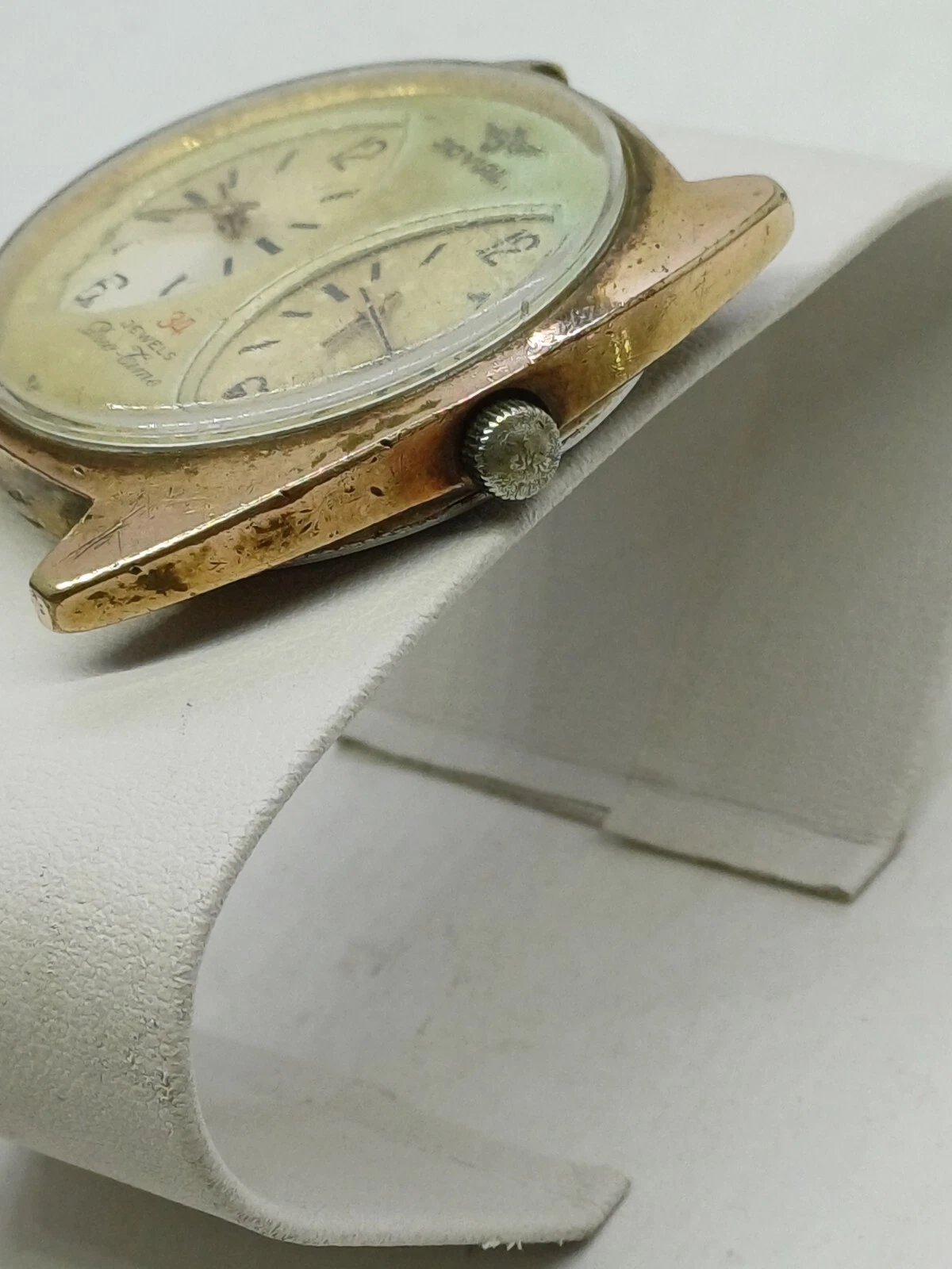 RARE VINT JOVIAL DUAL-TIME 34 JEWELS MANUAL WATCH MENS G .P FOR PARTS OR REPAIR