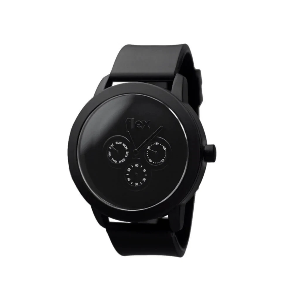 FLEX Watches Black Sport Watch 48 mm Silicone Water Resistant 3 ATM Analog NEW