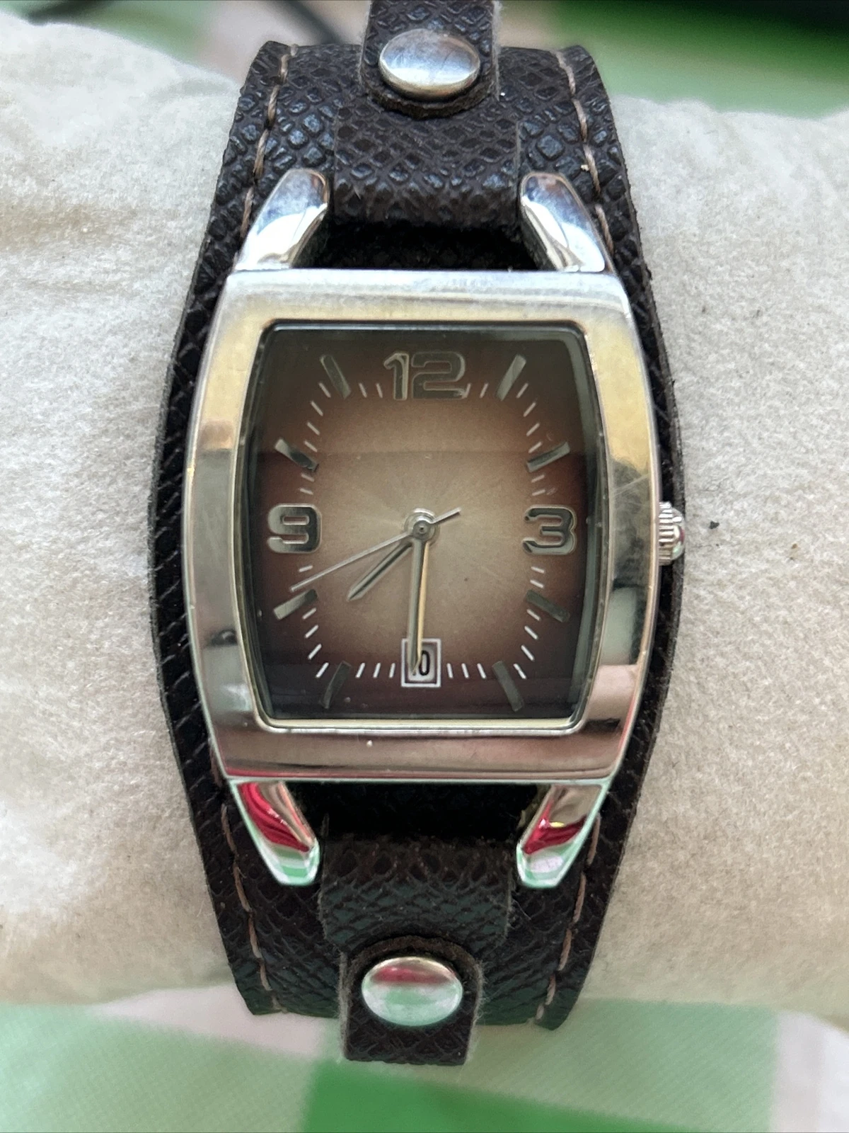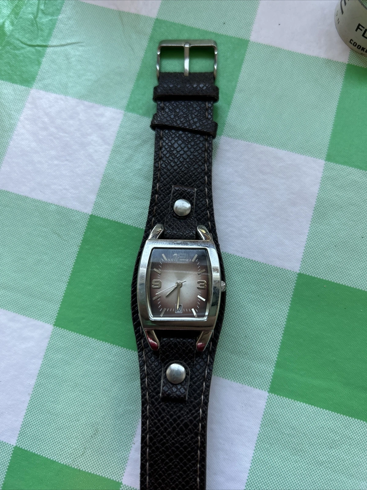 FY1178 JAPAN MOVT FMD LEATHER STRAP WRIST WATCH 7983 BATTERY WORKS GREAT
