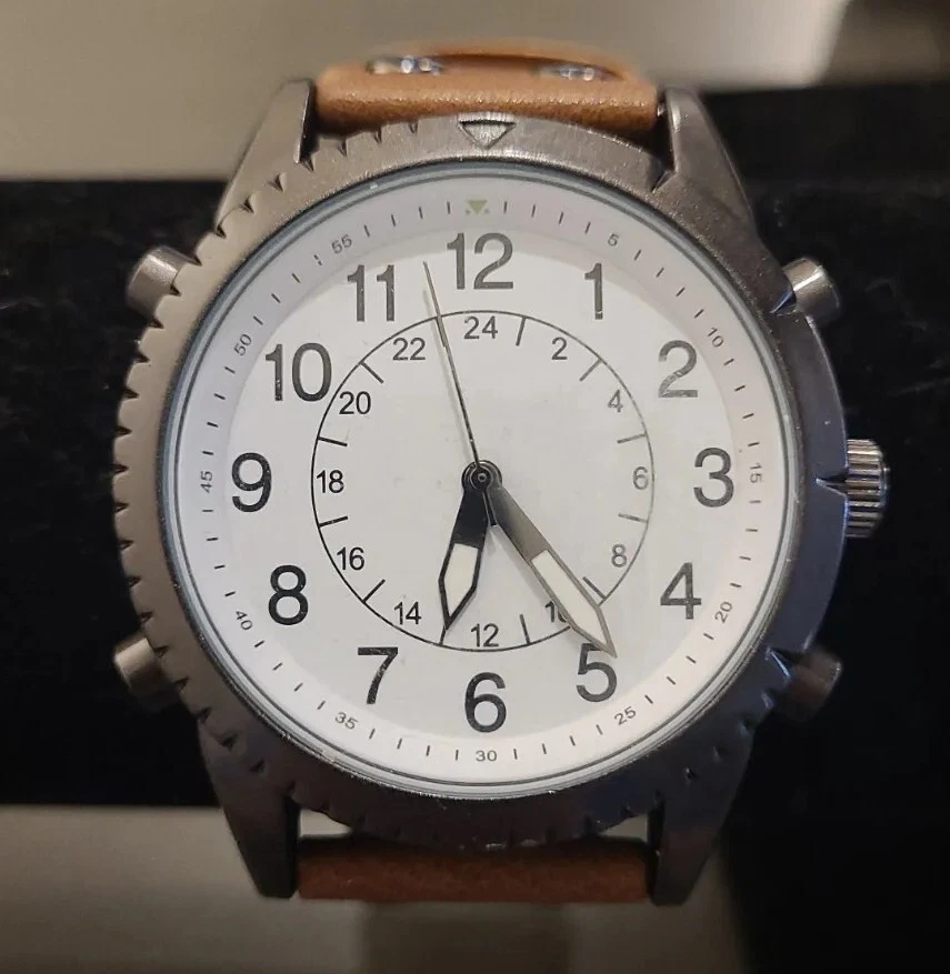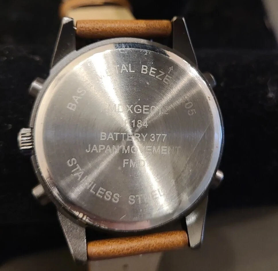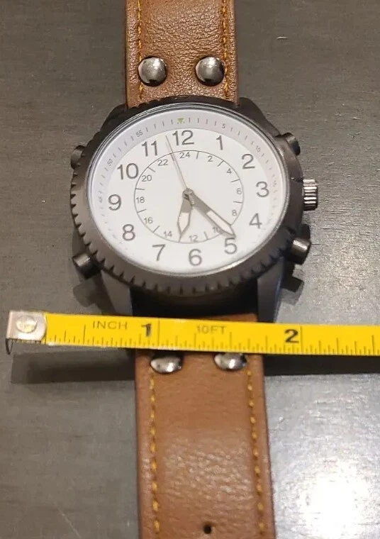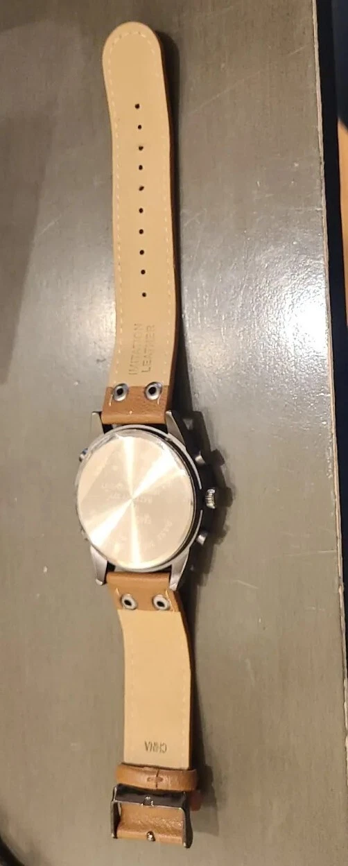 FMD Men's Quartz Stainless Steel Back White Face Faux Leather Band