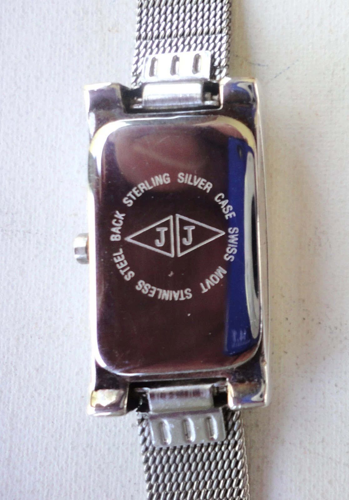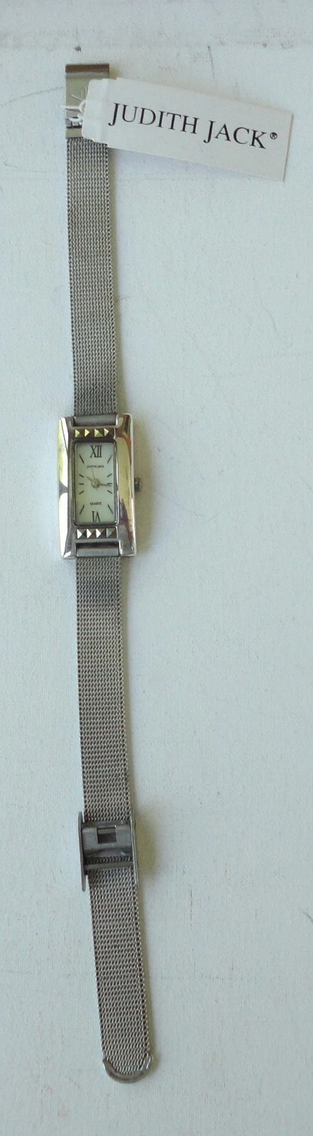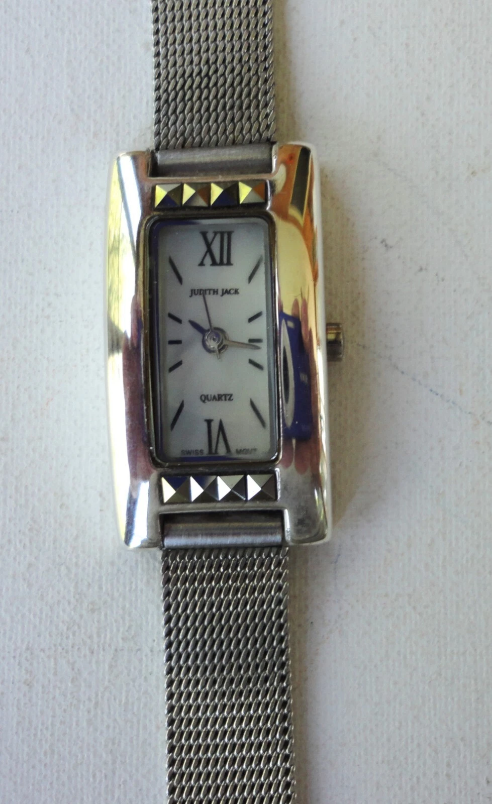 Judith Jack Art Deco Tankard Style Wristwatch Sterling Stainless Mesh Band