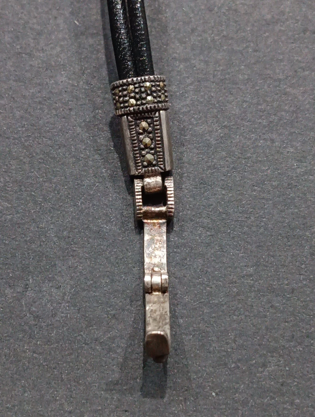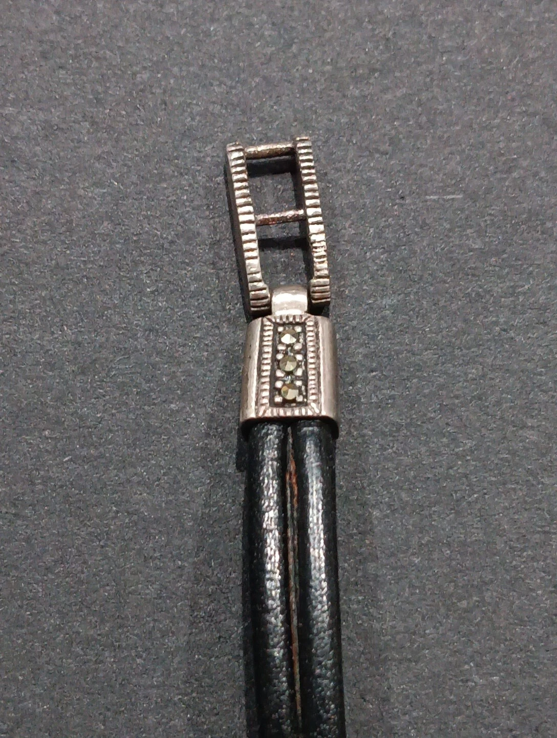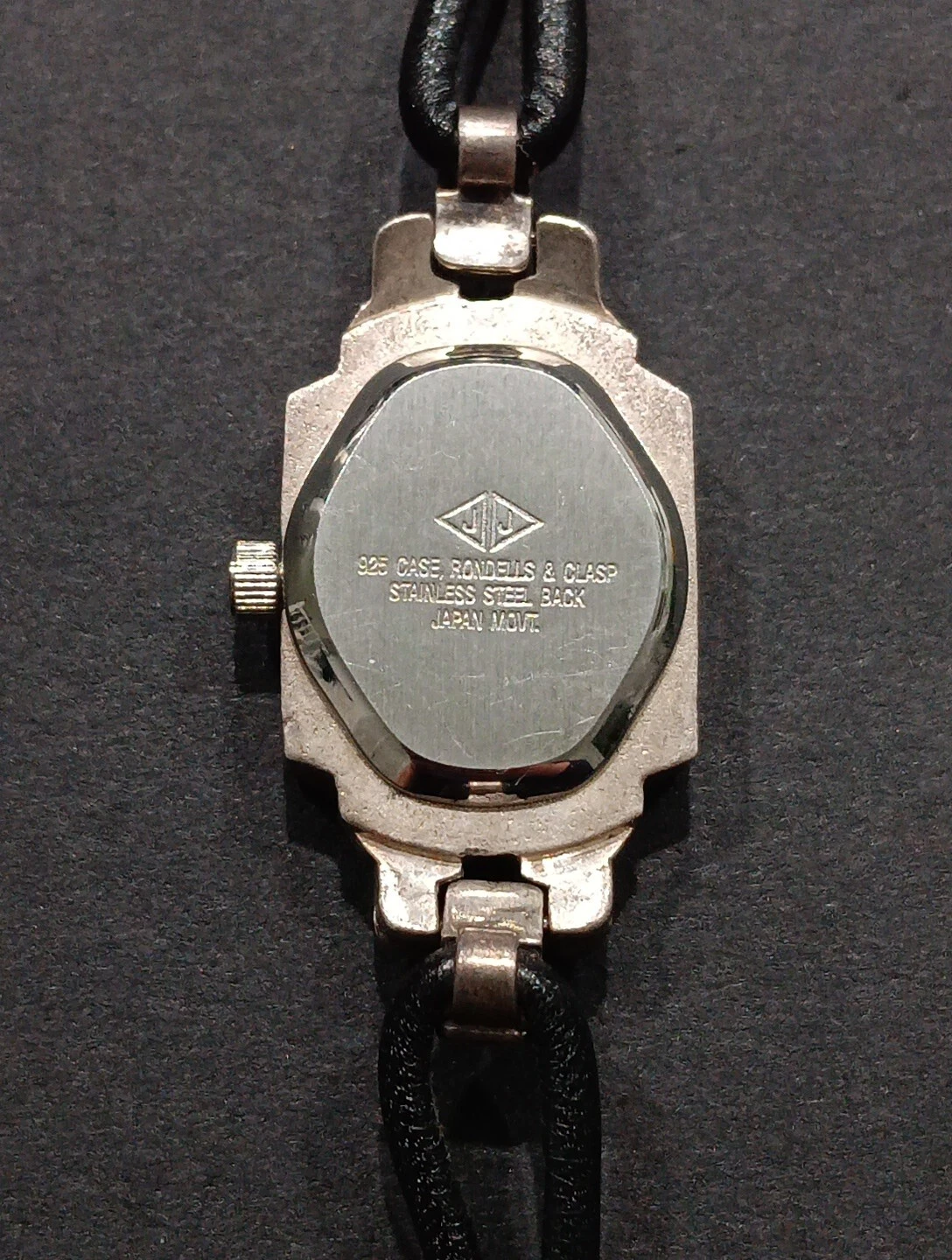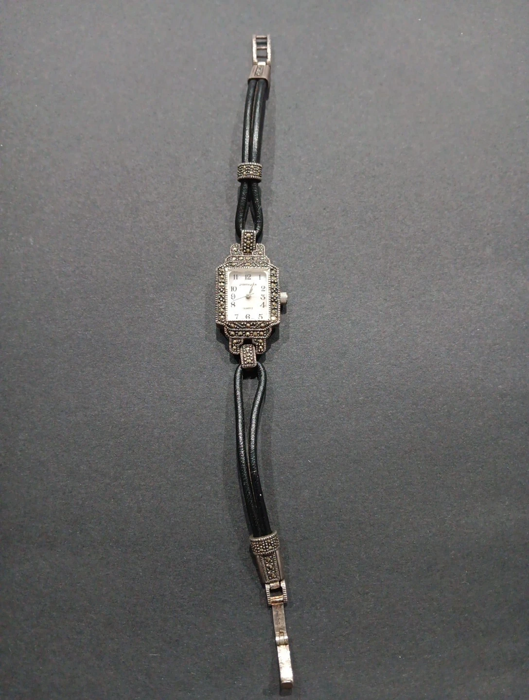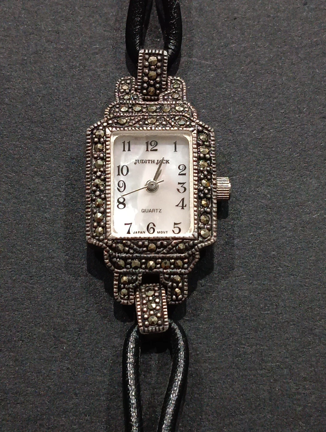 Vintage JUDITH JACK JJ 925 Sterling Marcasite Abalone Leather Band Ladies Watch