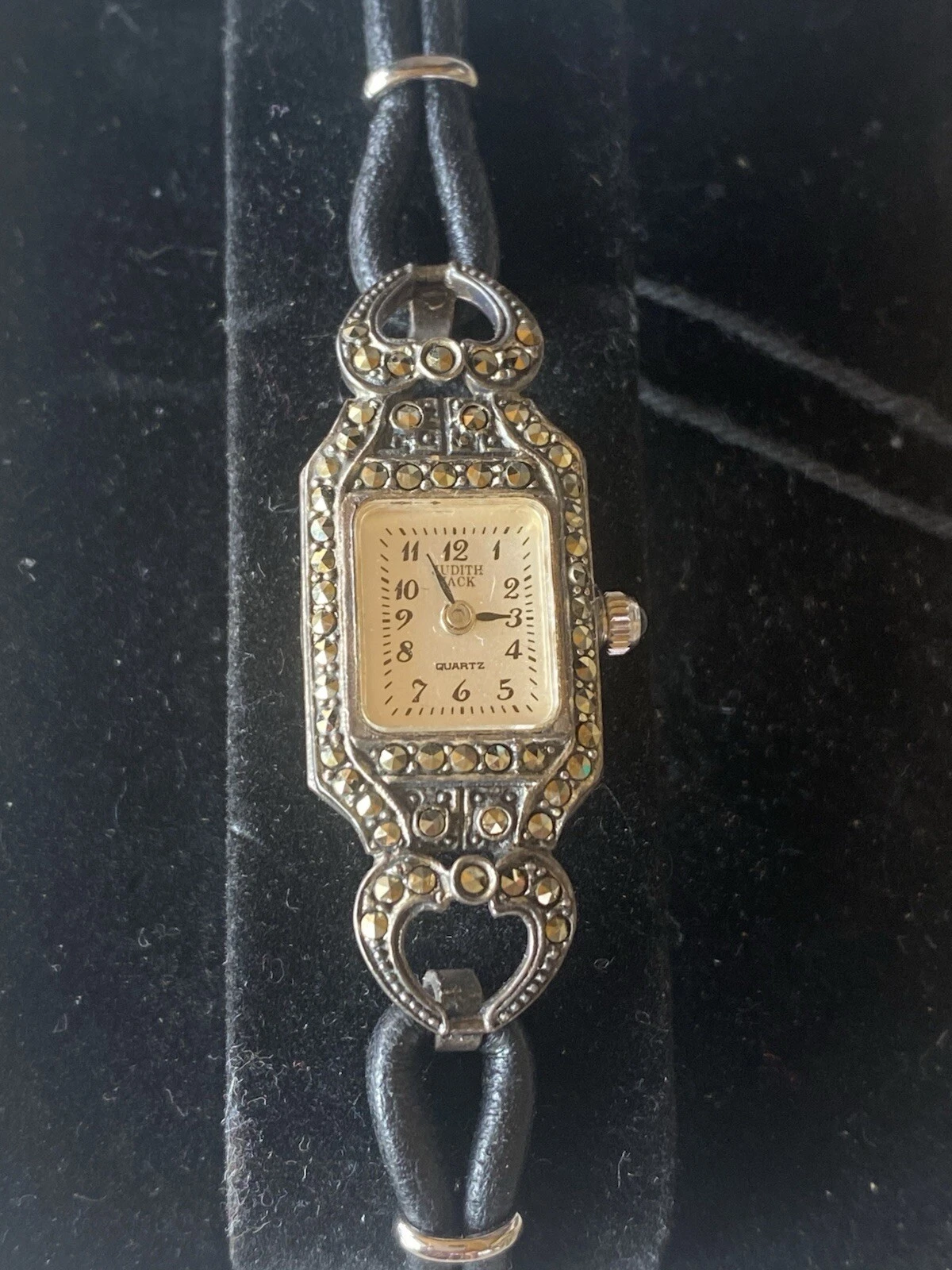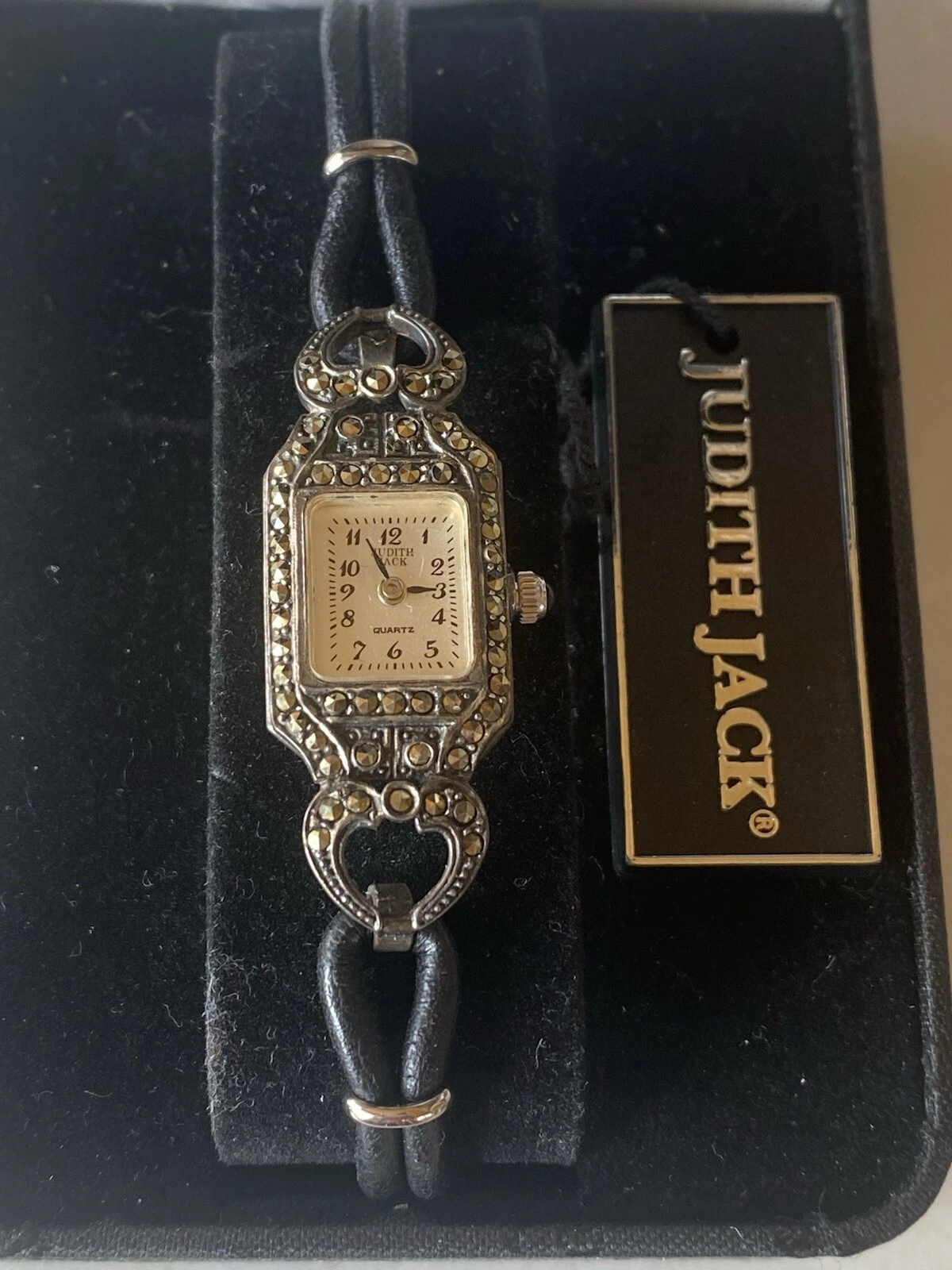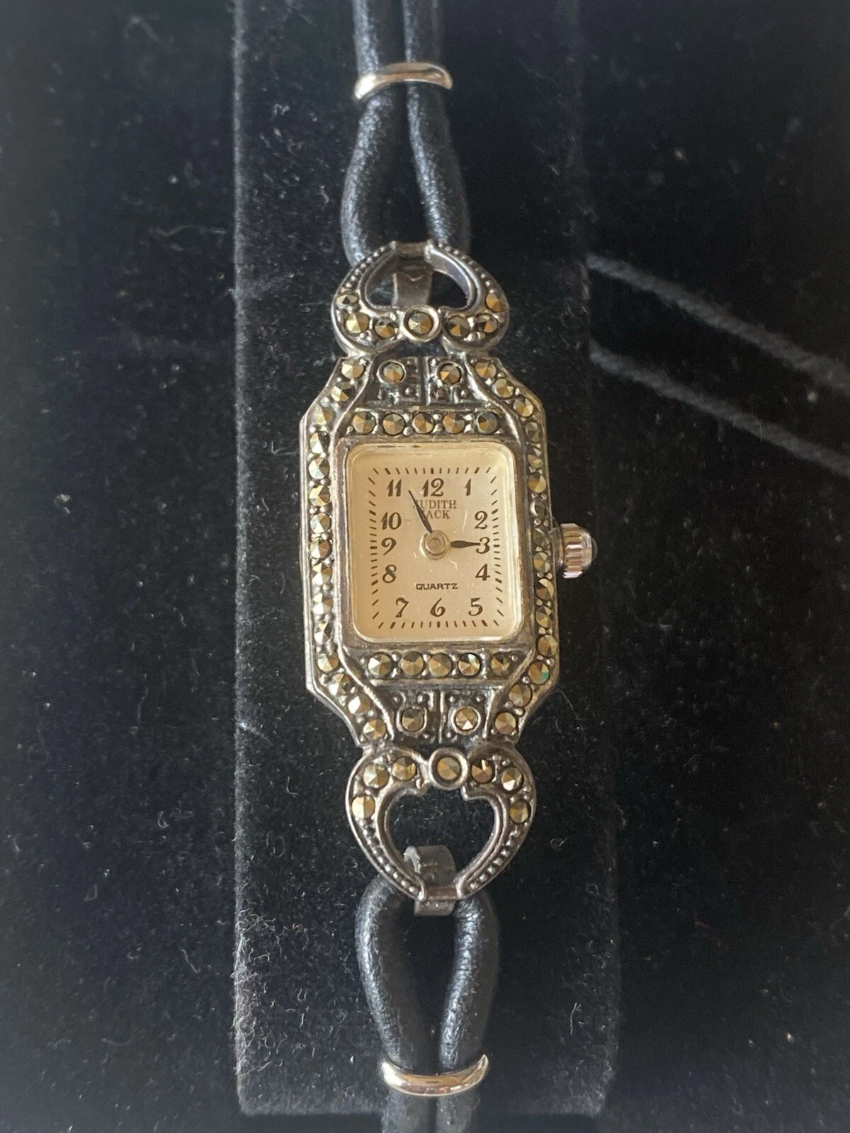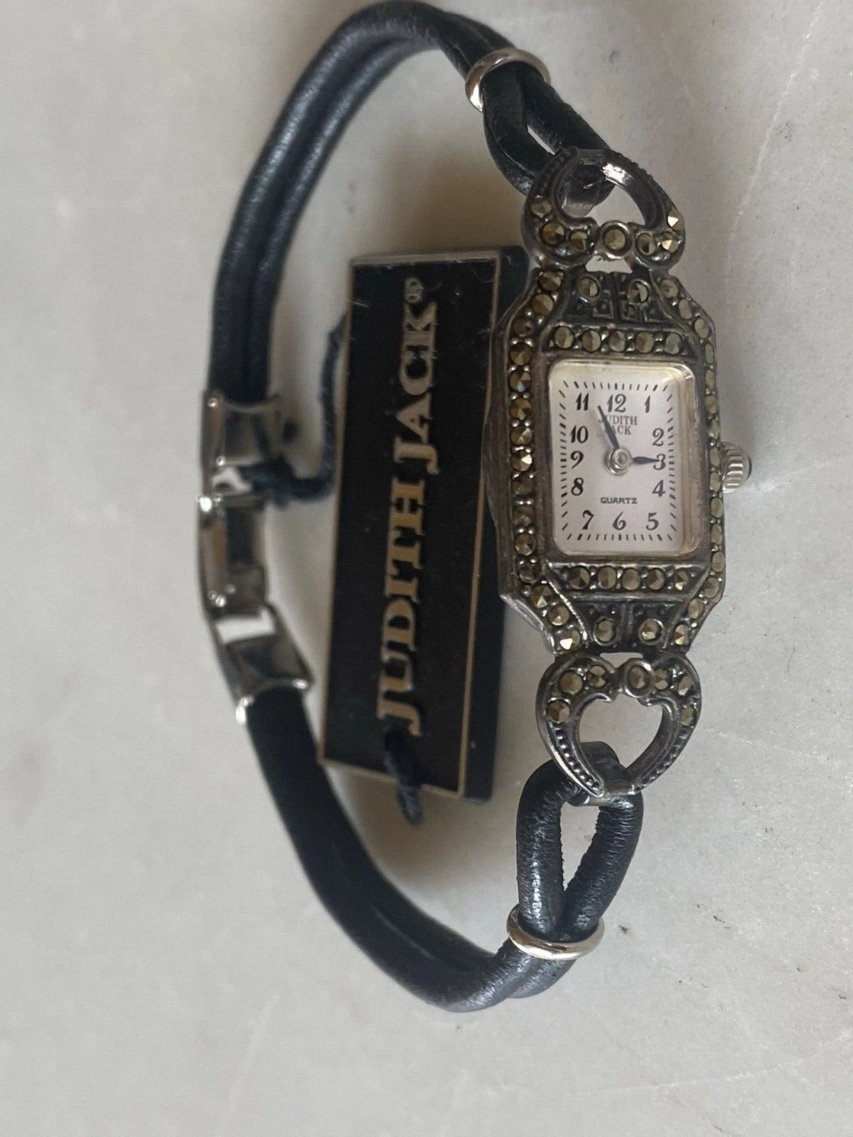 Vintage JUDITH JACK 925 MOP Sterling Marcasite Leather Band Old Stock New 24.2g