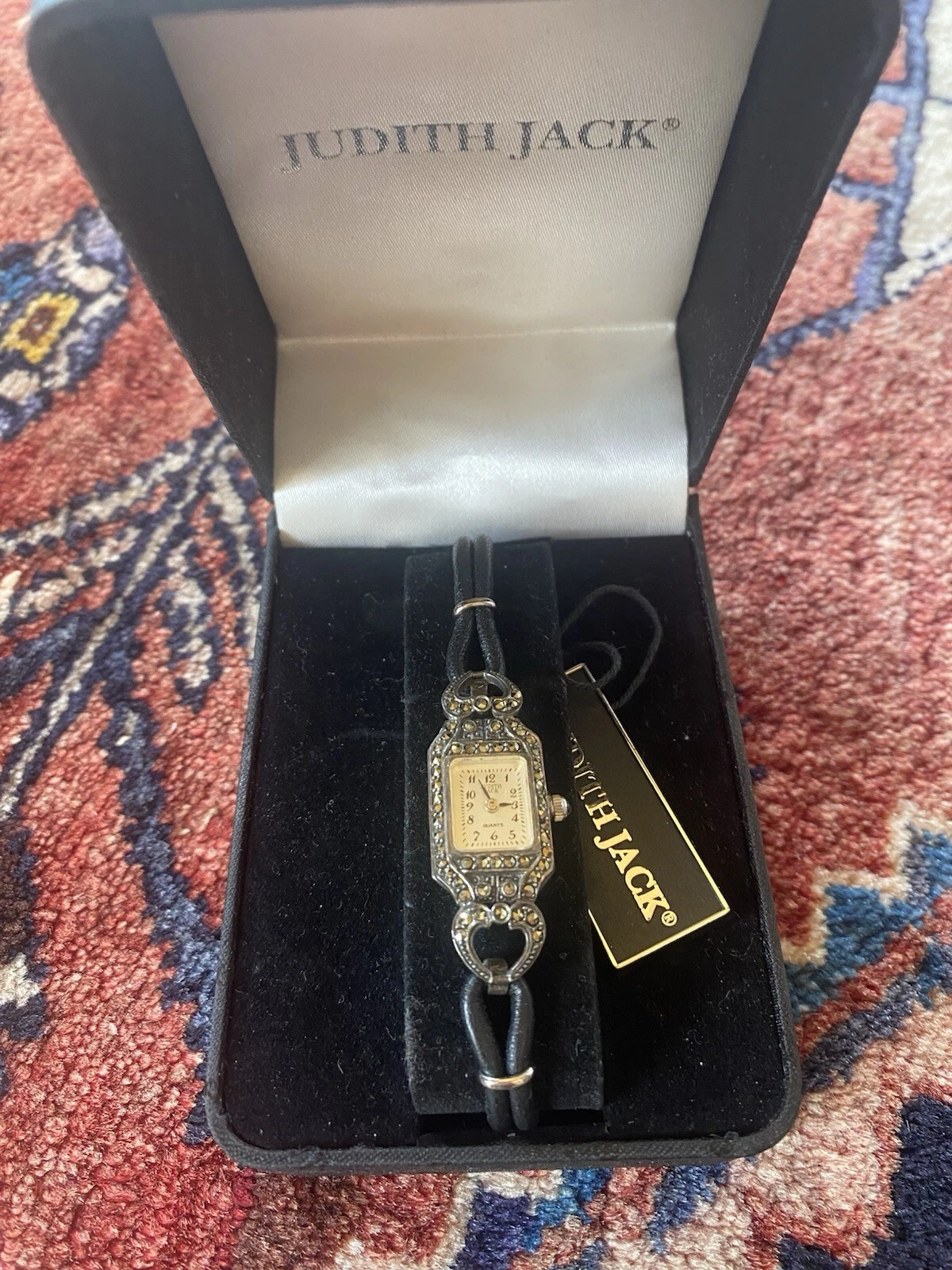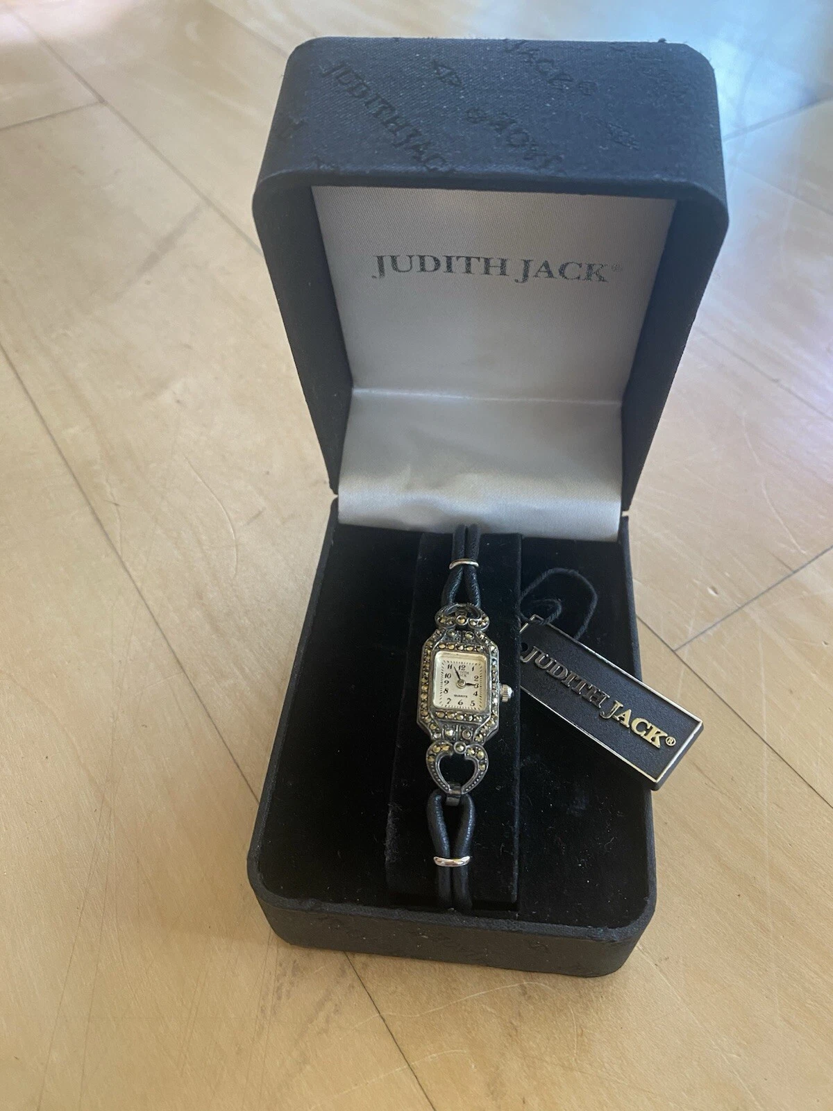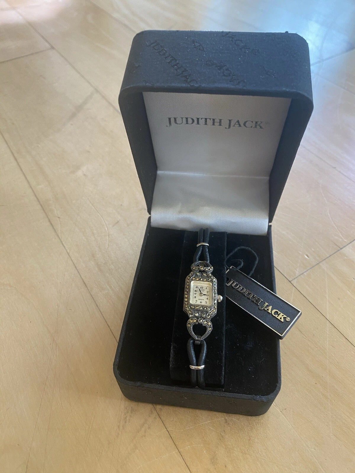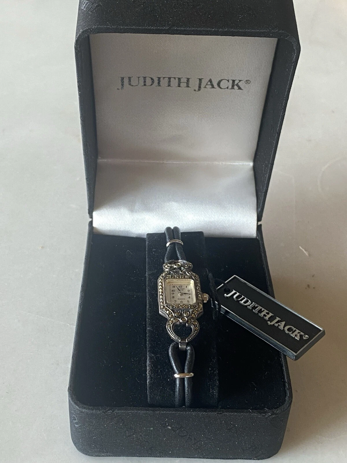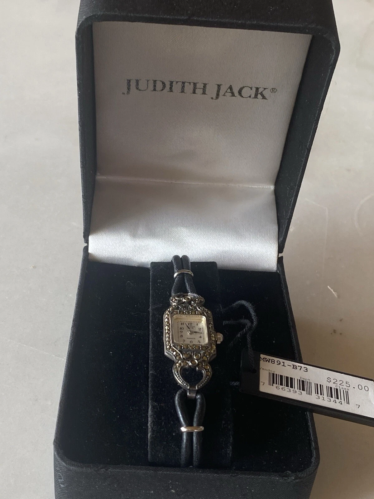 Vintage JUDITH JACK 925 MOP Sterling Marcasite Leather Band Old Stock New 24.2g