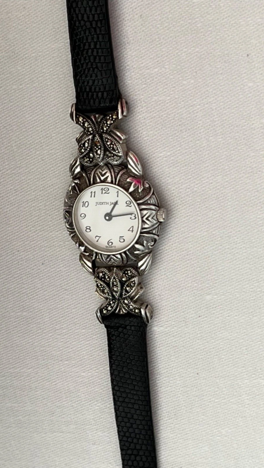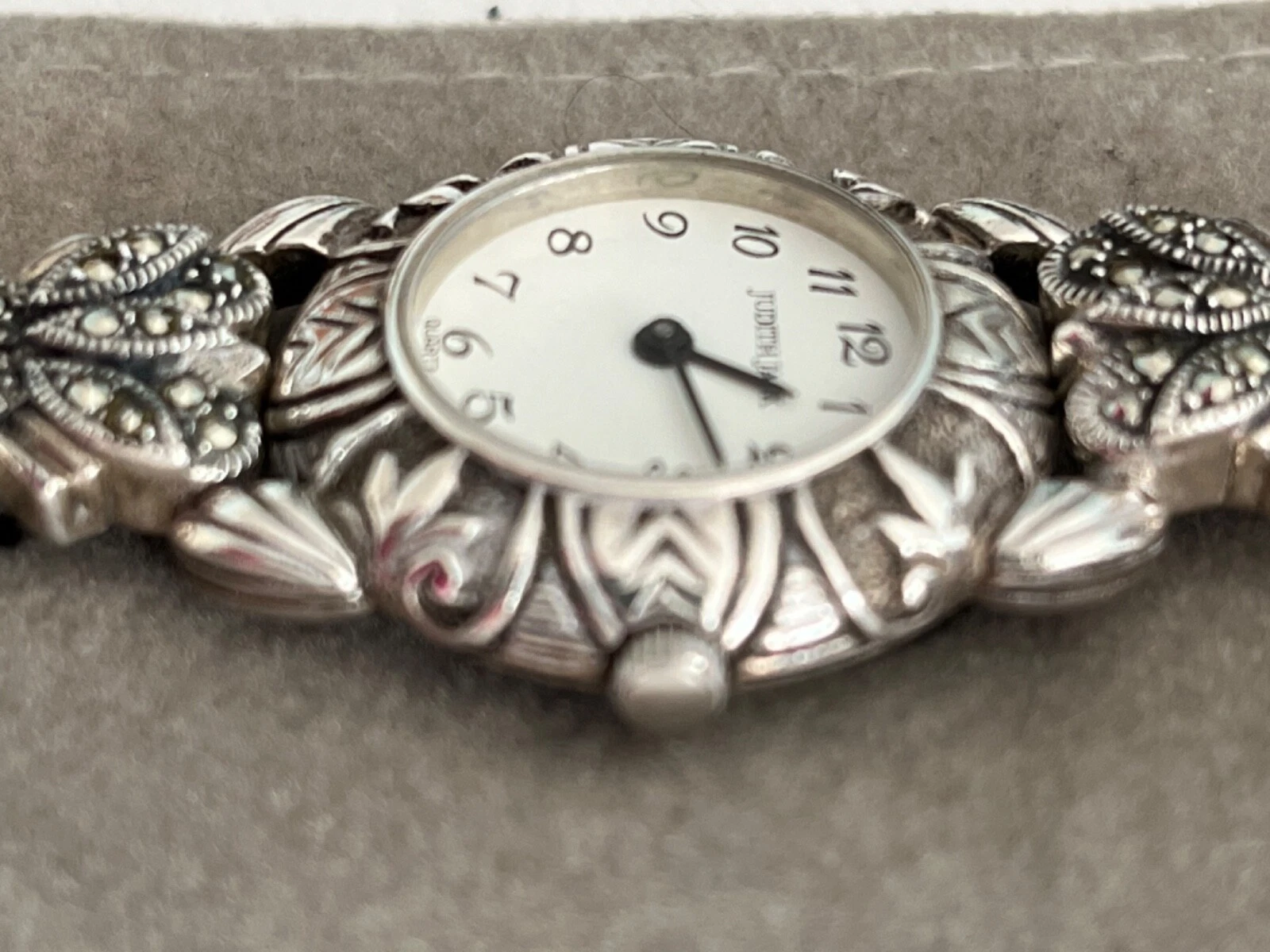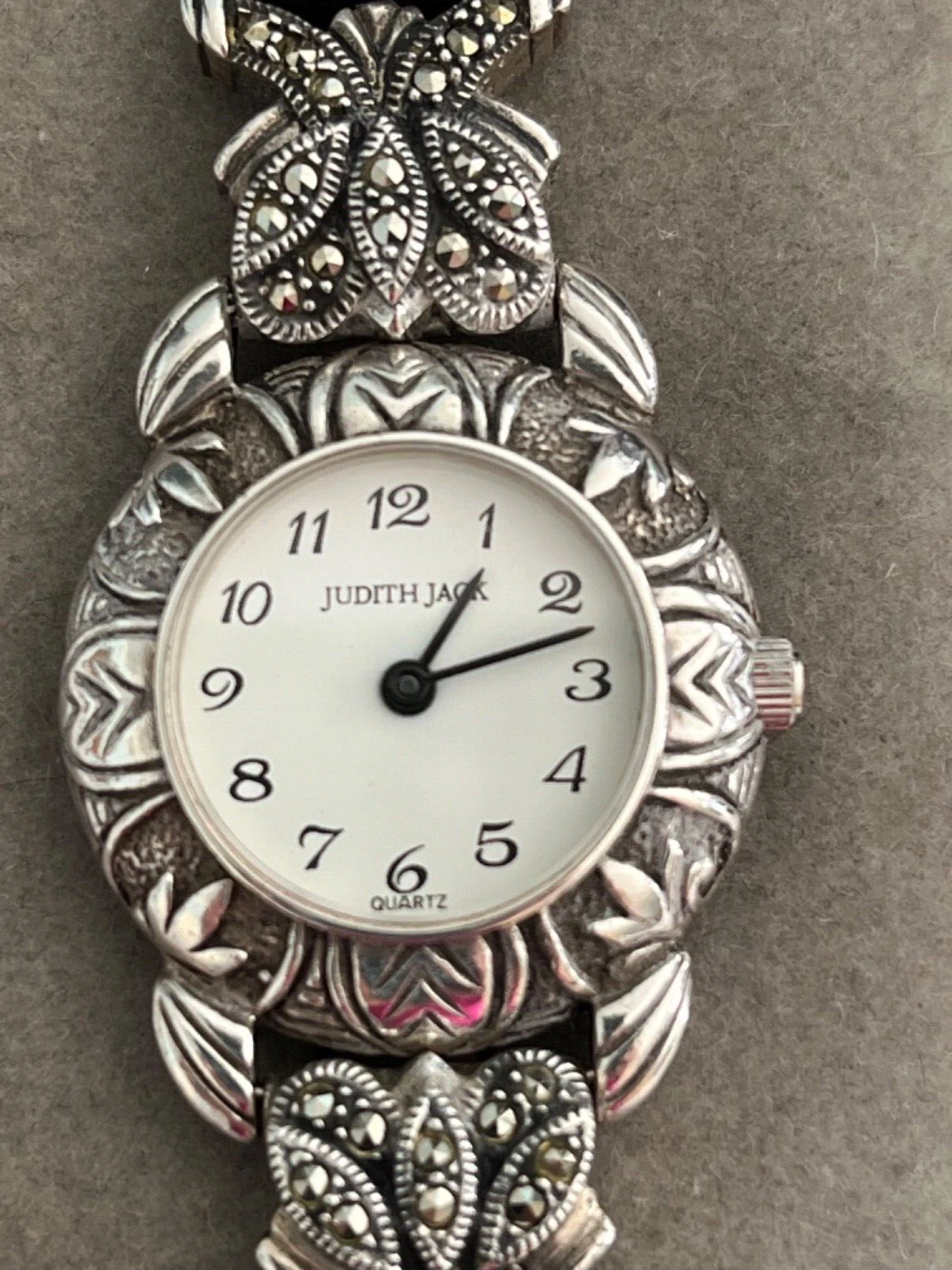 JUDITH JACK 925 Sterling Silver Marcasite's Quartz Women Watch New Battery DsVa