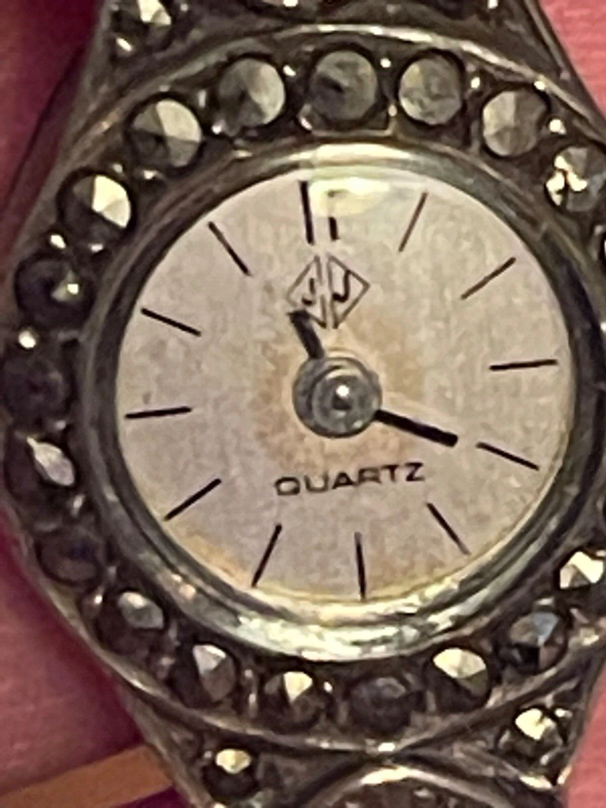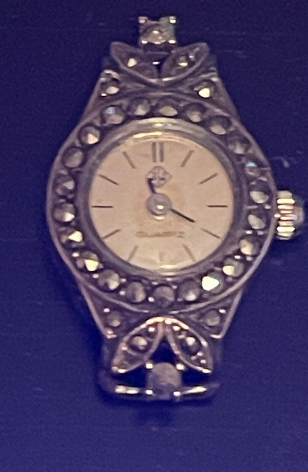 Vtg  JJ Judith Jack Watch Women Sterling Silver Marcasite