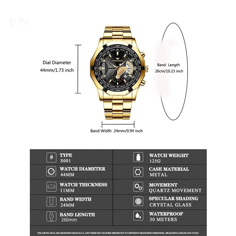 FNGEEN Waterproof Ultra-thin Fashion Calendar Quartz Analog Luxury Men's Watch