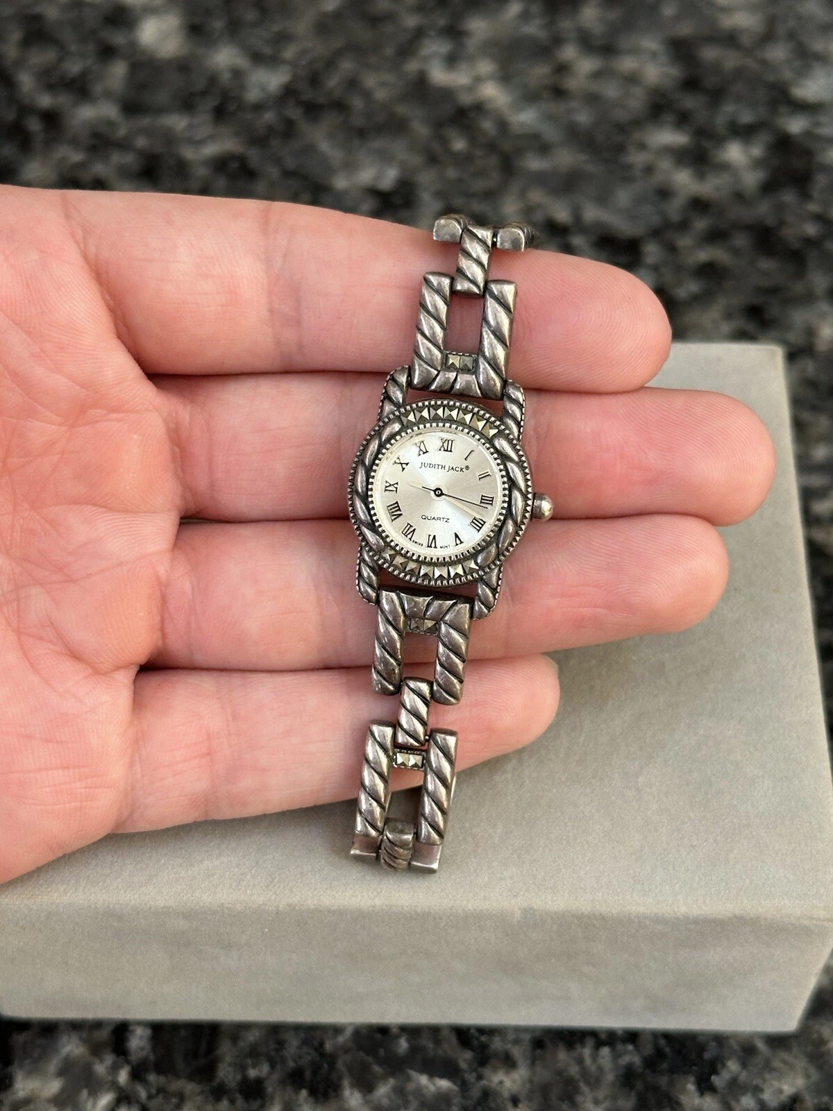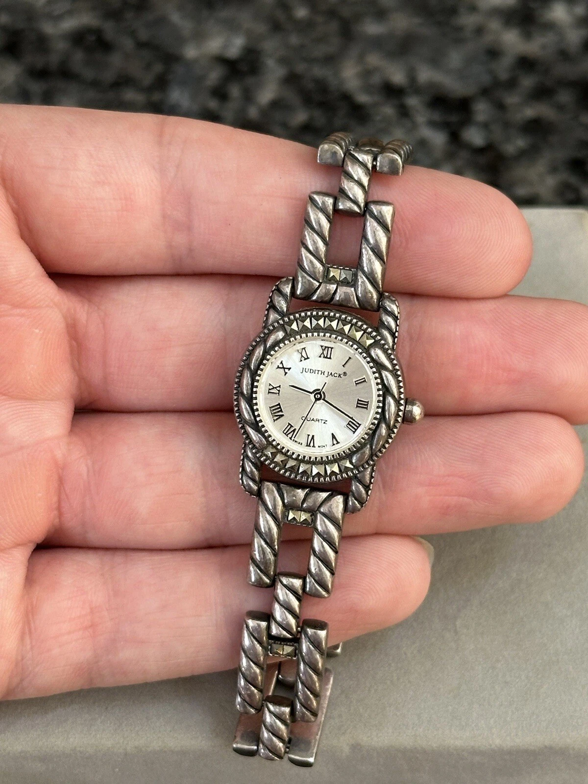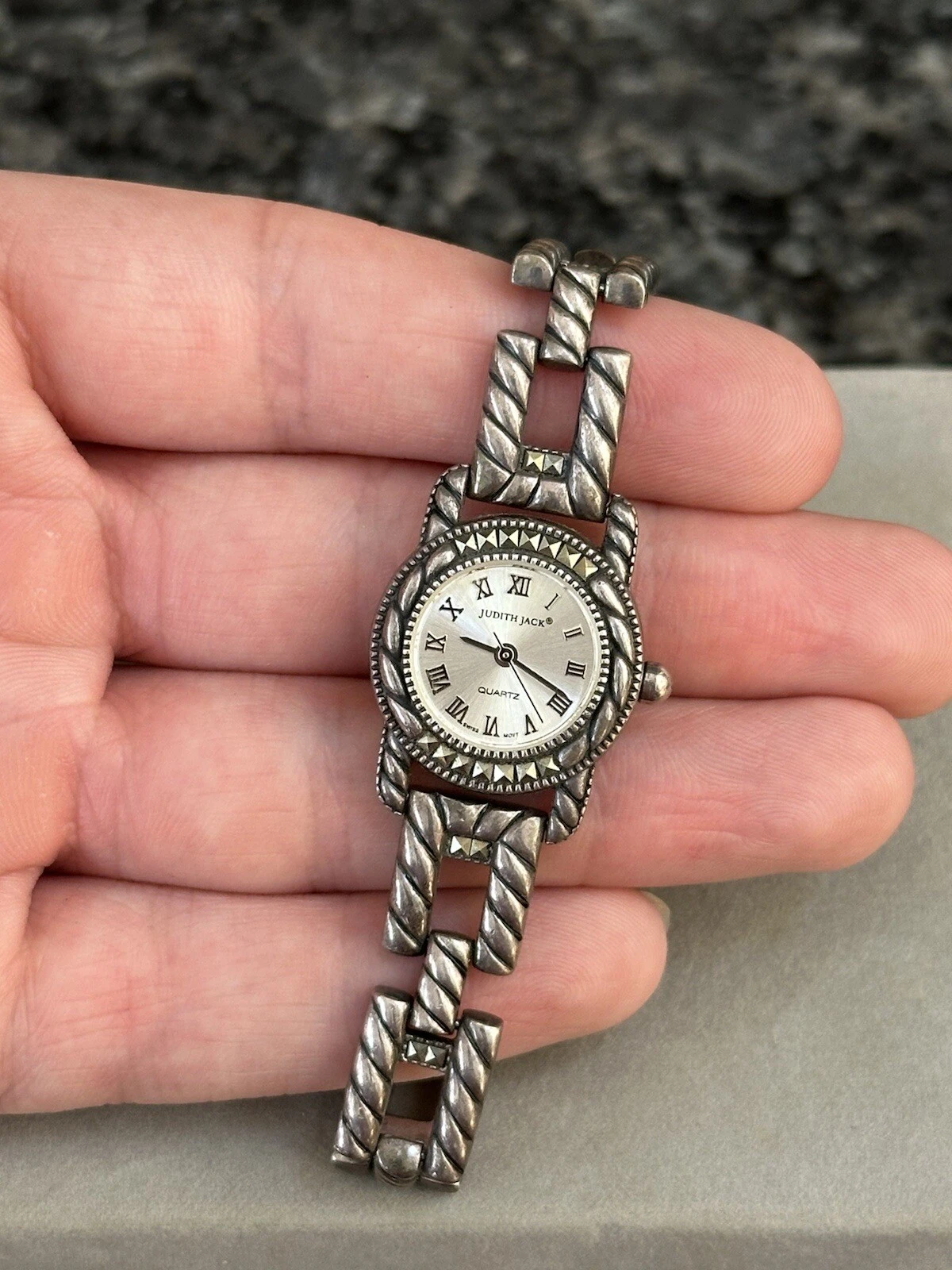 Designer Judith Jack Sterling Silver & Marcasite Link Quartz Ladies Watch -Works
