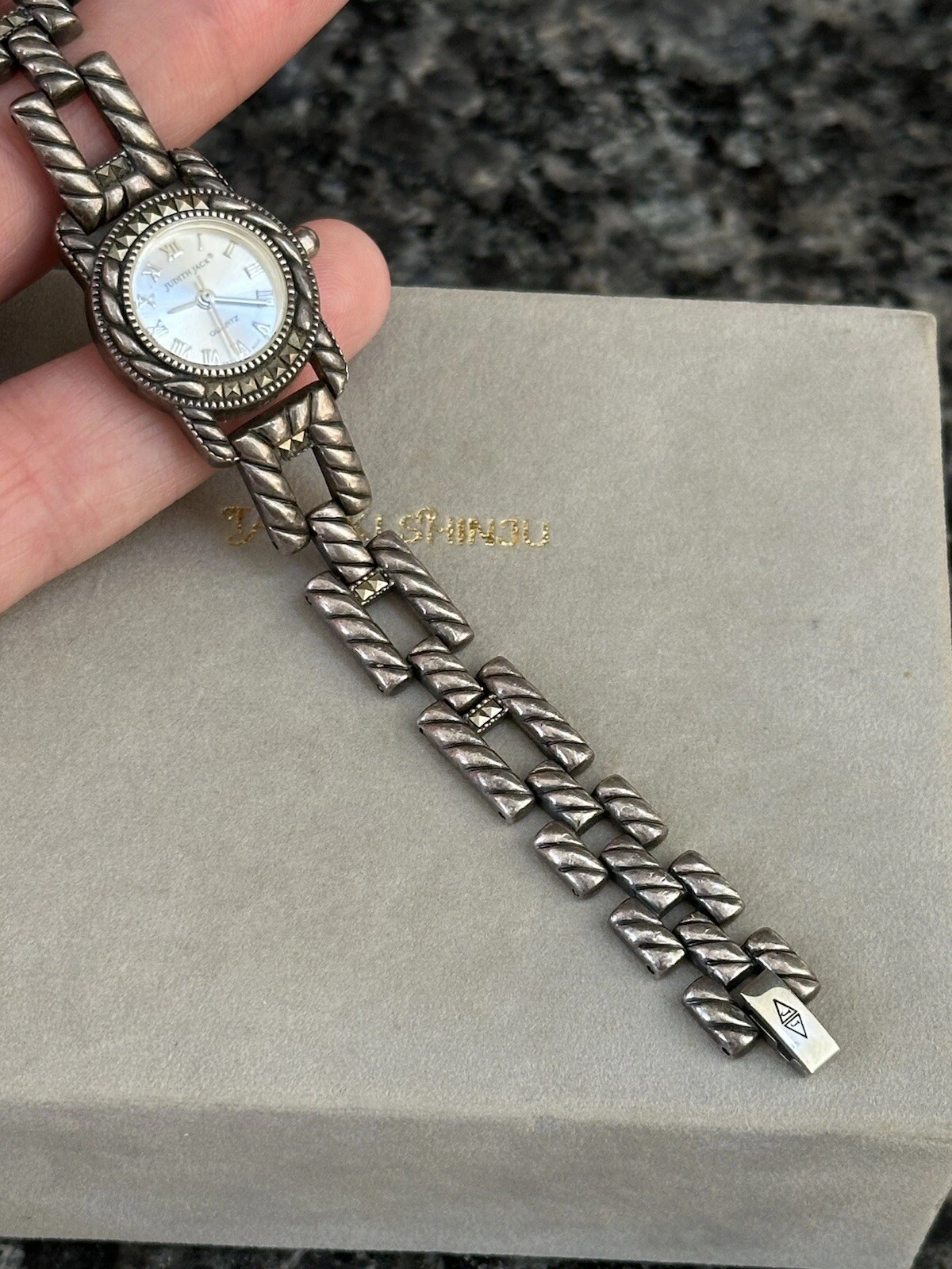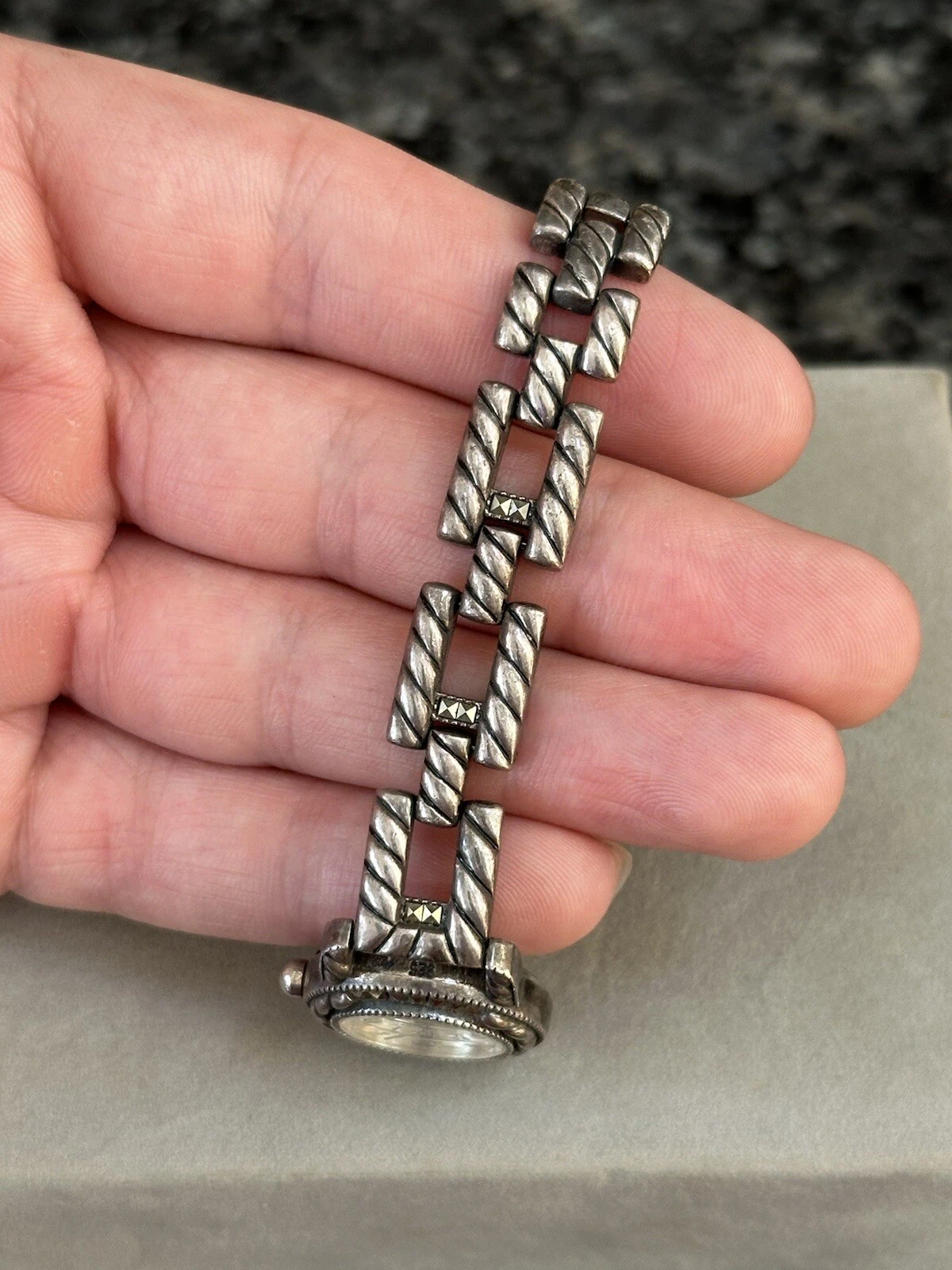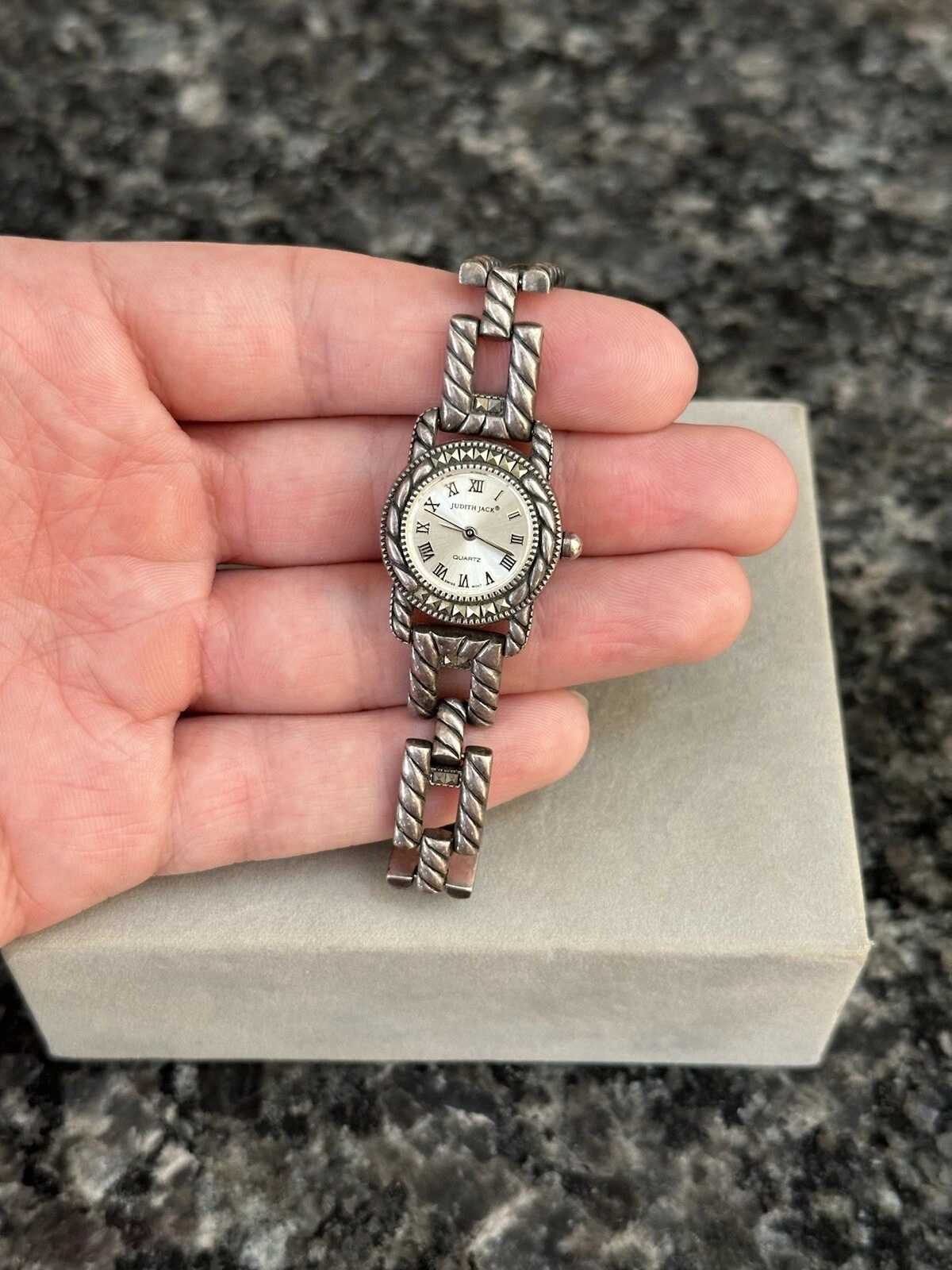 Designer Judith Jack Sterling Silver & Marcasite Link Quartz Ladies Watch -Works