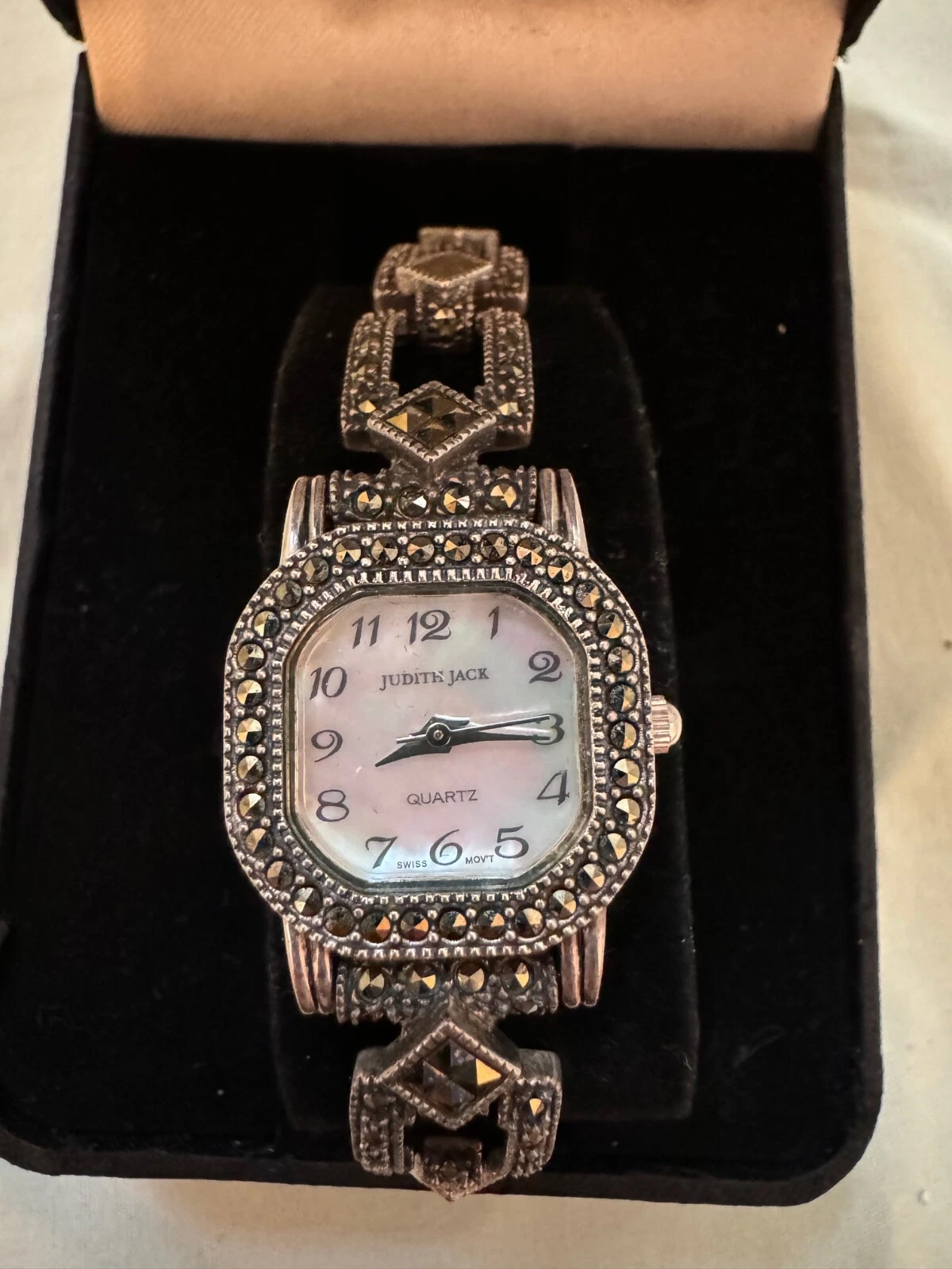 Judith Jack Sterling Silver Marcasite Women's Wrist Watch & Box