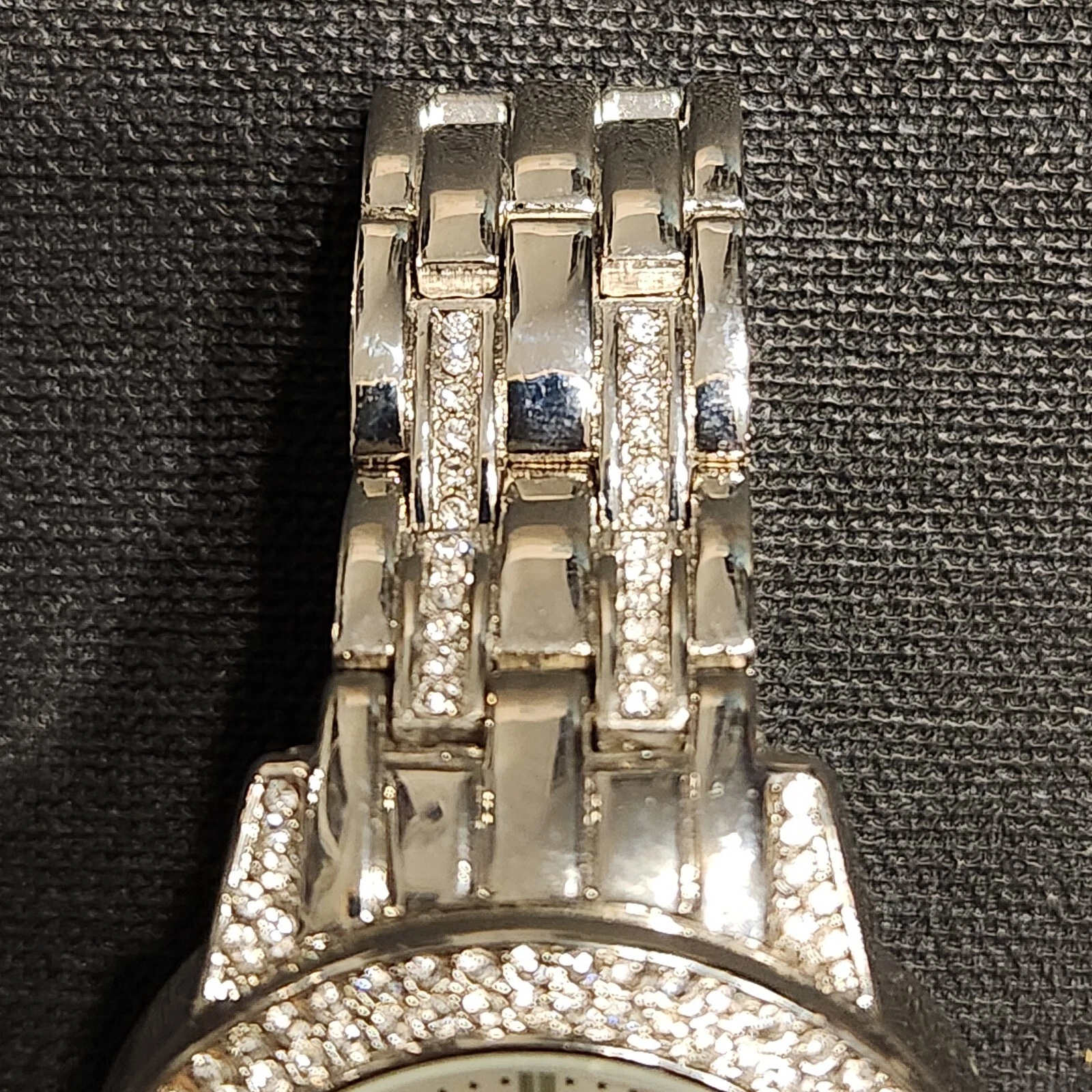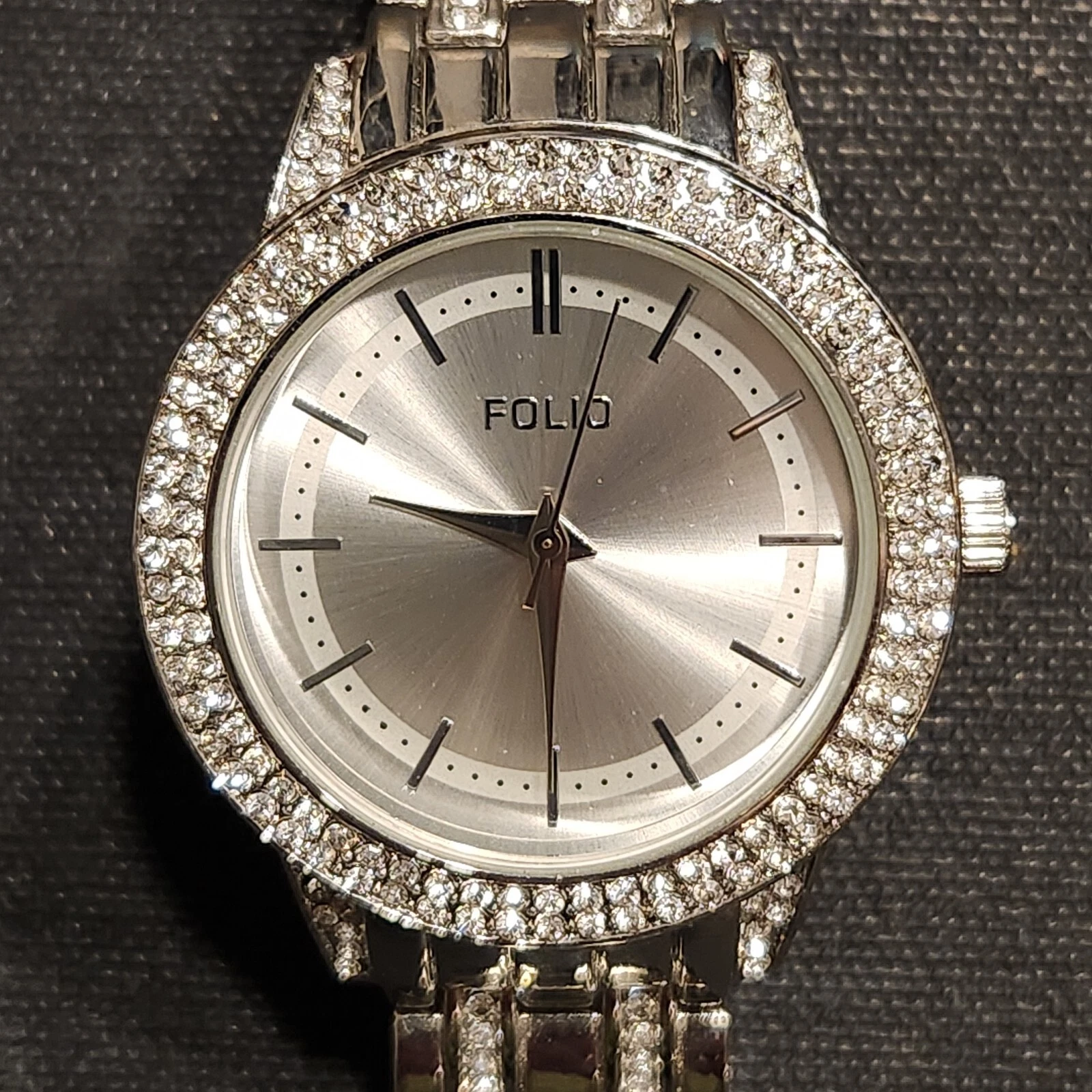 Men's Folio Silver Tone Watch With Crystals - Works