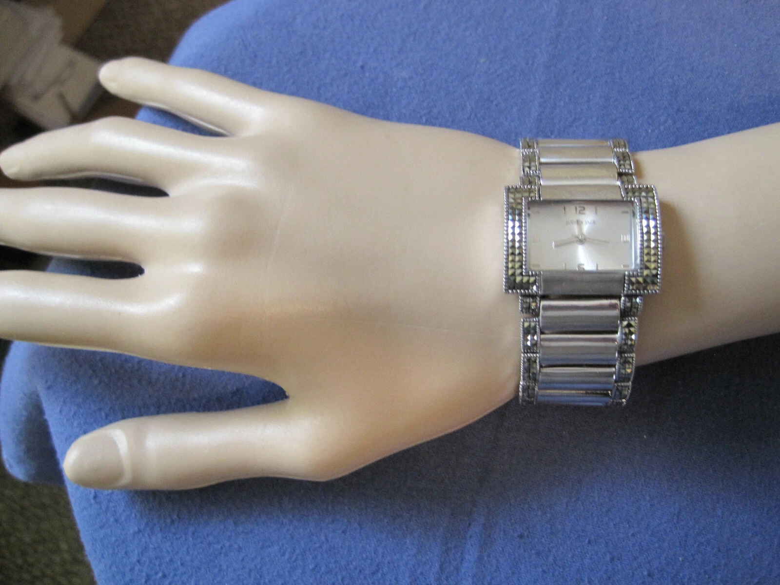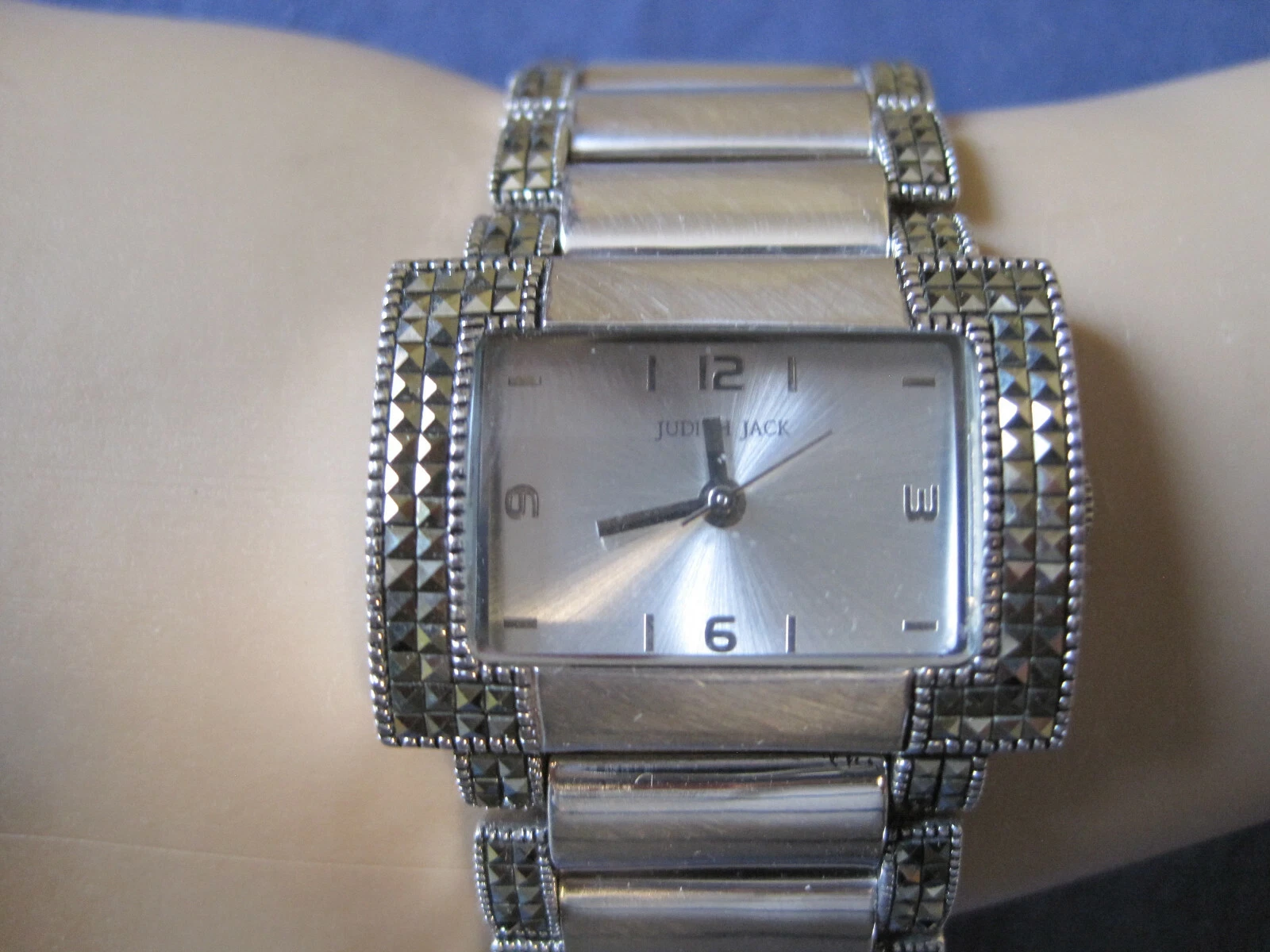H344 ladys sterling silver JUDITH JACK marcacite quartz watch