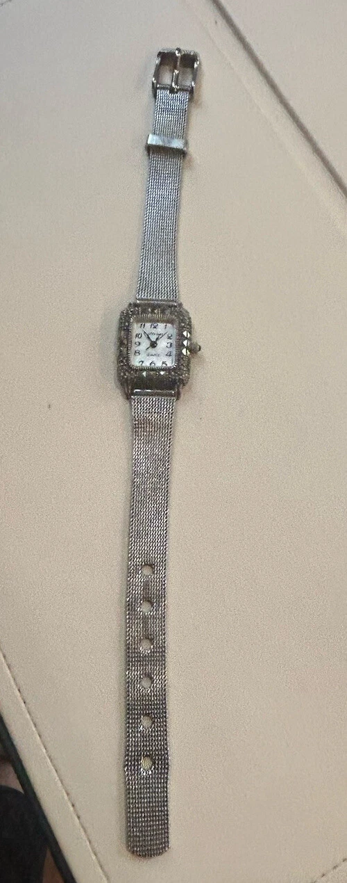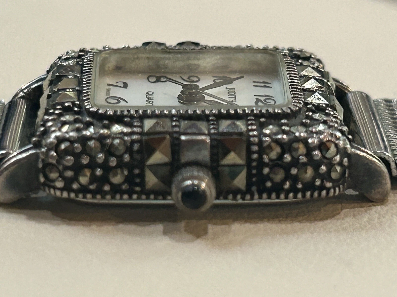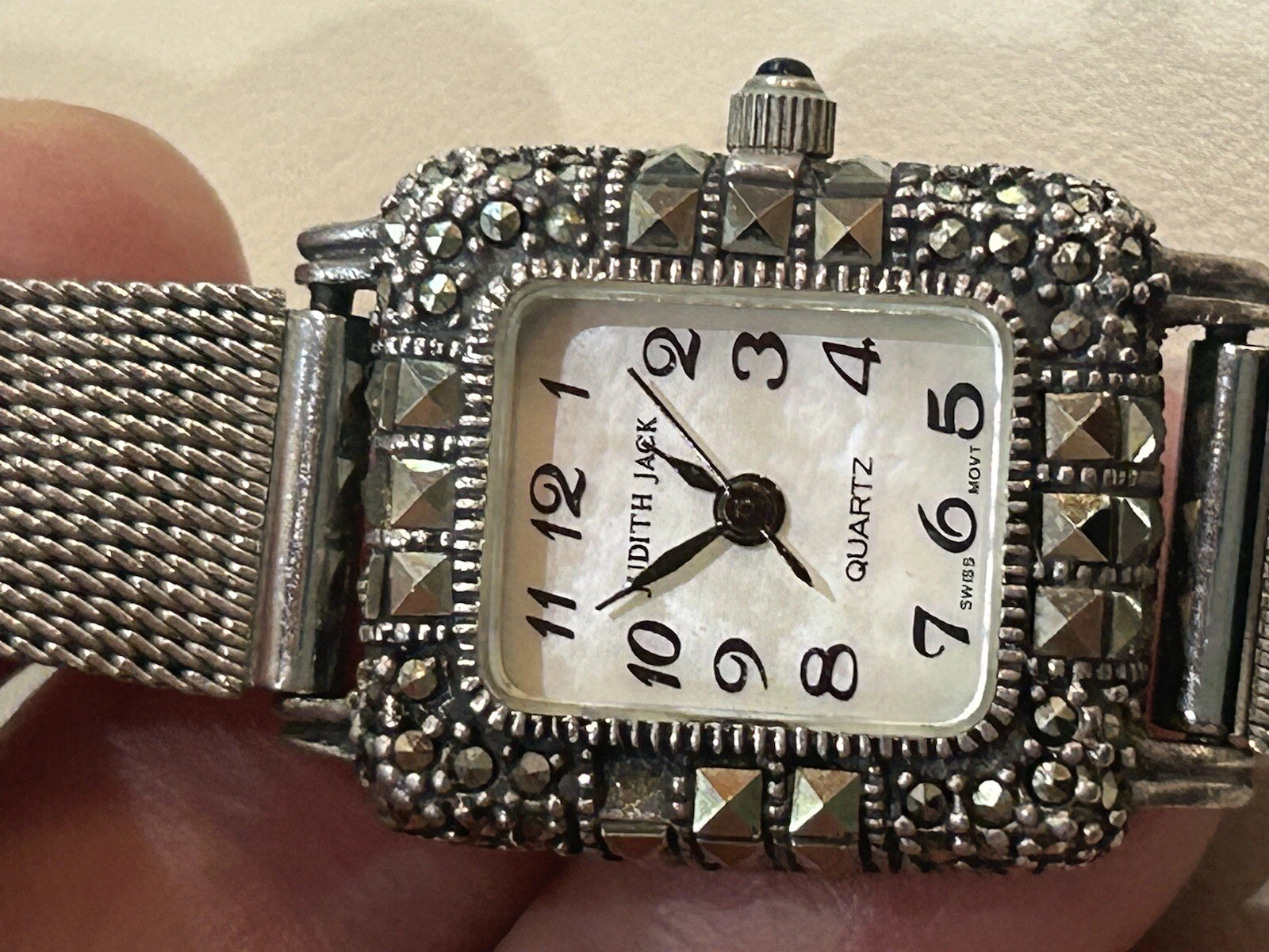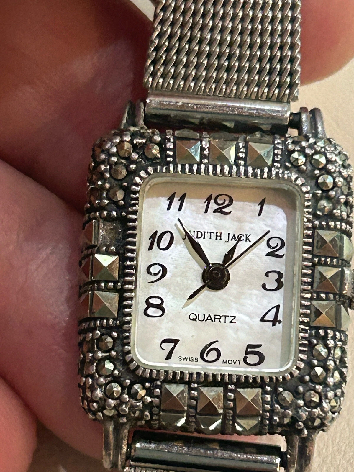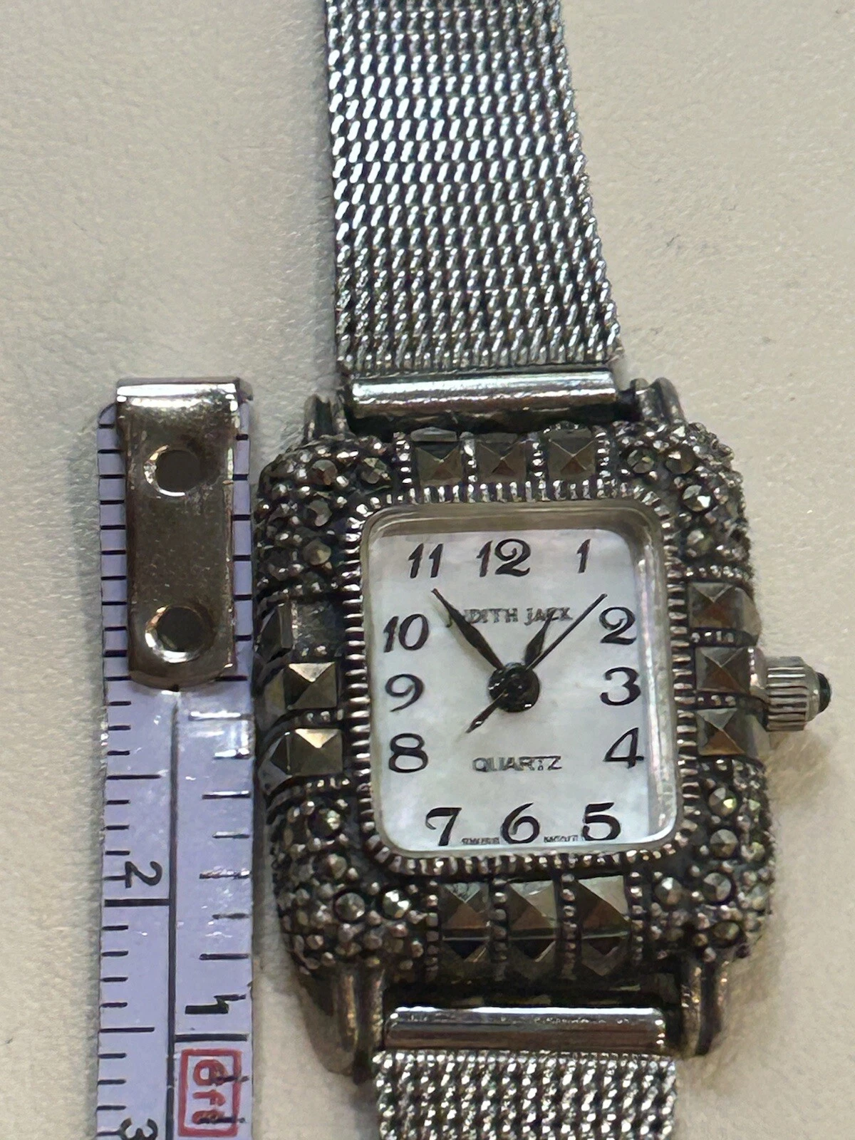 Judith Jack Art Deco Tankard Style Warch Sterling Case & Stainless Mesh Band