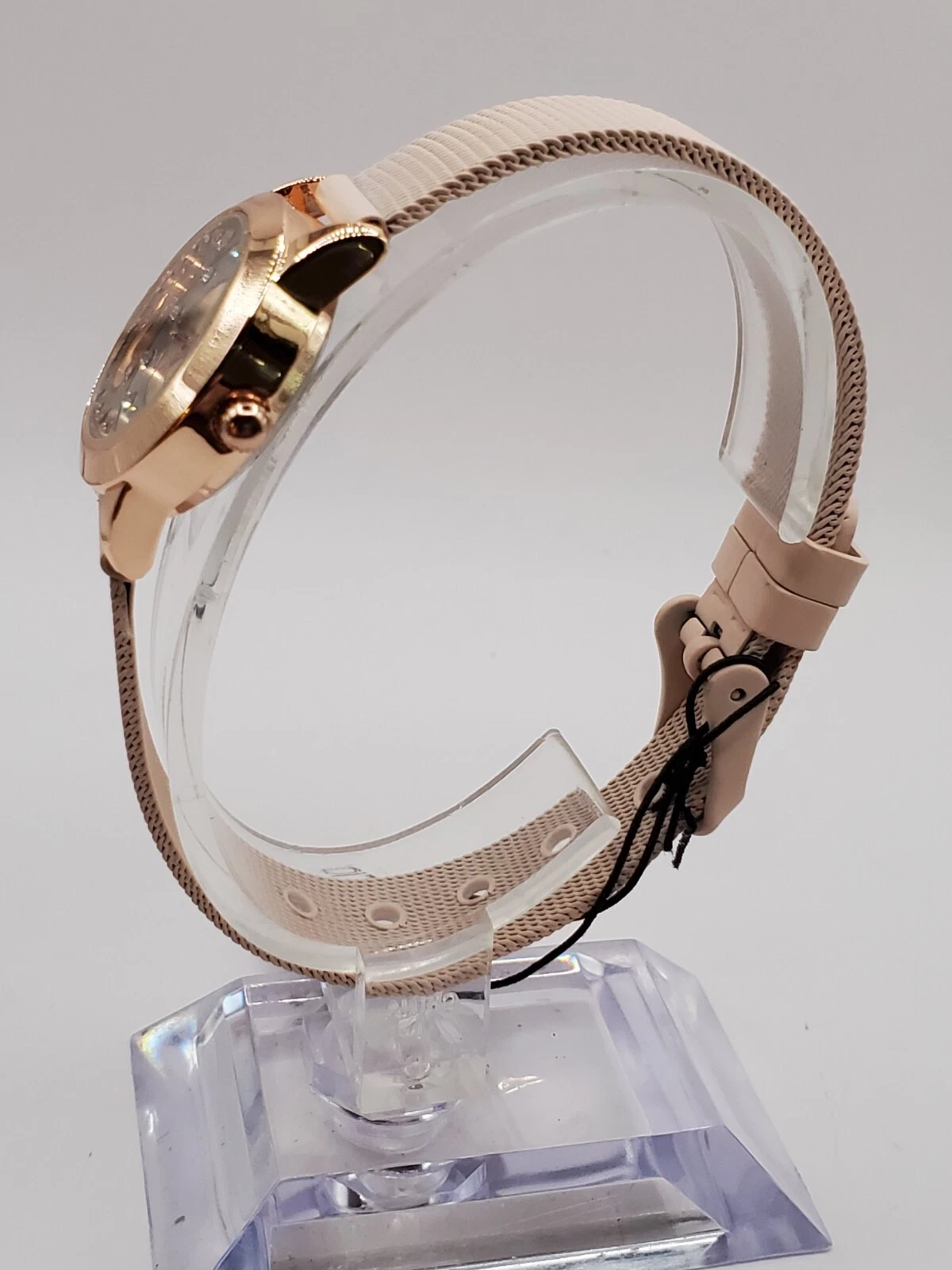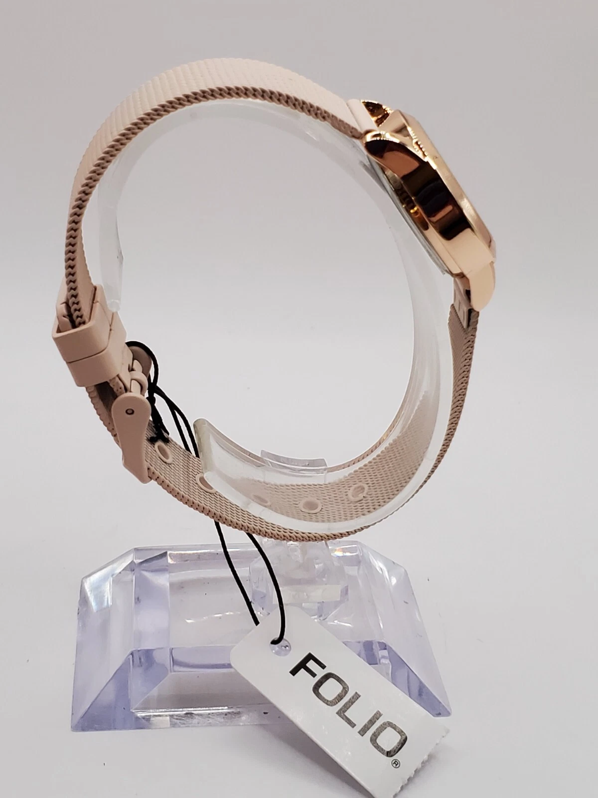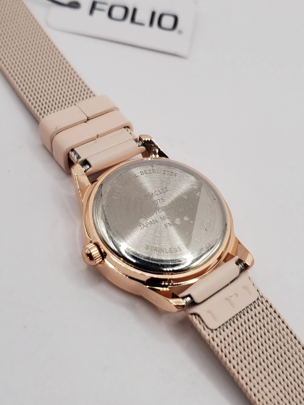 Folio Ladies Quartz Watch 24mm Round Gold Tone Pink Mesh Band