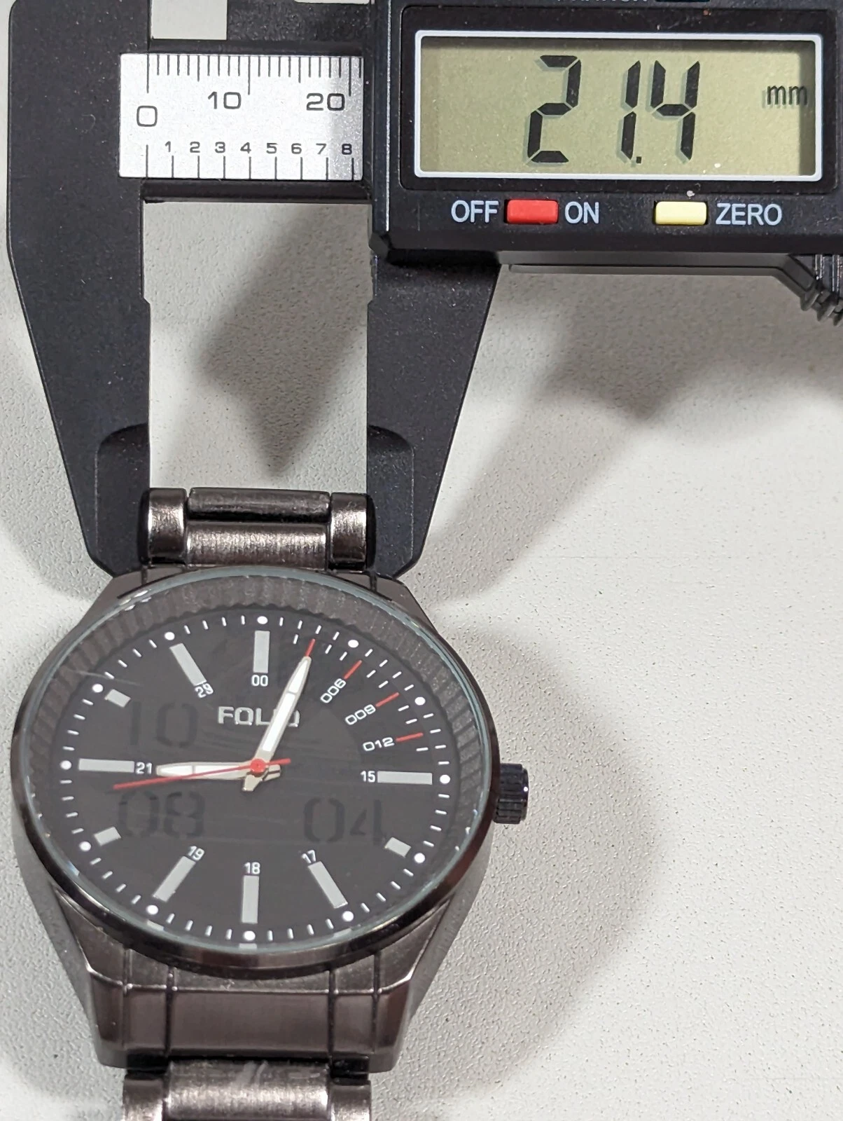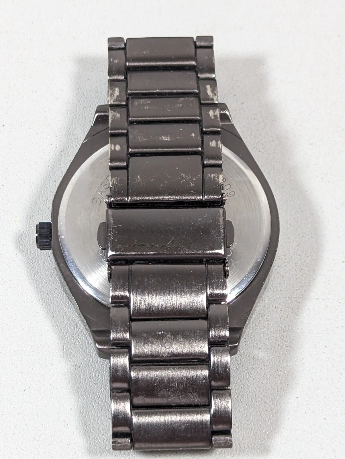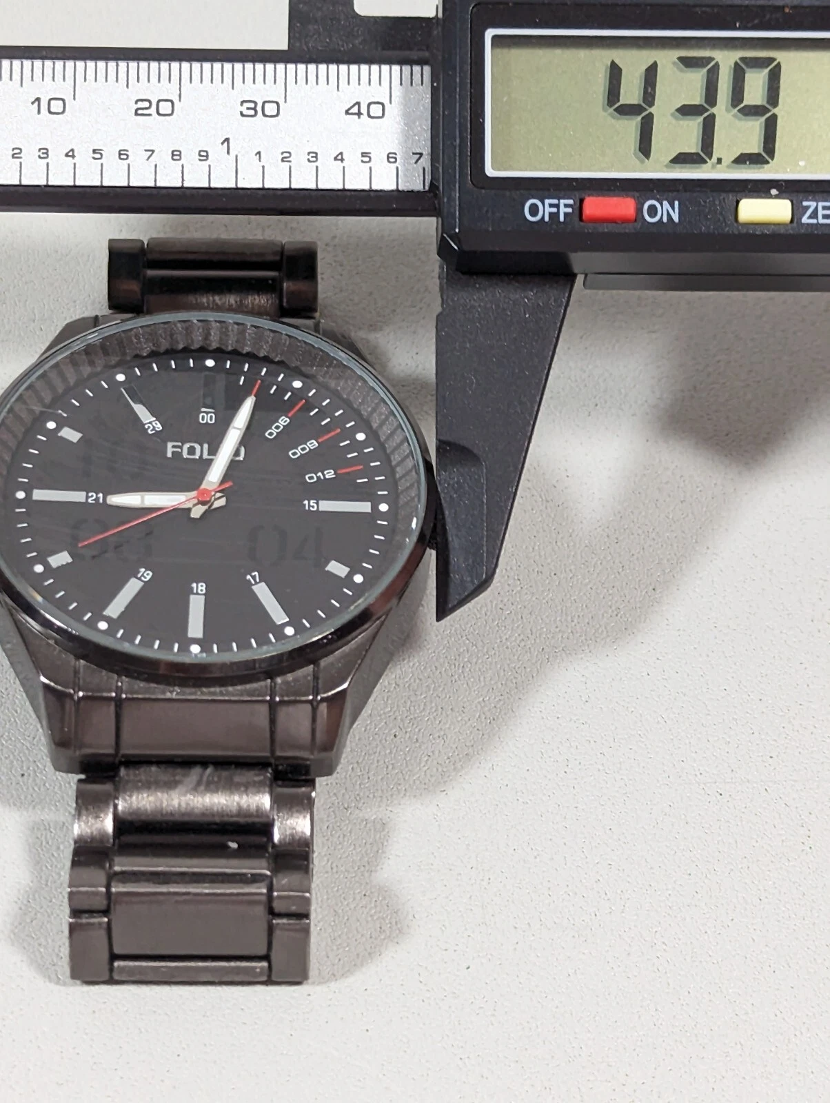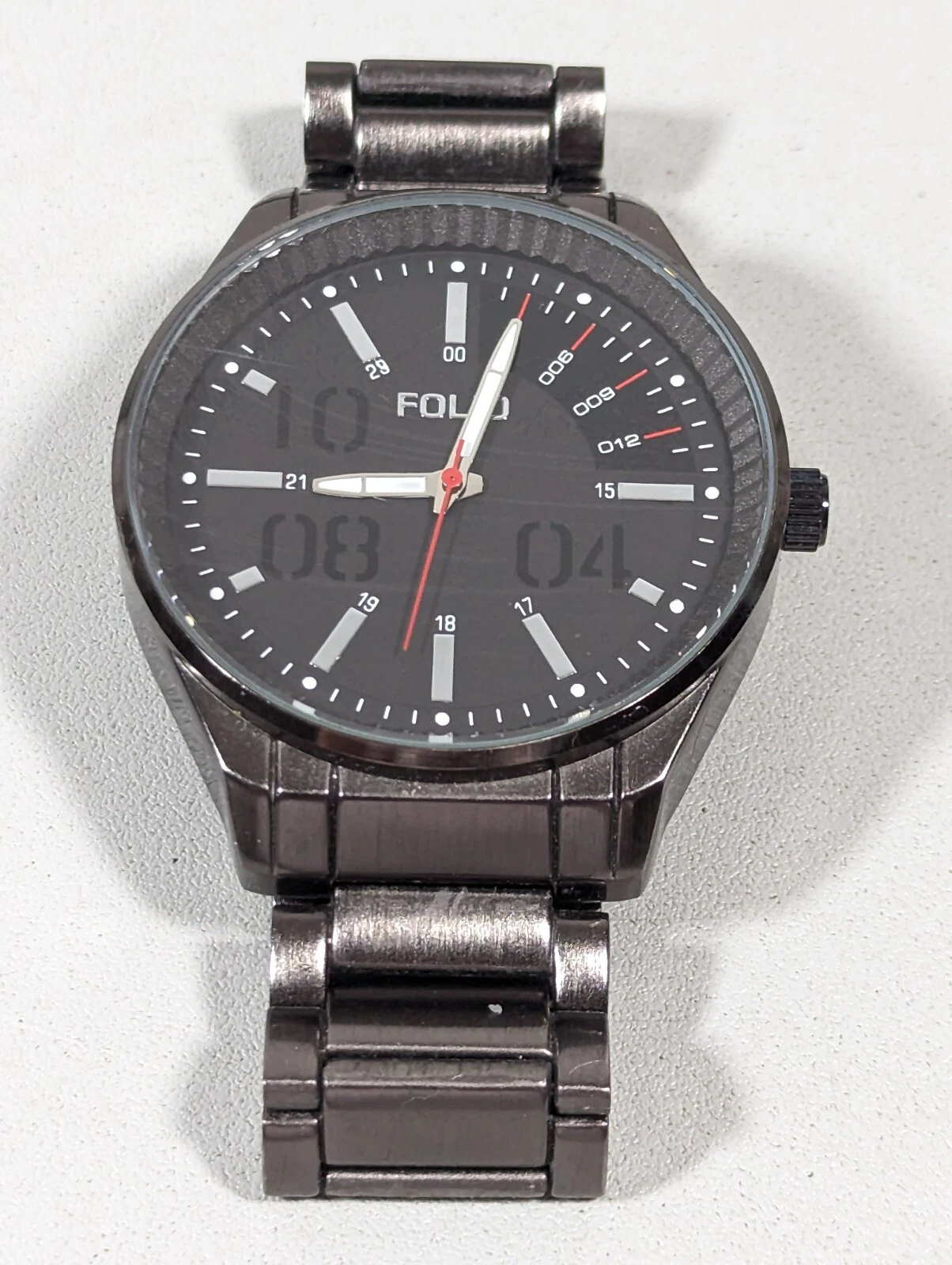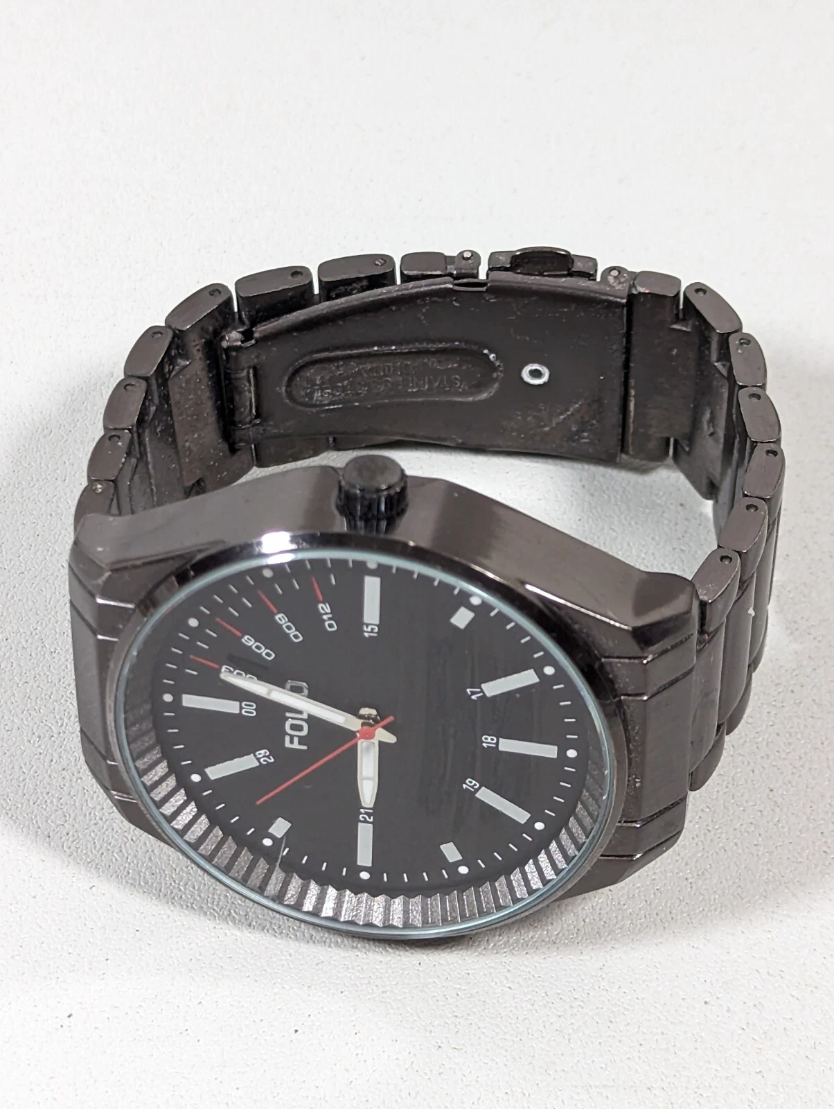 Folio Mens Black Dial Round 44 mm Case Gunmetal Gray Stainless St Band Watch 6in