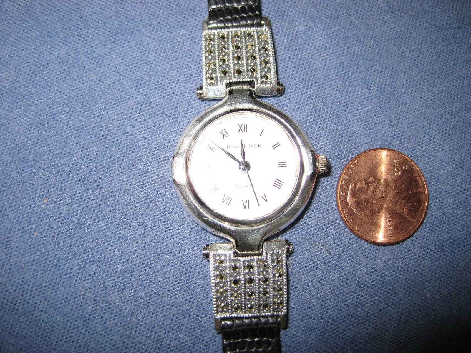 #293 ladys sterling silver JUDITH JACK marcasite quartz watch