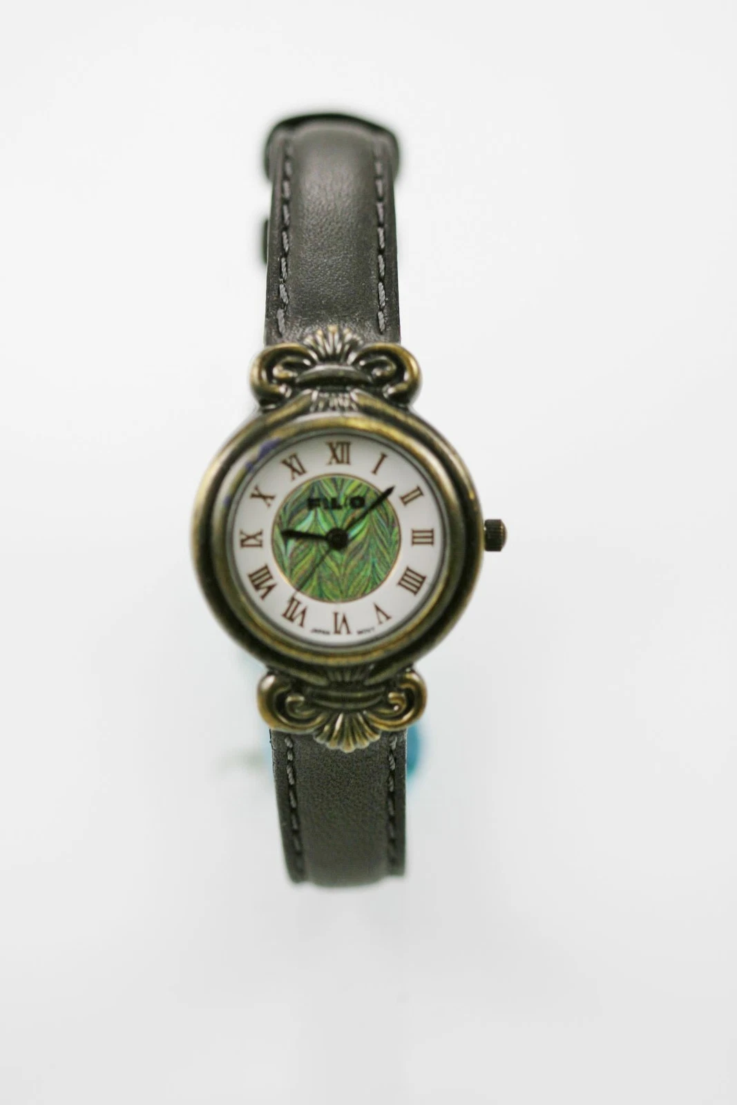 Folio Watch Womens Stainless Gold Black Leather Water Res Colorful White Quartz