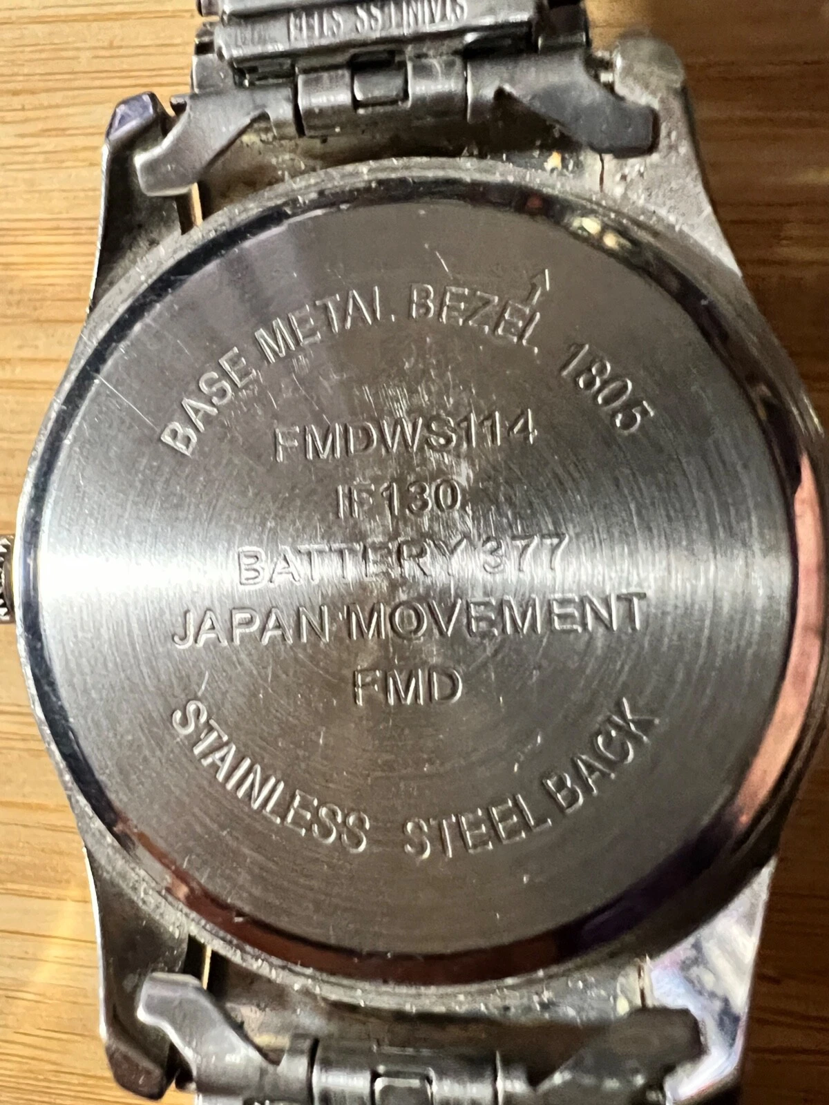 FMD Men's Watch Silver Tone WS114 1805 Stretch Band NEW BATTERY