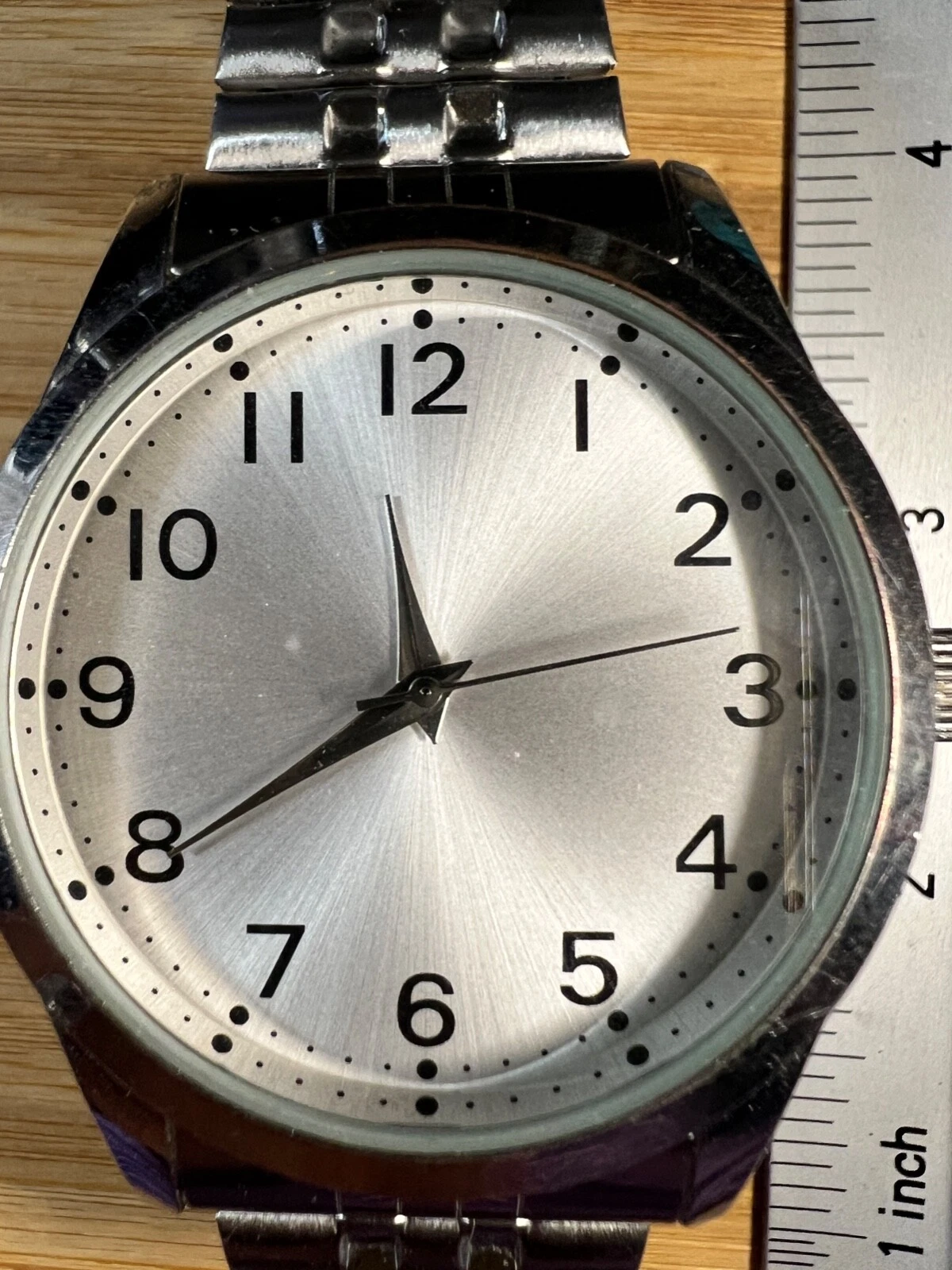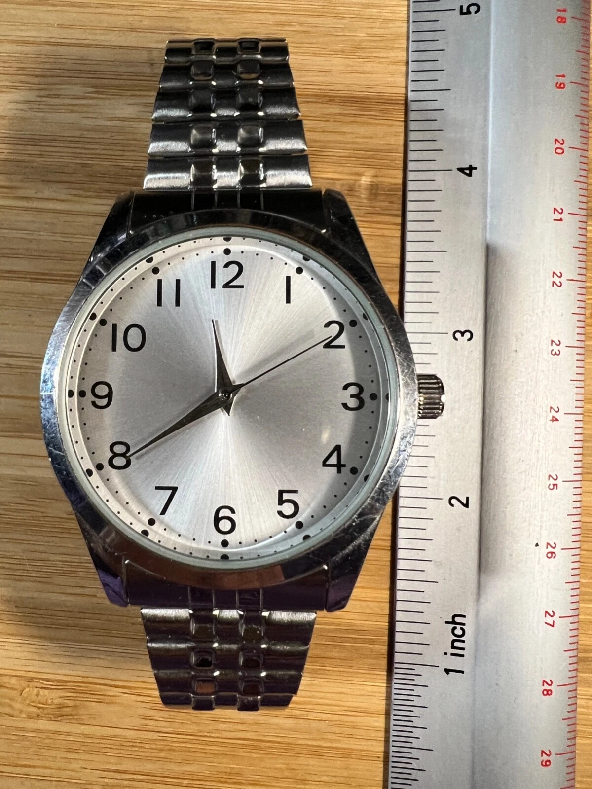 FMD Men's Watch Silver Tone WS114 1805  Stretch Band  NEW BATTERY