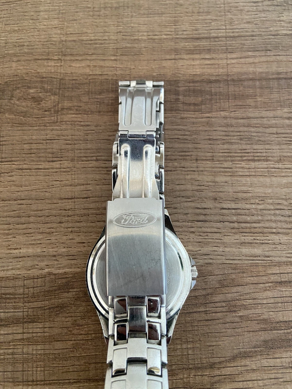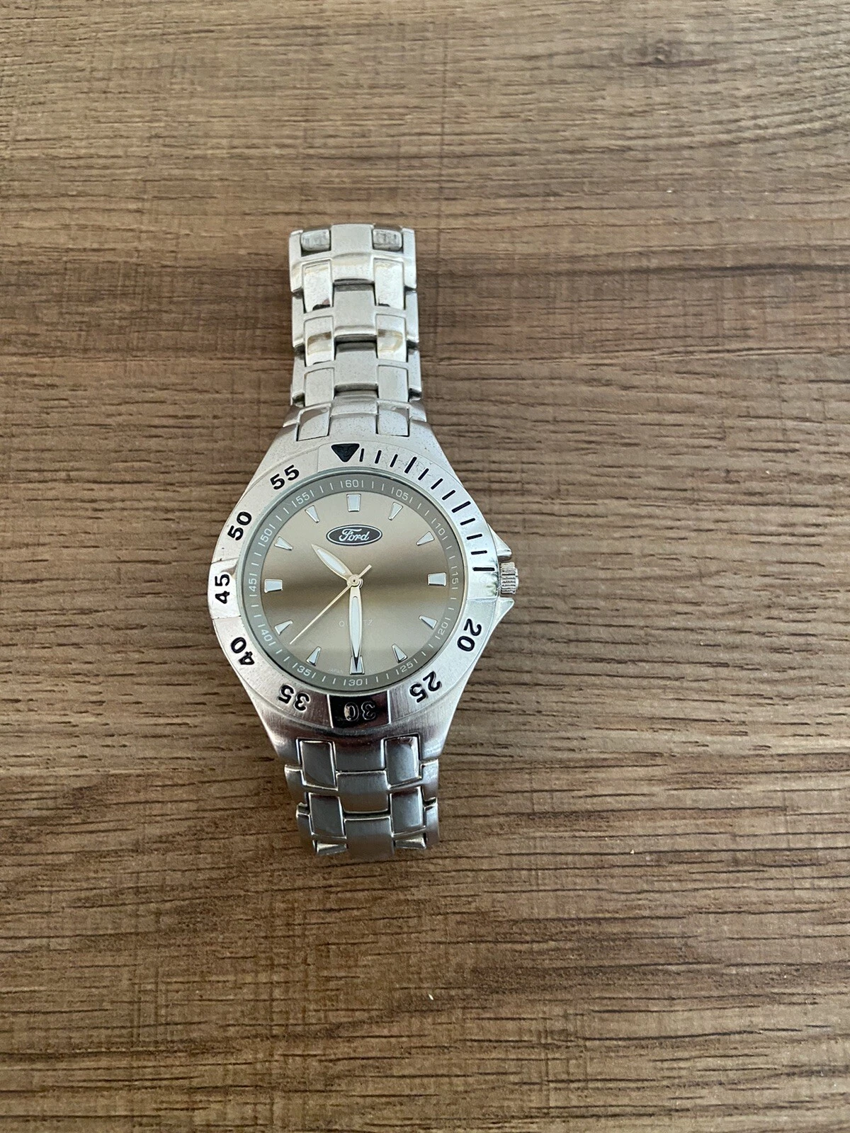 VTG Ford Quartz Watch Unisex Silver Bezel Analog New Battery 7.5" Works Great