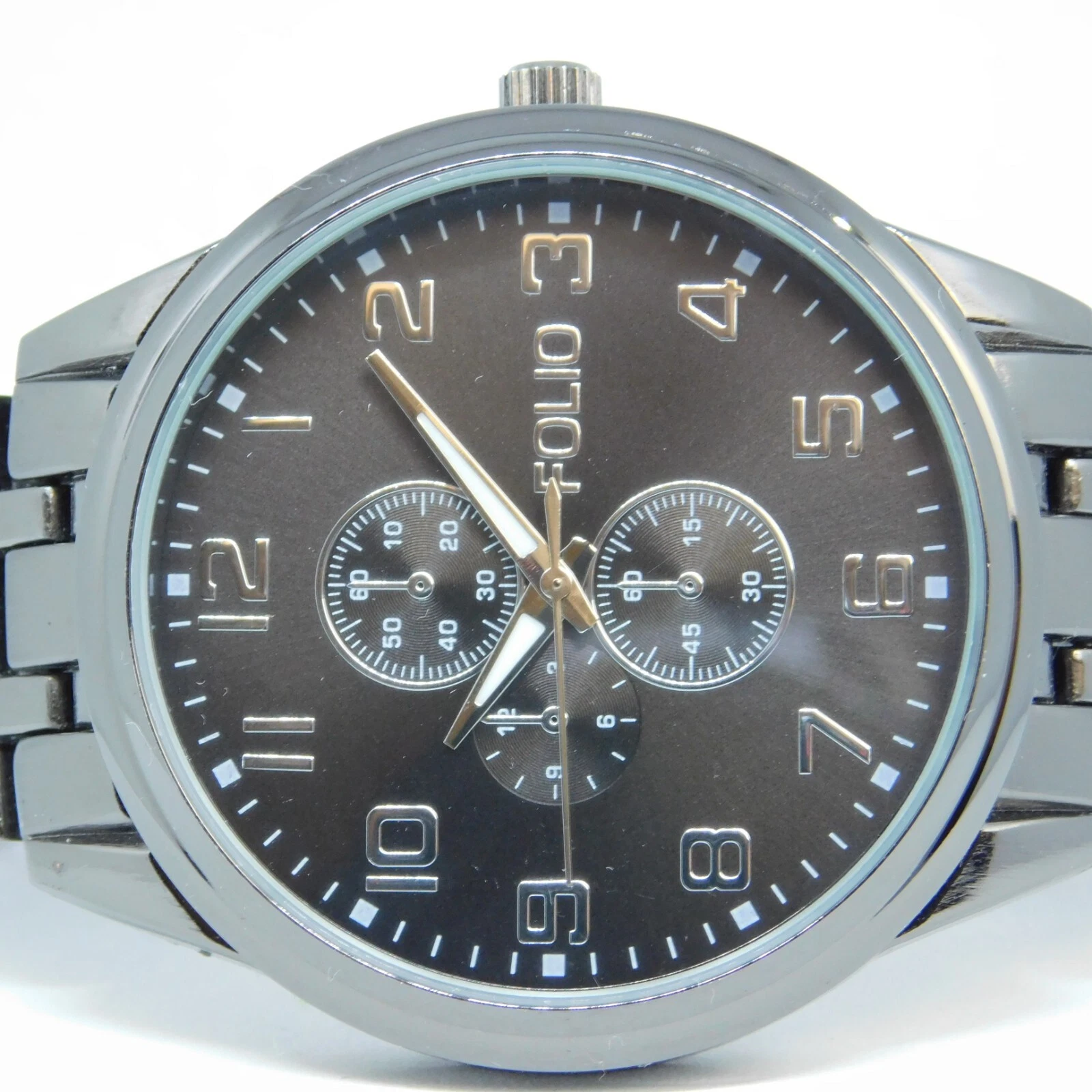 FOLIO FMDMSG070 Black Tone Quartz Analog Men's Watch Sz. 7" Battery