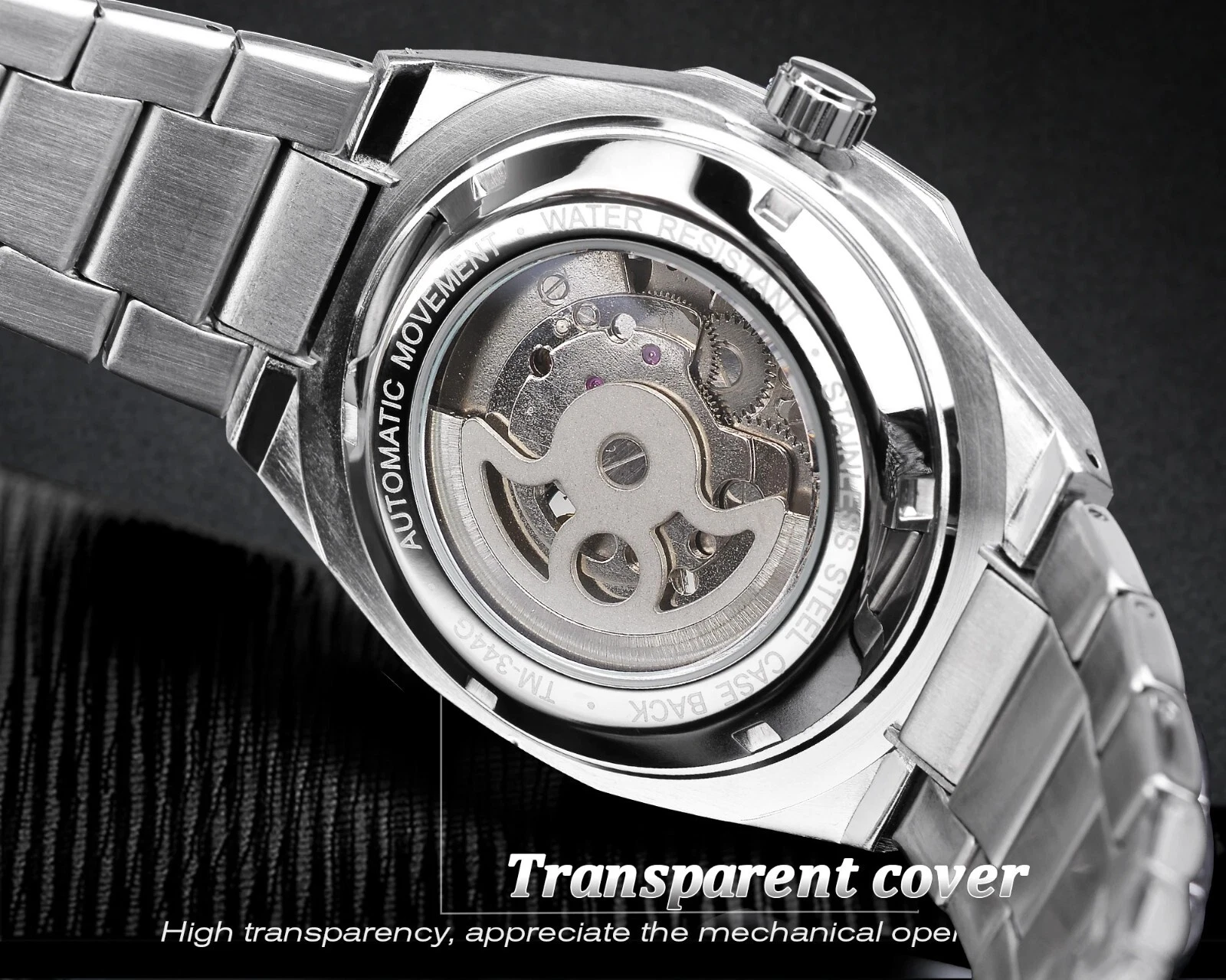 Forsining Casual Automatic Watch 3D Diamond AP Skeleton Hollow Mens Wristwatches