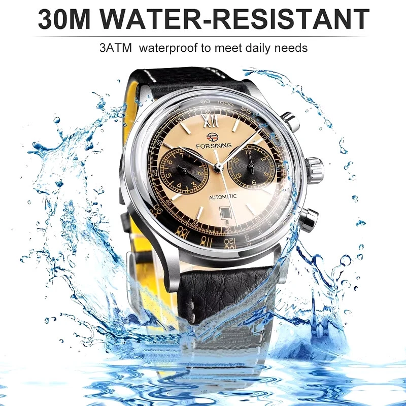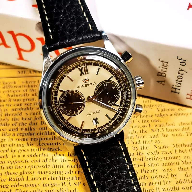 FORSINING Automatic Watch For Men Leather Strap Chronograph Mens Watch