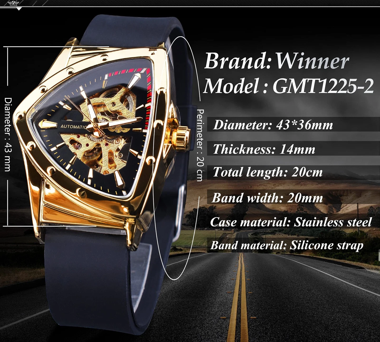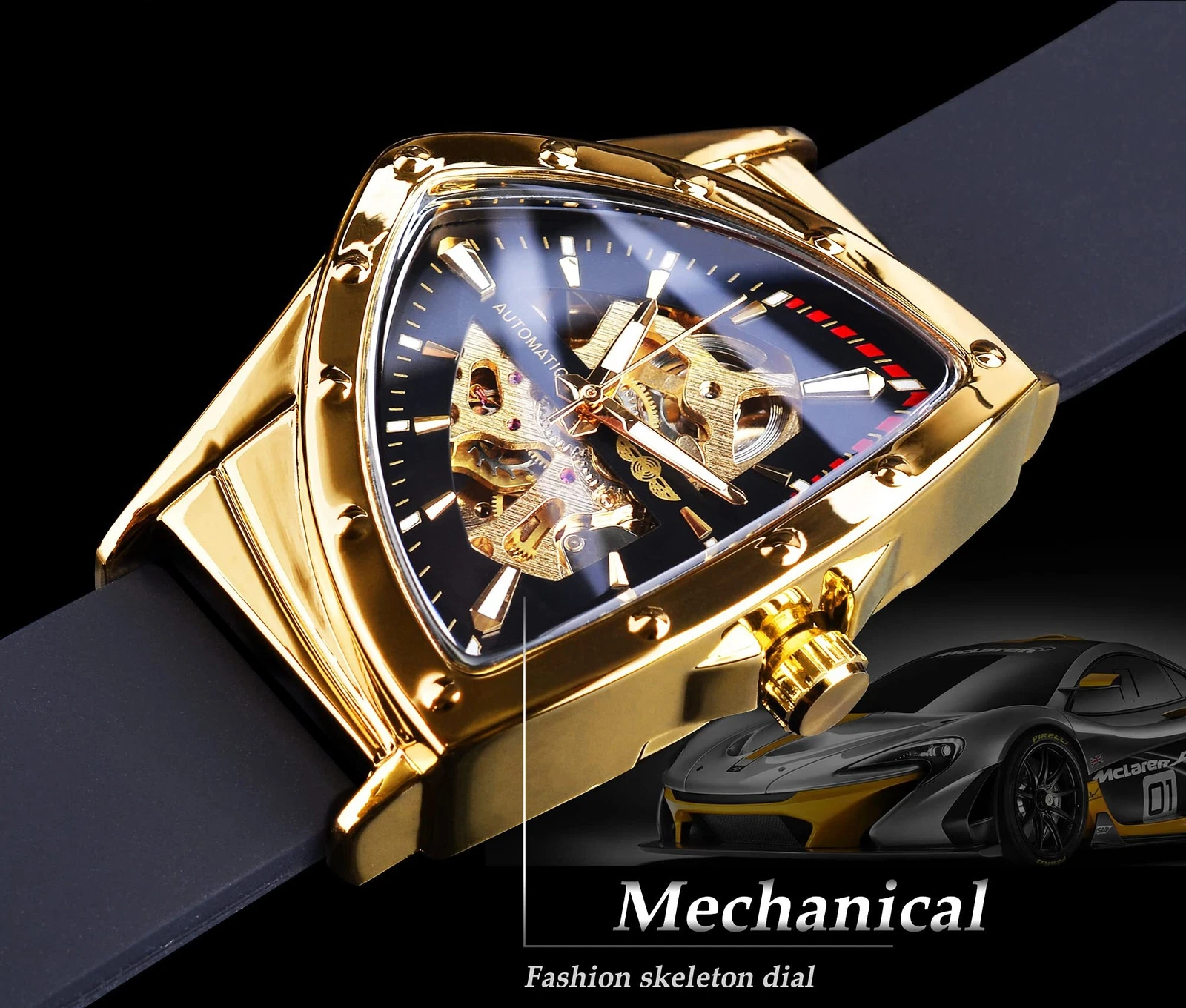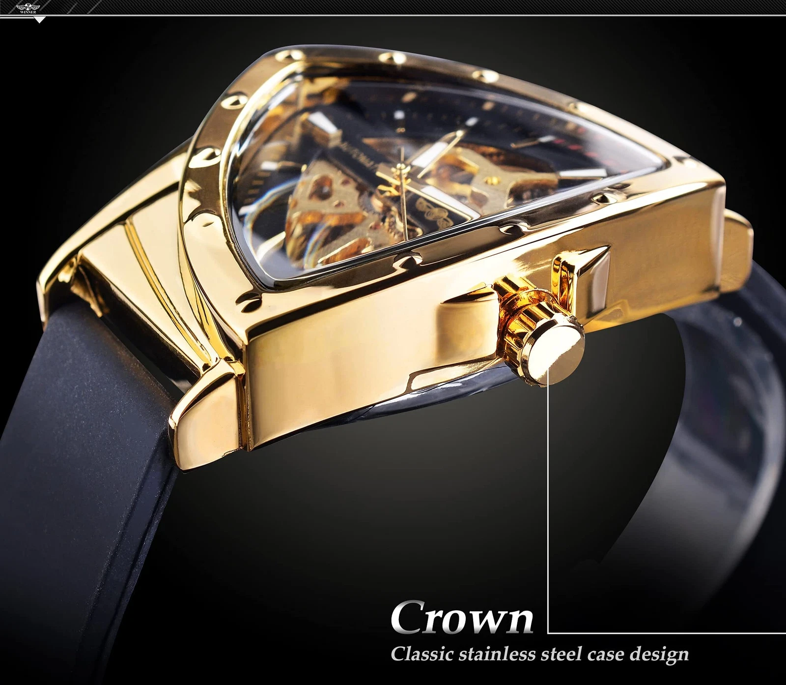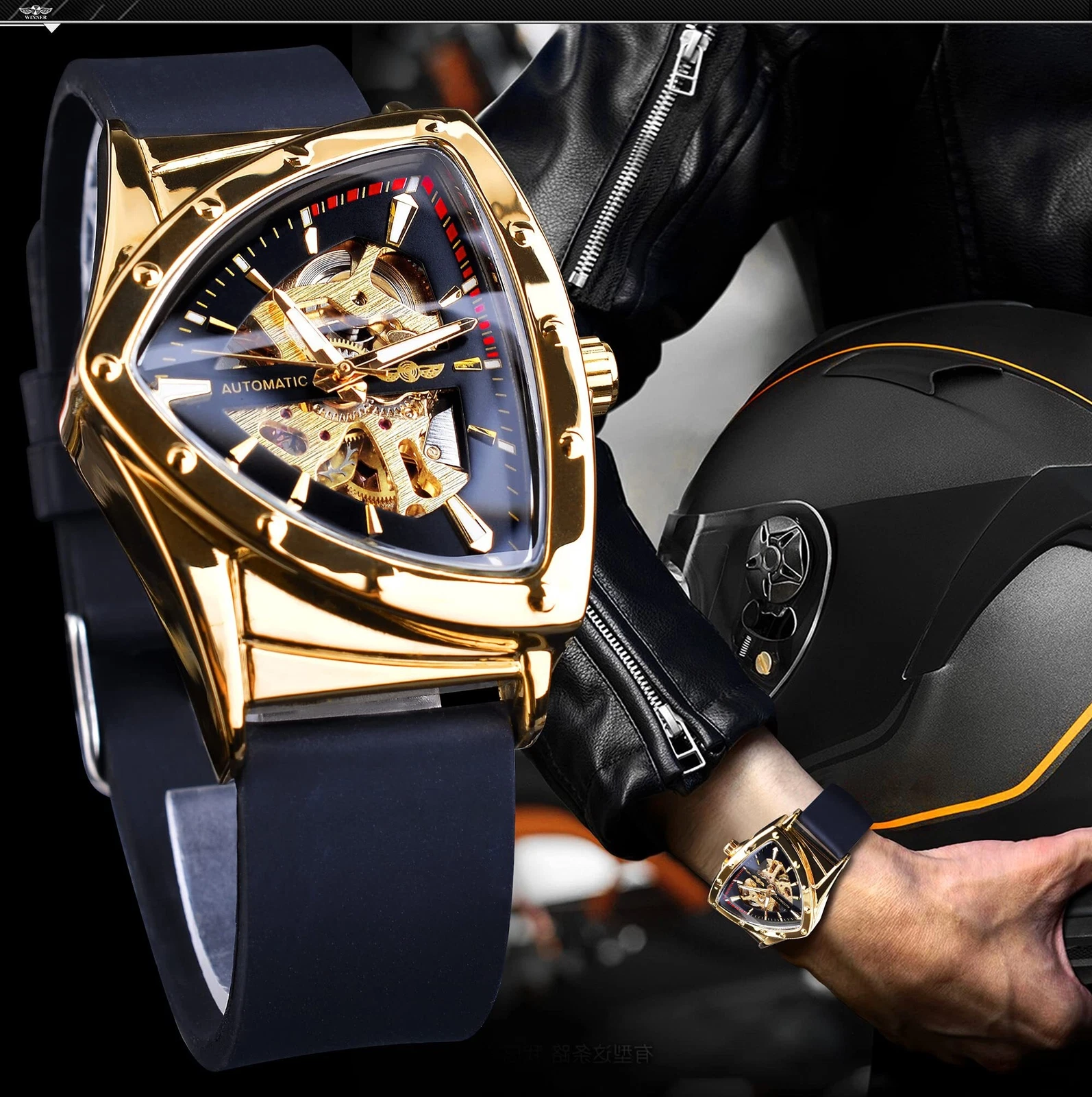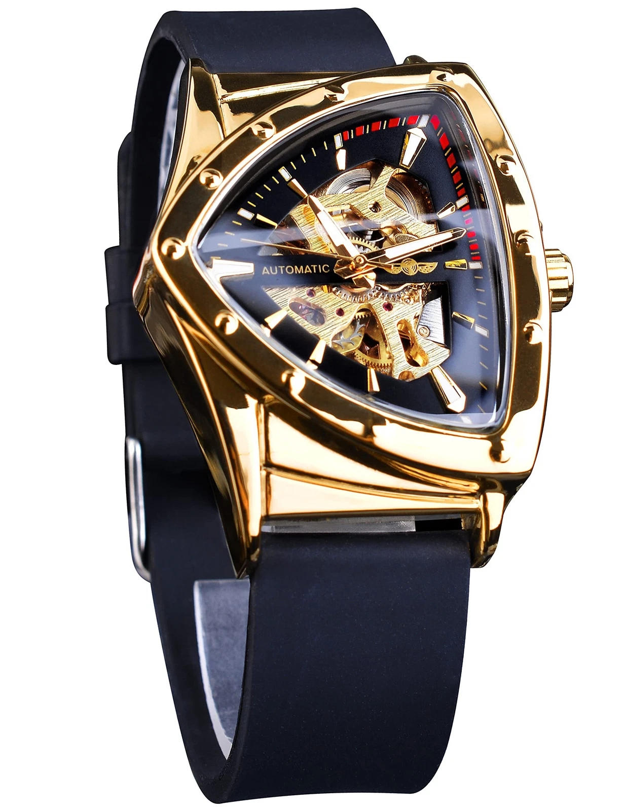 FORSINING Mens Winner Transparent Man Mechanical Watches Skeleton Dial Triangle