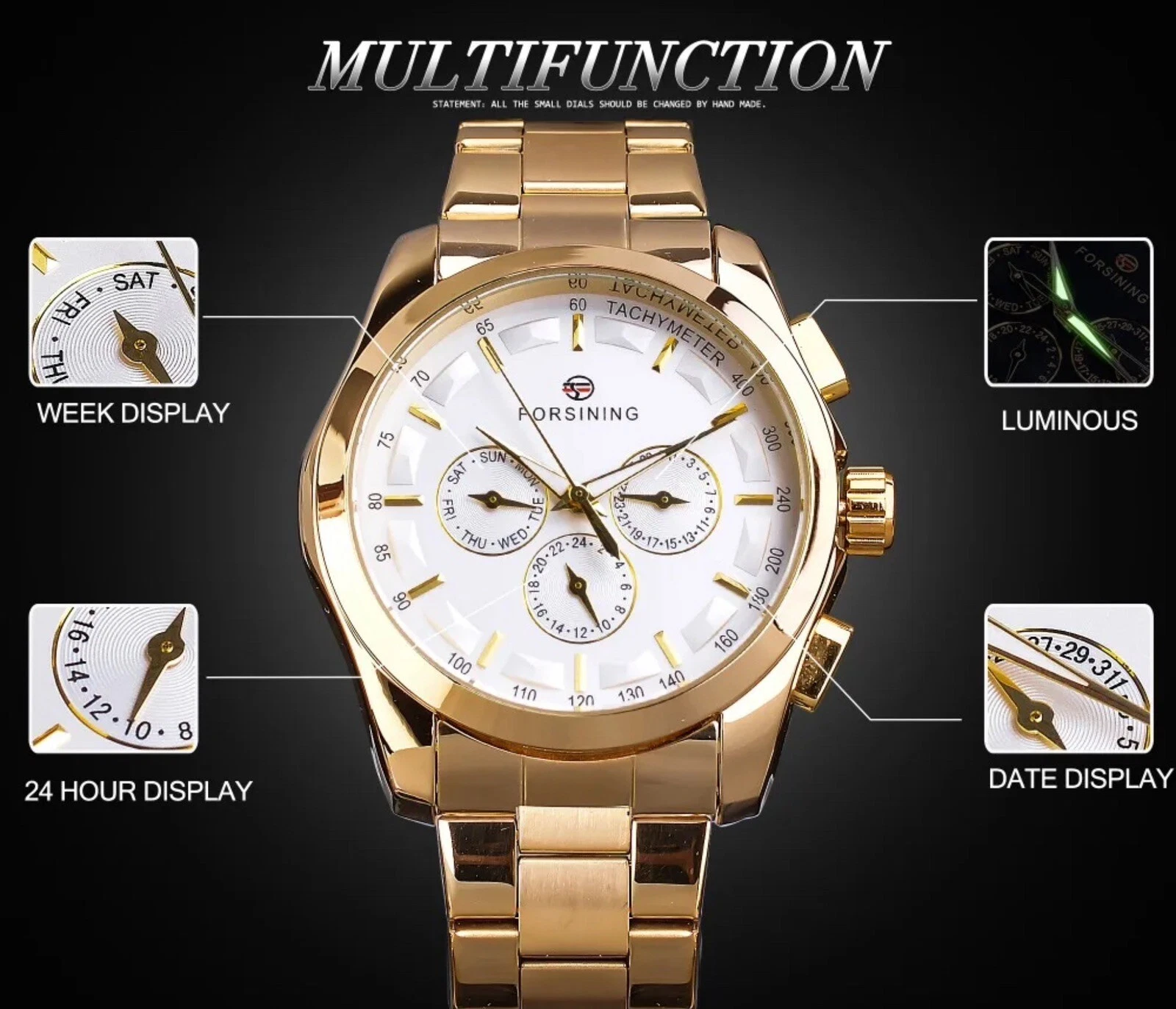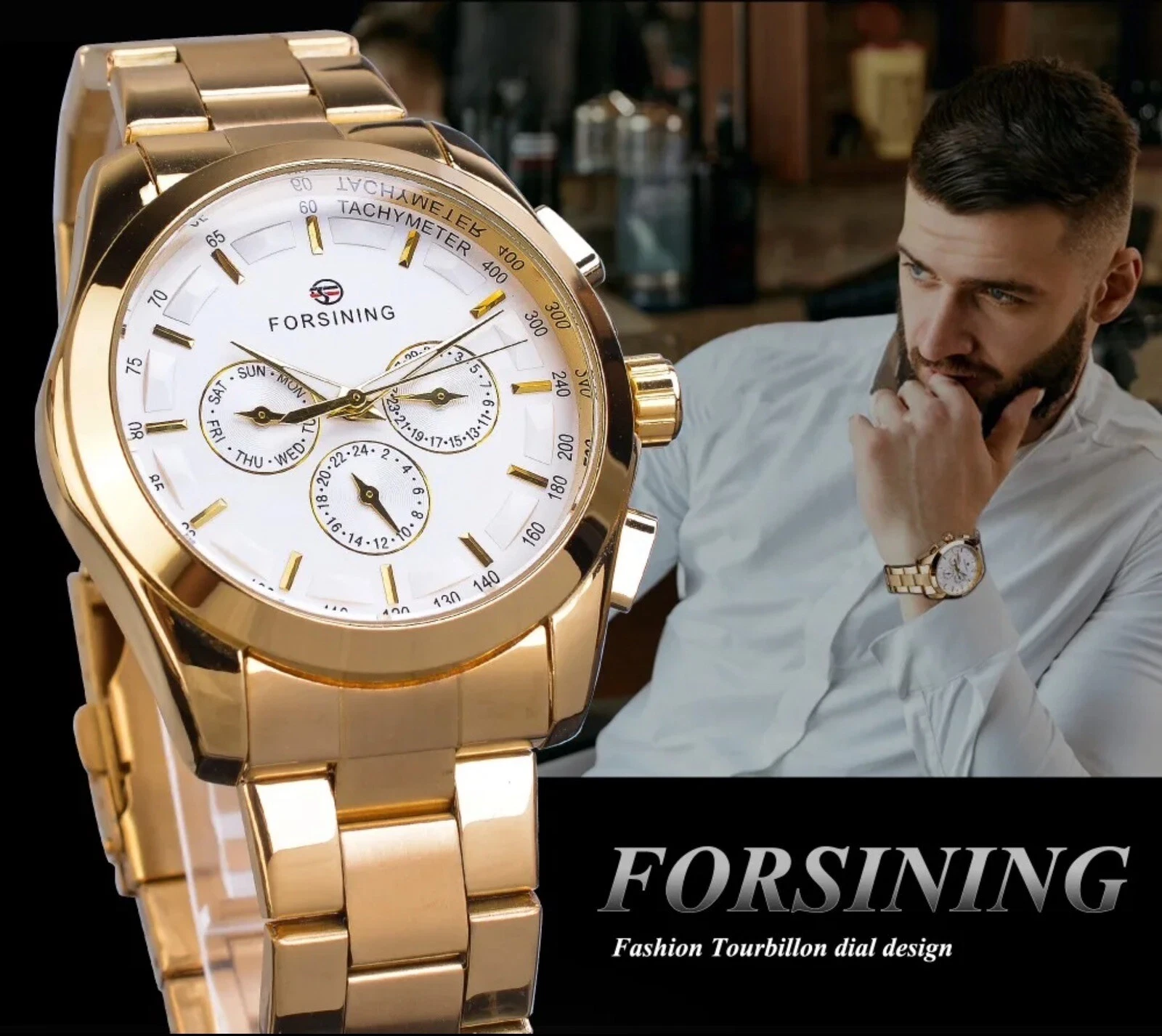 Forsining Mens Luxury Watch 3 Working Sub-dials Day And Date. Great Gift Idea.