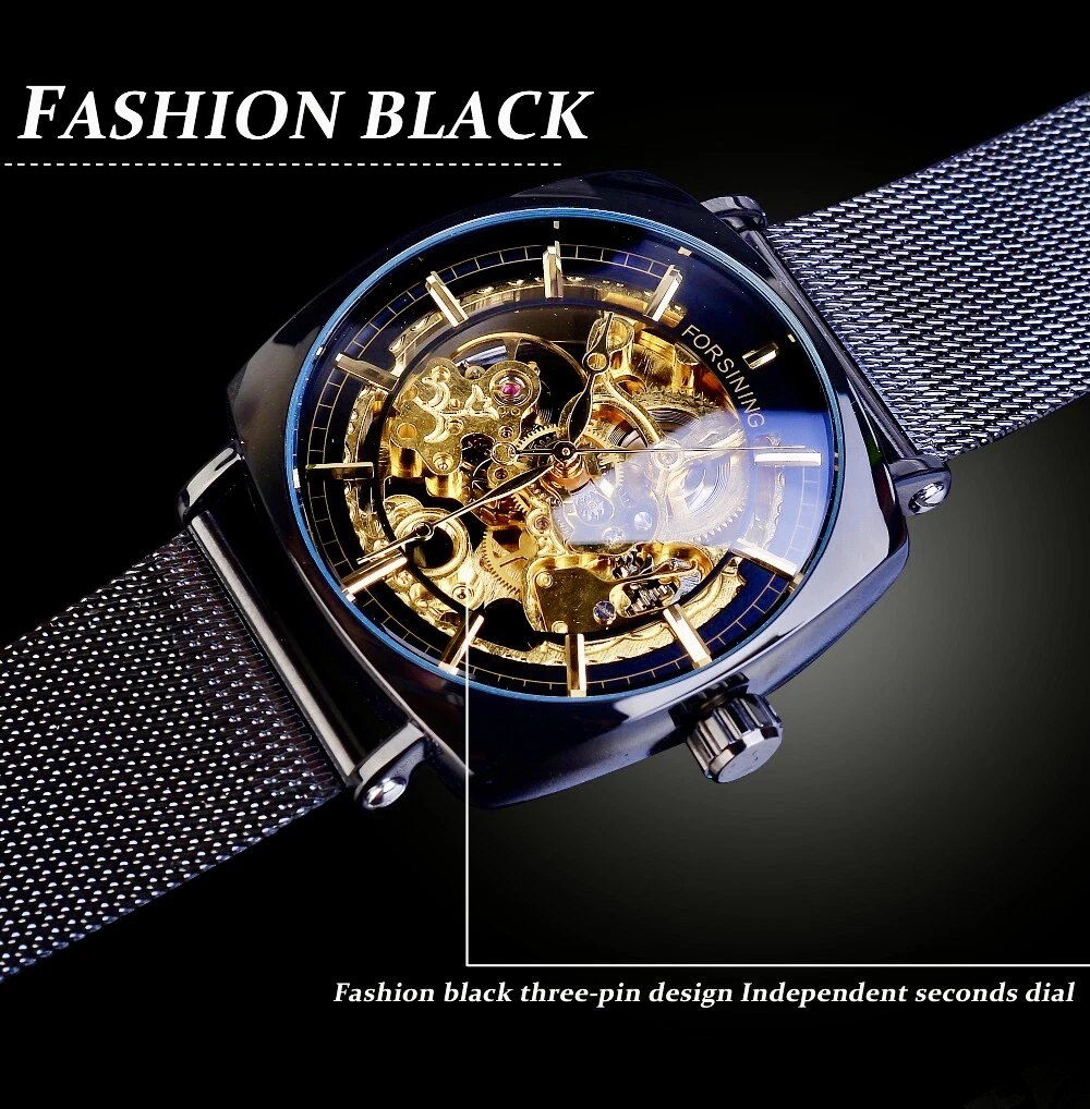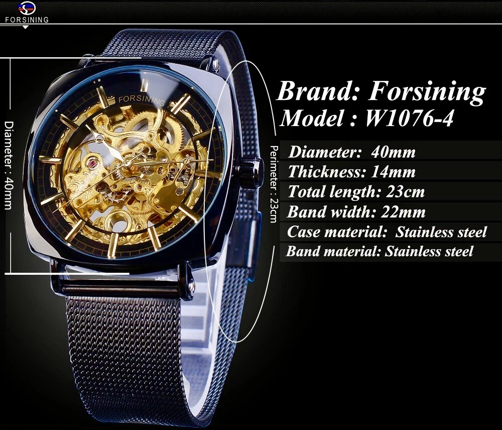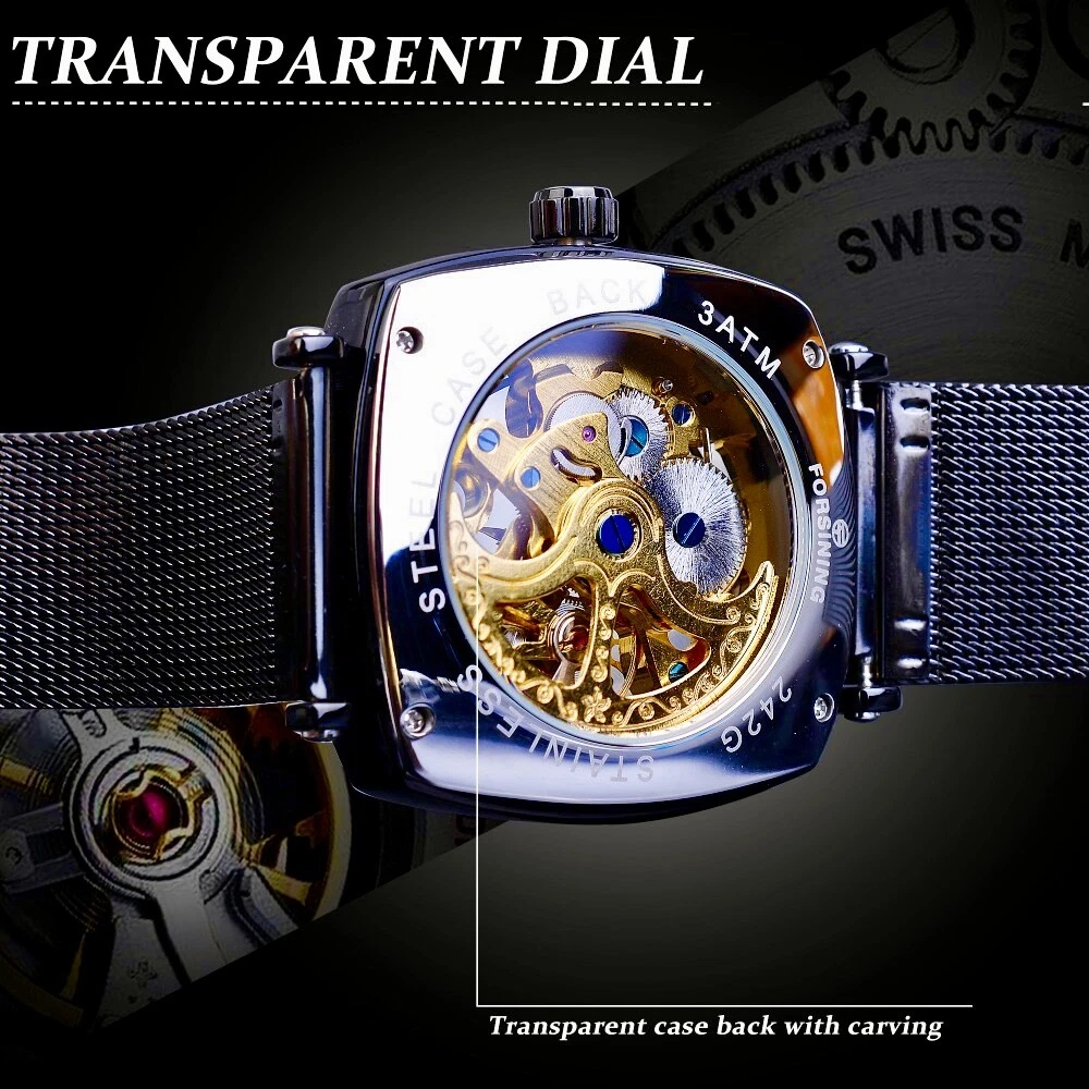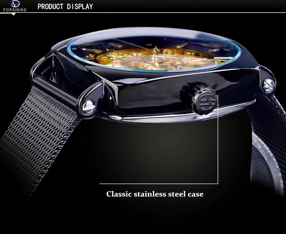 FORSINING Skeleton Transparent Mechanical Automatic Watch, Stainless Mesh Band